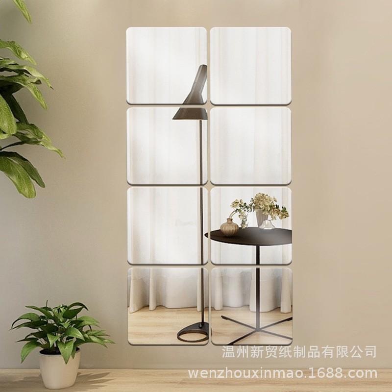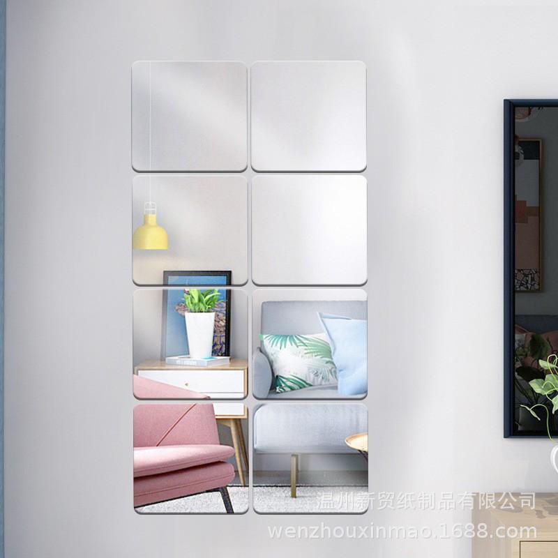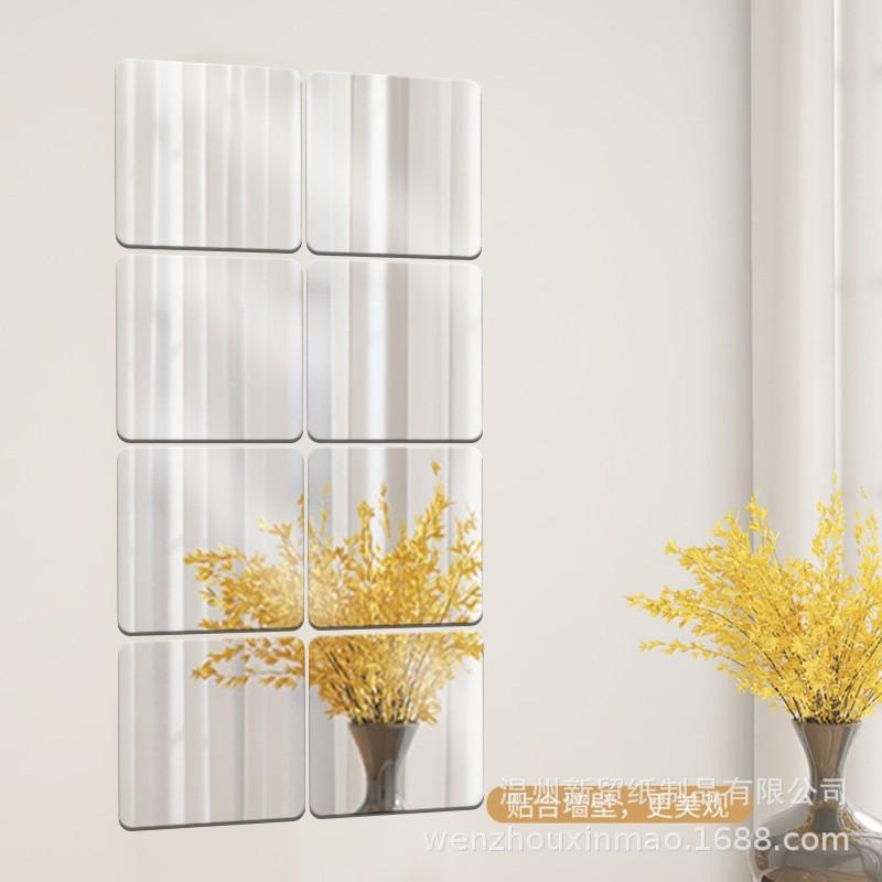 Adhesivo de Pared Estéreo Cuadrado de Espejo Casual Baño Sala de Estar Dormitorio Autoadhesivo Fondo Adhesivo de Pared Decorativo Espejo Suave Acrílico