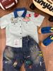 Ropa Infantil para Niños Camiseta de Bebé Verano 2025 Nuevo Estilo Camisa de Manga Corta con Letras de Dibujos Animados para Niño Grande
