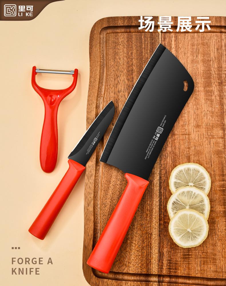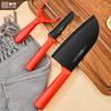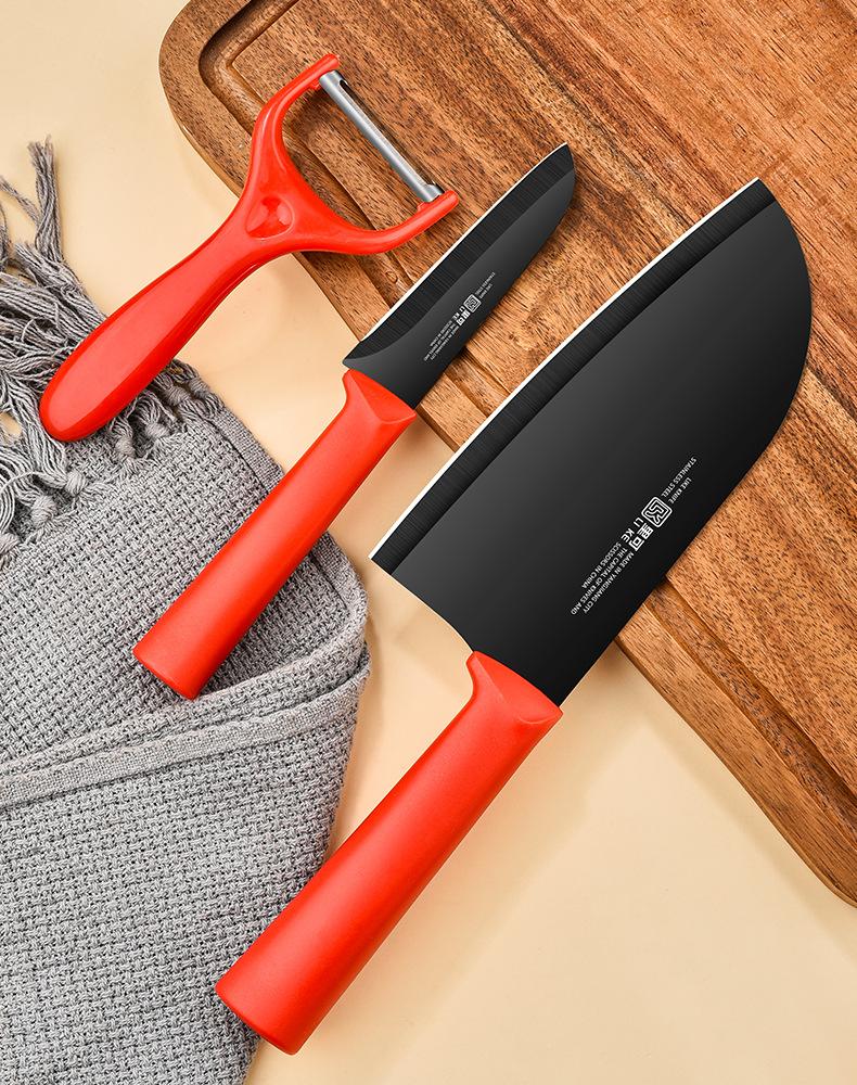 Red handle and black blade three-piece set-red handle with black blade slicing knife/red handle and black blad...