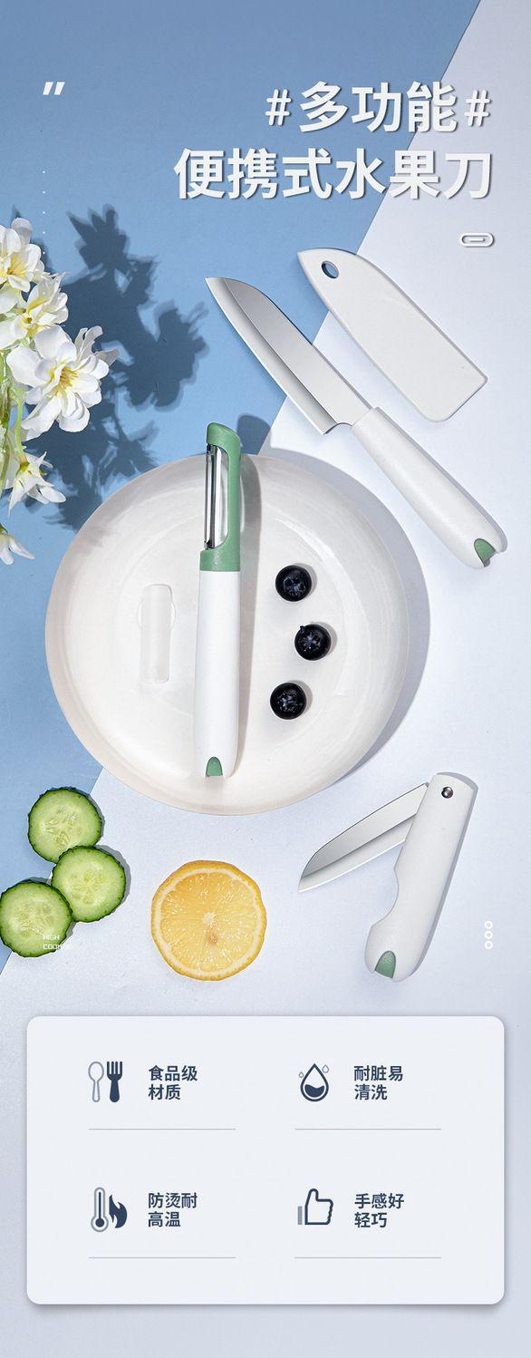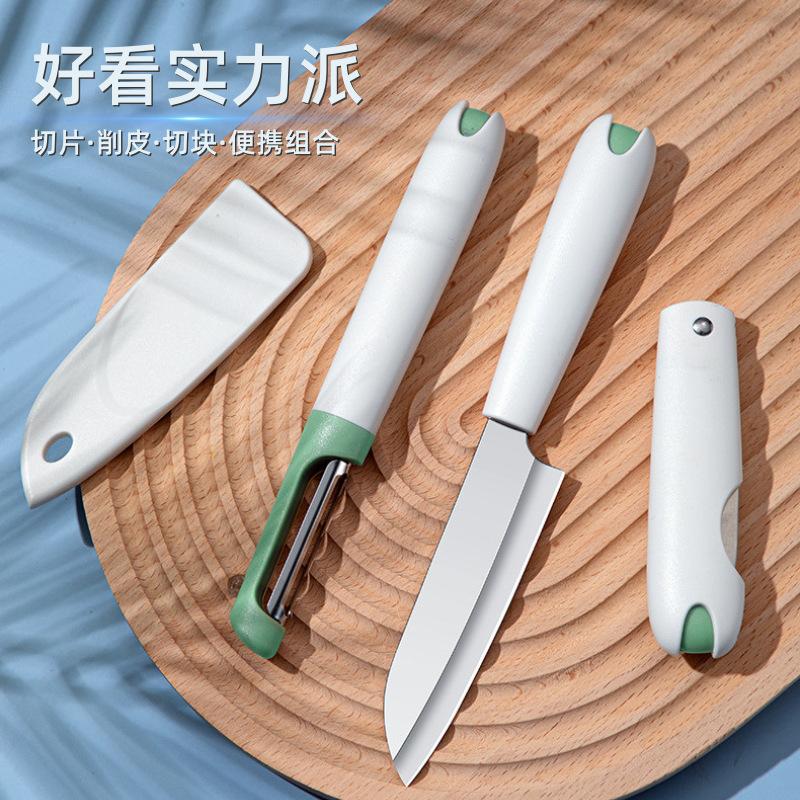 [two-color white and green fruit knife] with knife cover, Two-color white and green folding fruit knife, Two-c...