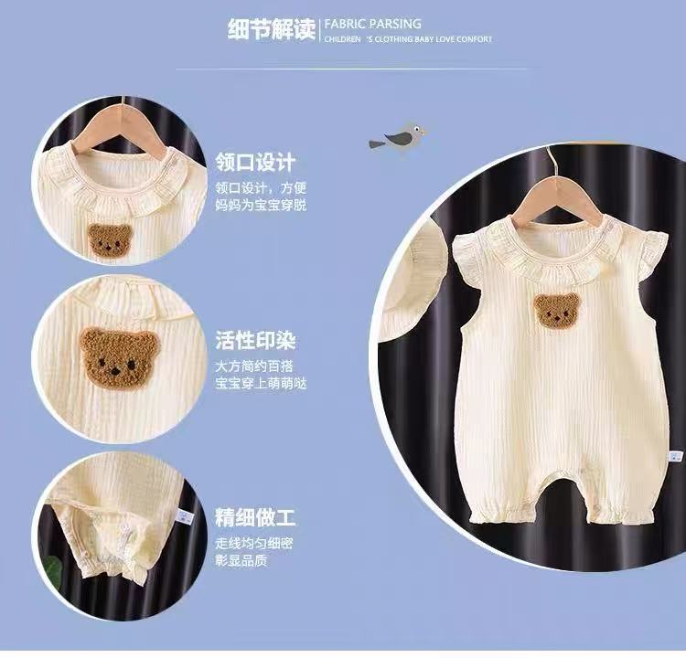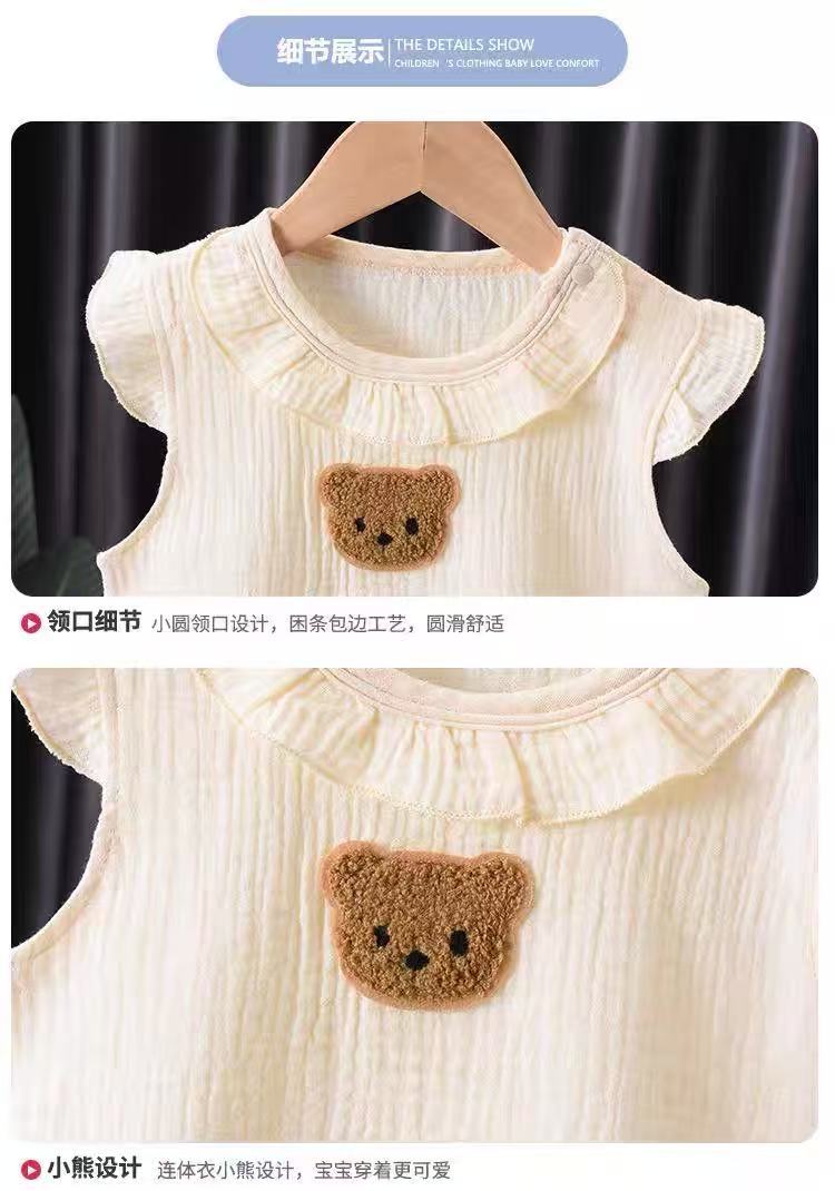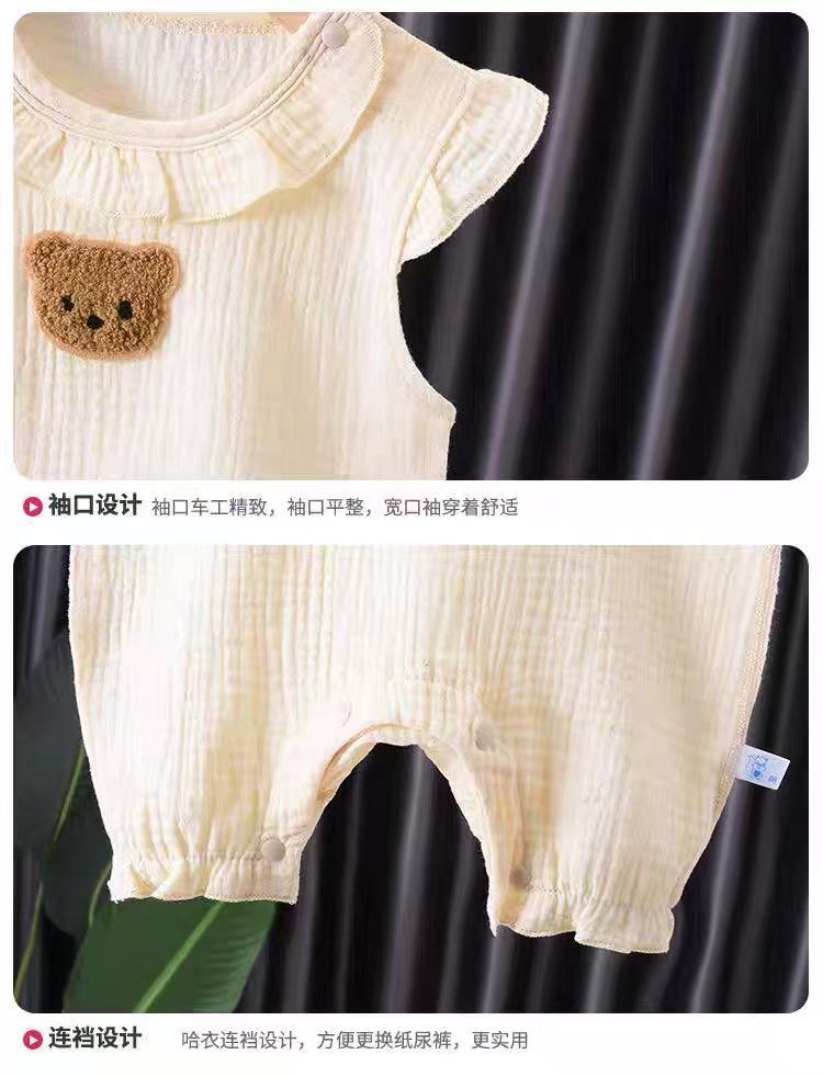 Beige [gauze bear flying sleeve one-piece], Beige [gauze bear short sleeve one-piece]