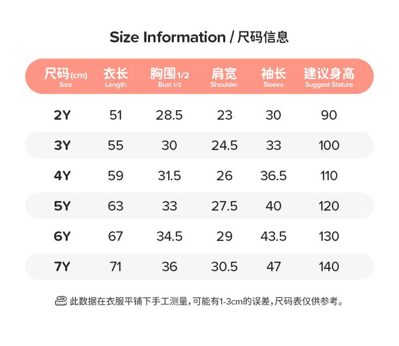 2Y(90cm), 3Y(100cm), 4Y(110cm), 5Y(120cm), 6Y(130cm), 7Y(140cm)