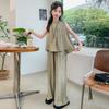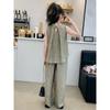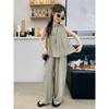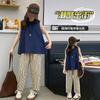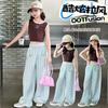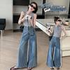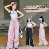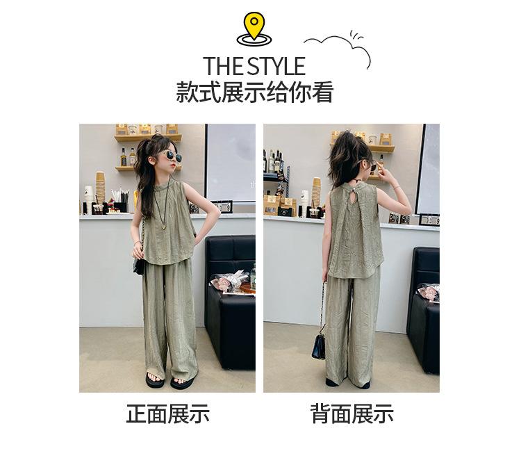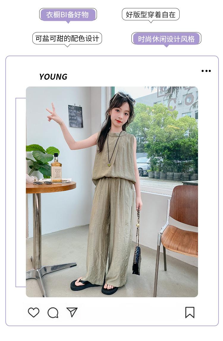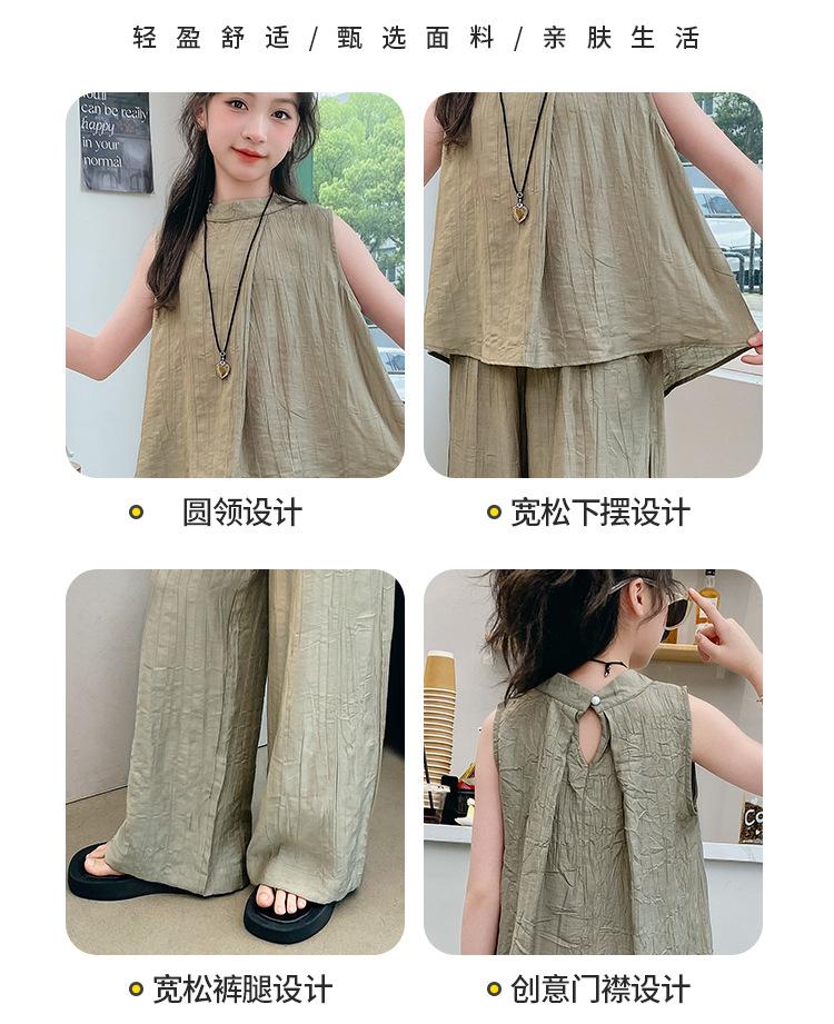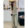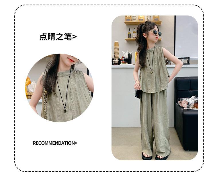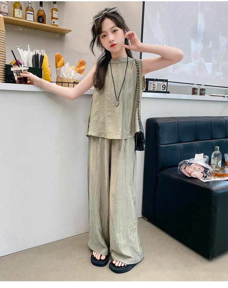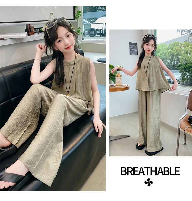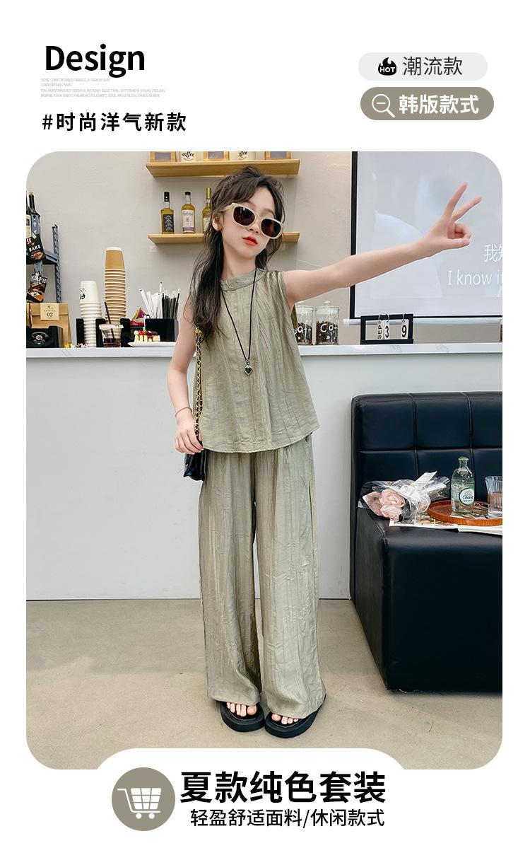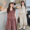 Traje sencillo para niñas Delgado 2024 Verano Nuevo Estilo Top chaleco sin mangas Pantalones de pierna ancha Dos piezas a la moda