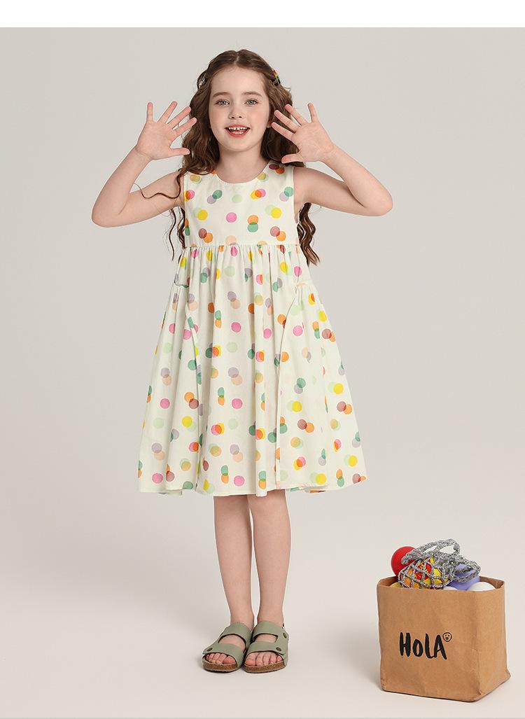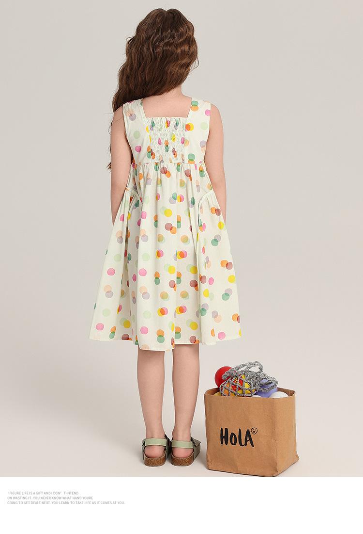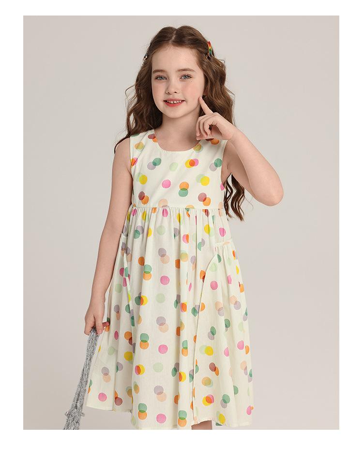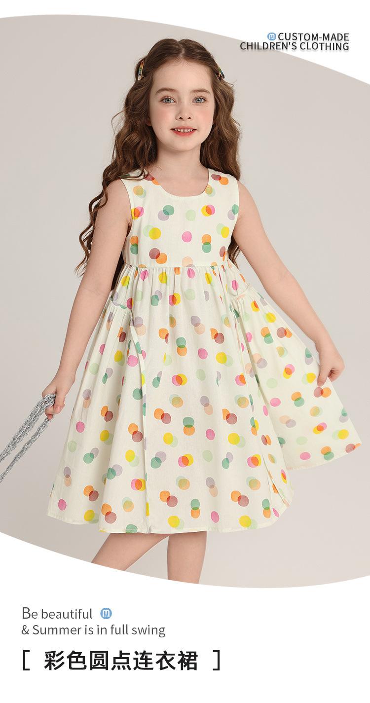 Pudding Haru Ropa para Niños Vestido de Verano Falda Larga para Niñas Verano 2025 Nuevo Vestido Chaleco de Lunares Coloridos para Niños