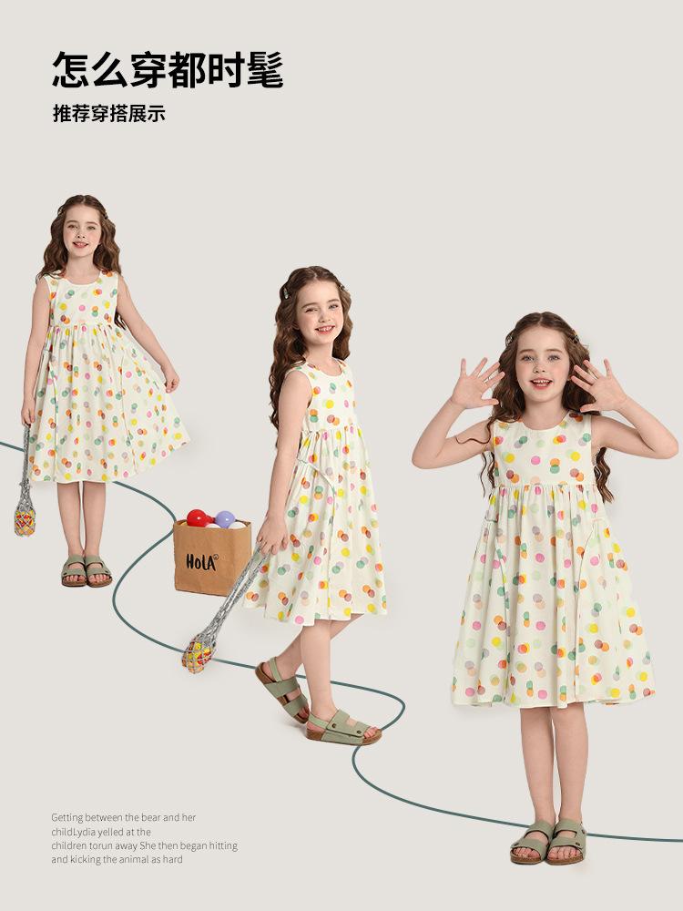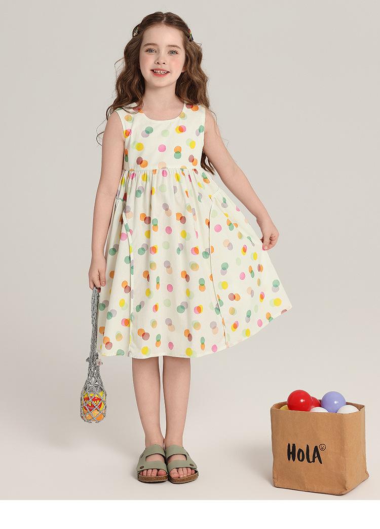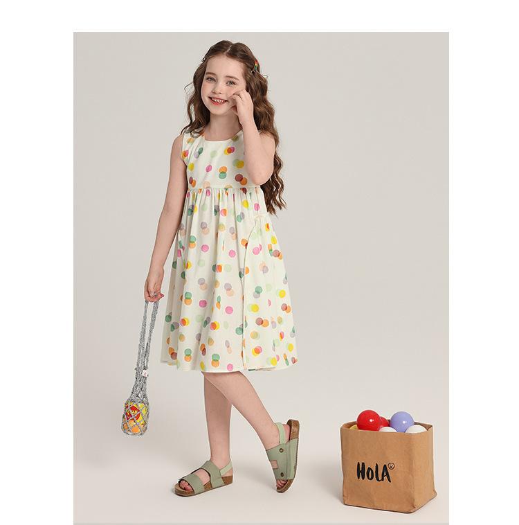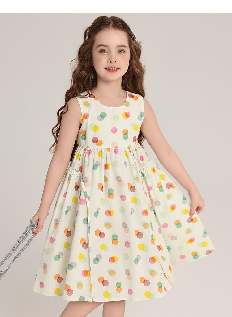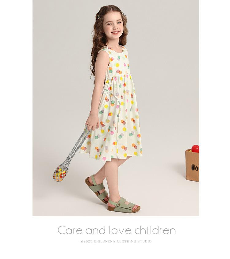 Pudding Haru Ropa para Niños Vestido de Verano Falda Larga para Niñas Verano 2025 Nuevo Vestido Chaleco de Lunares Coloridos para Niños