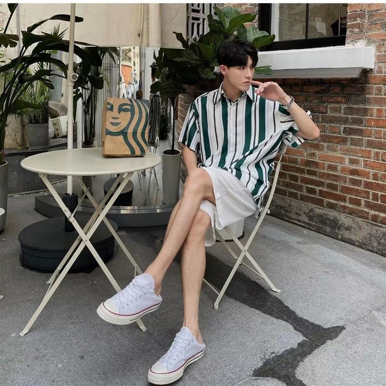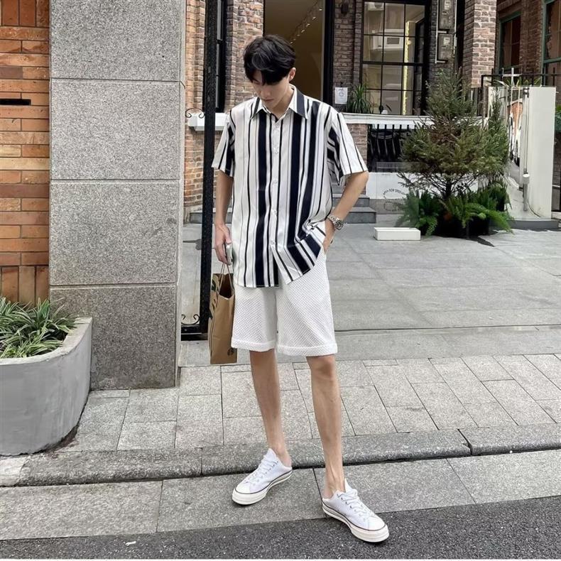 Compra Camisa de Manga Corta para Hombre Verano Rayada Seda de Hielo Sensación de Alta Gama Camisa Casual Holgada de Cinco Puntos Manga Media Camisa de Moda al por mayor en Joom.pro