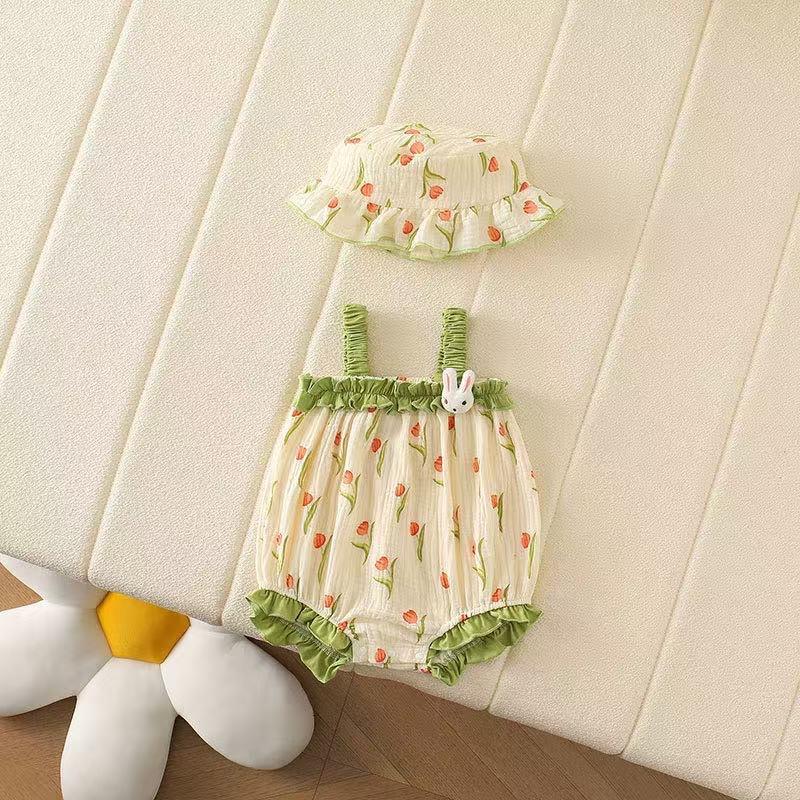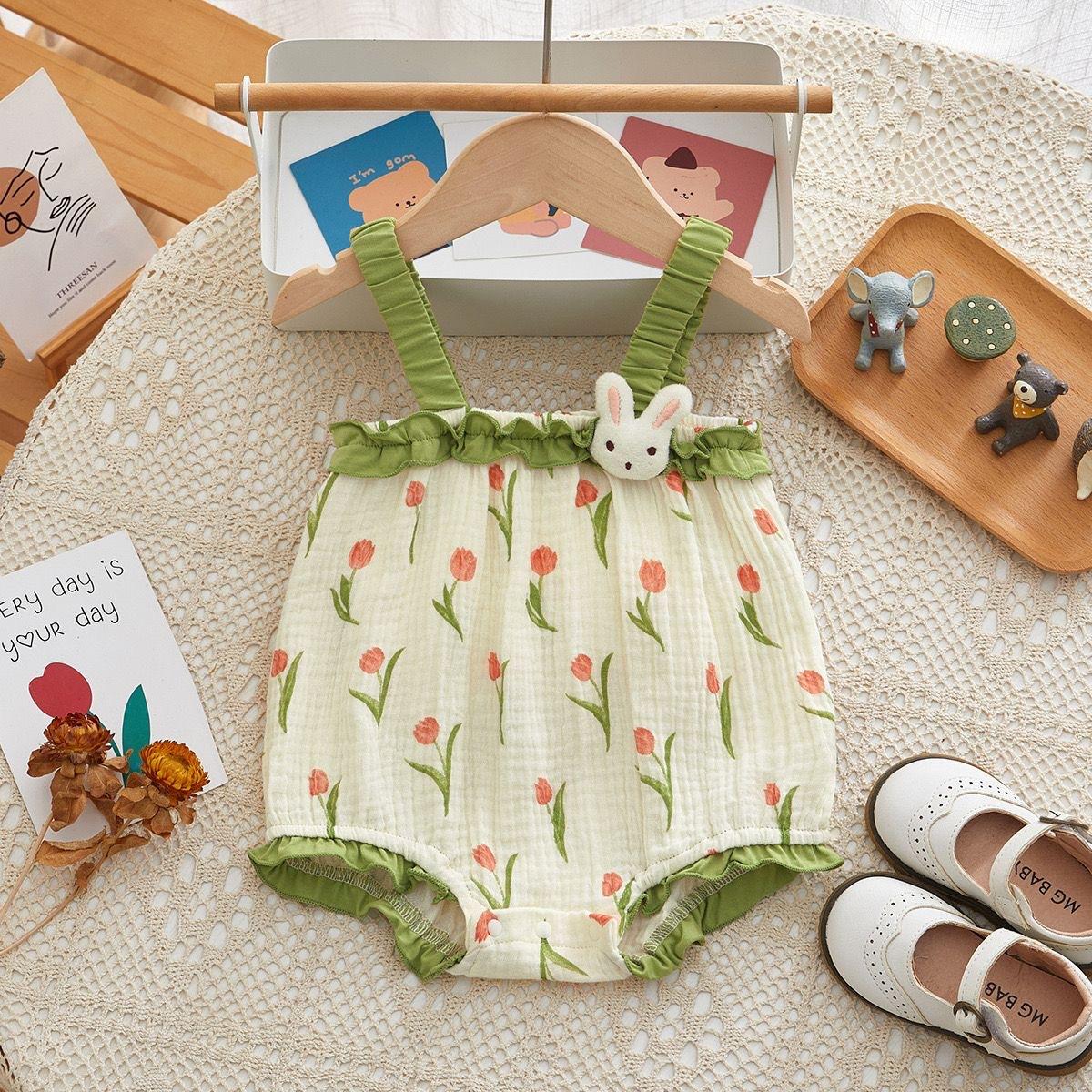Portabebé de Verano Tulipán Gasa Portabebé Conejito Pequeño Fresco Sin Mangas Princesa Pequeño Floral Ropa Holgada