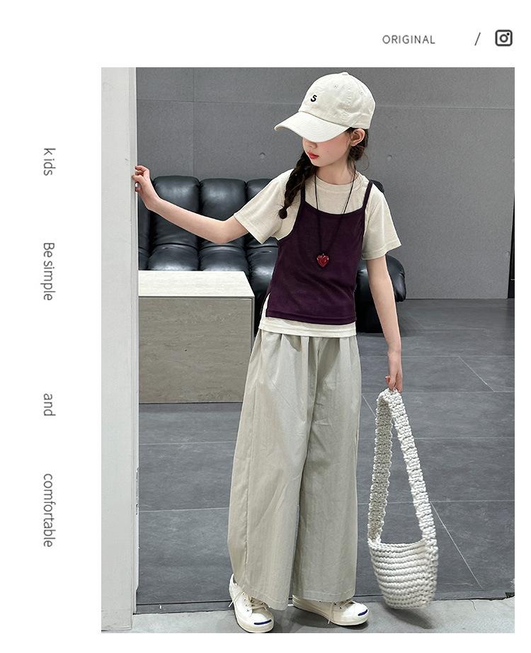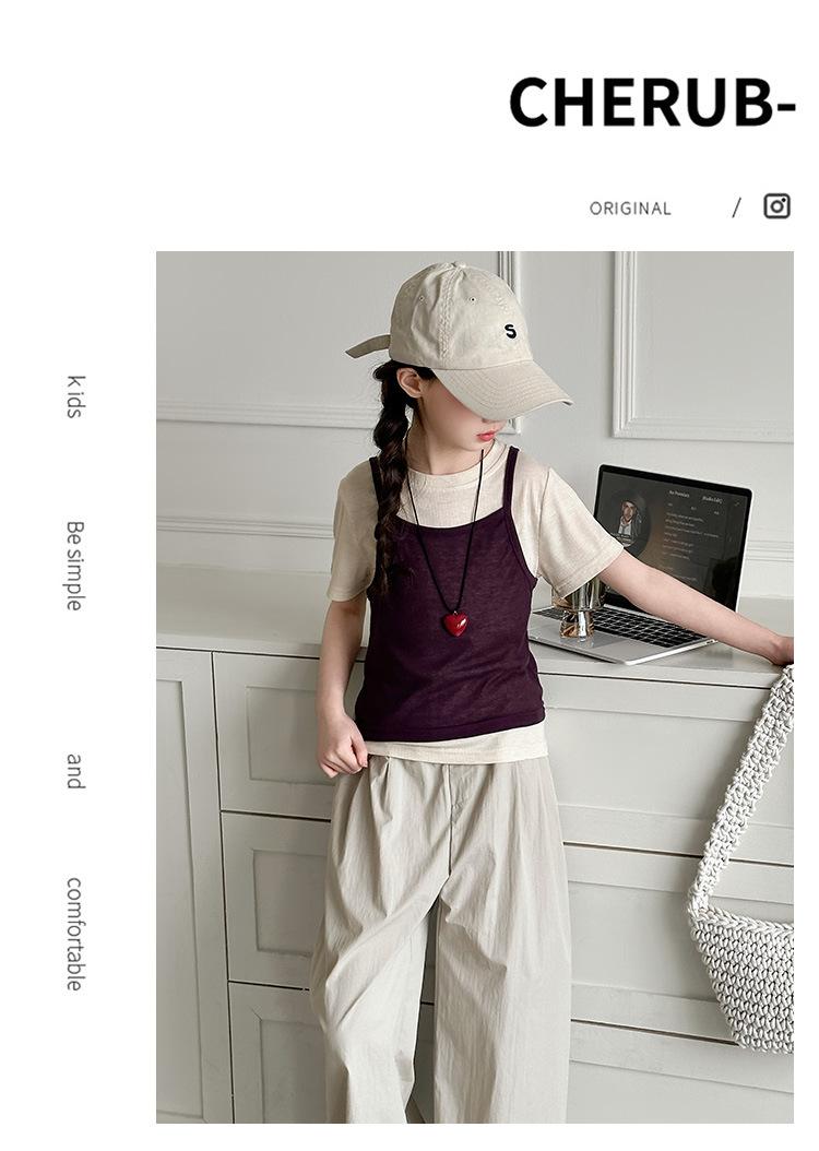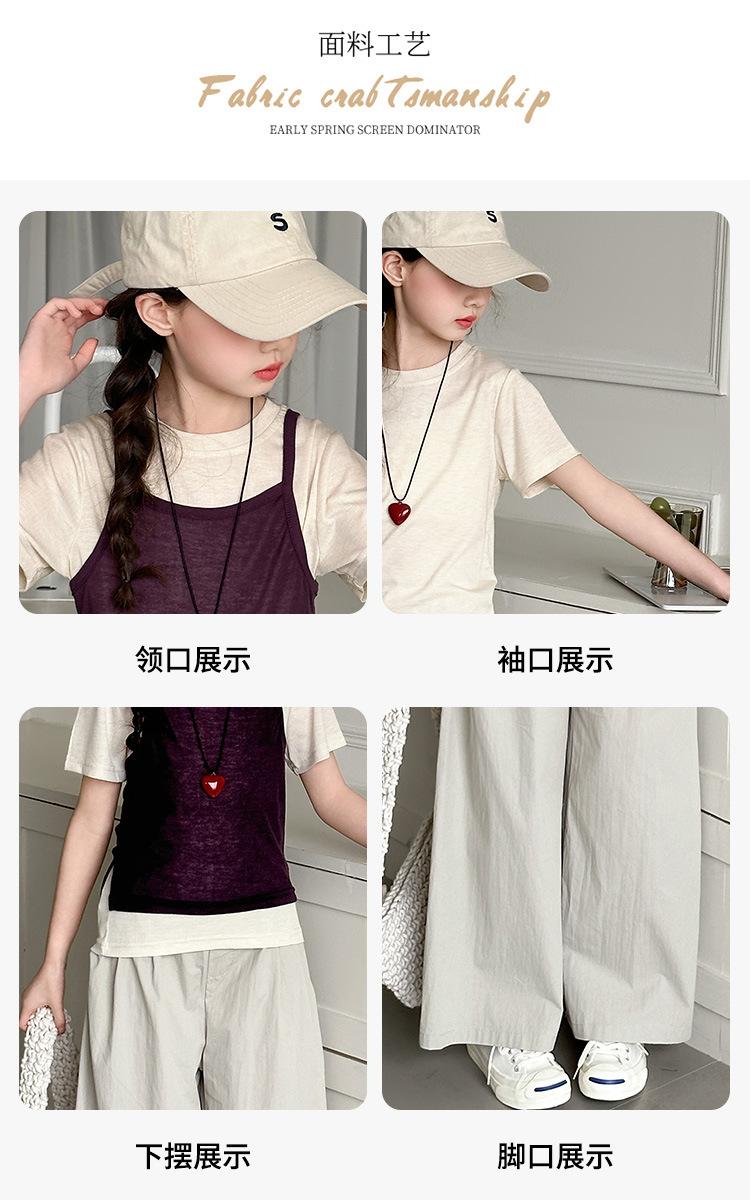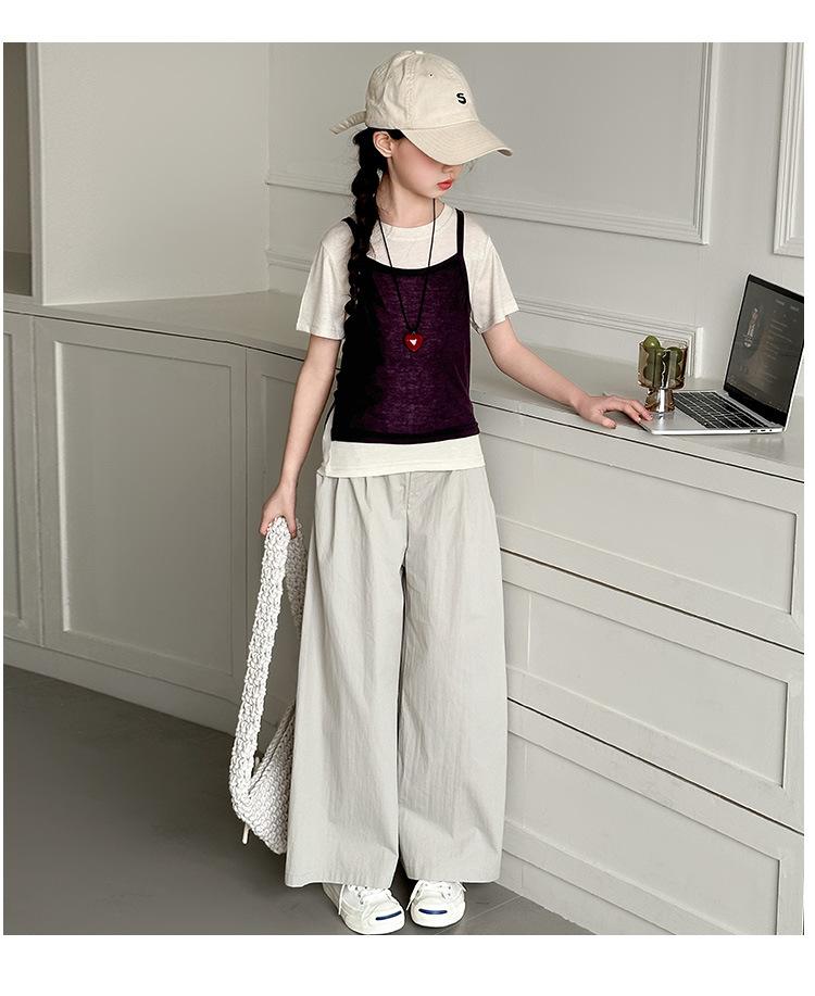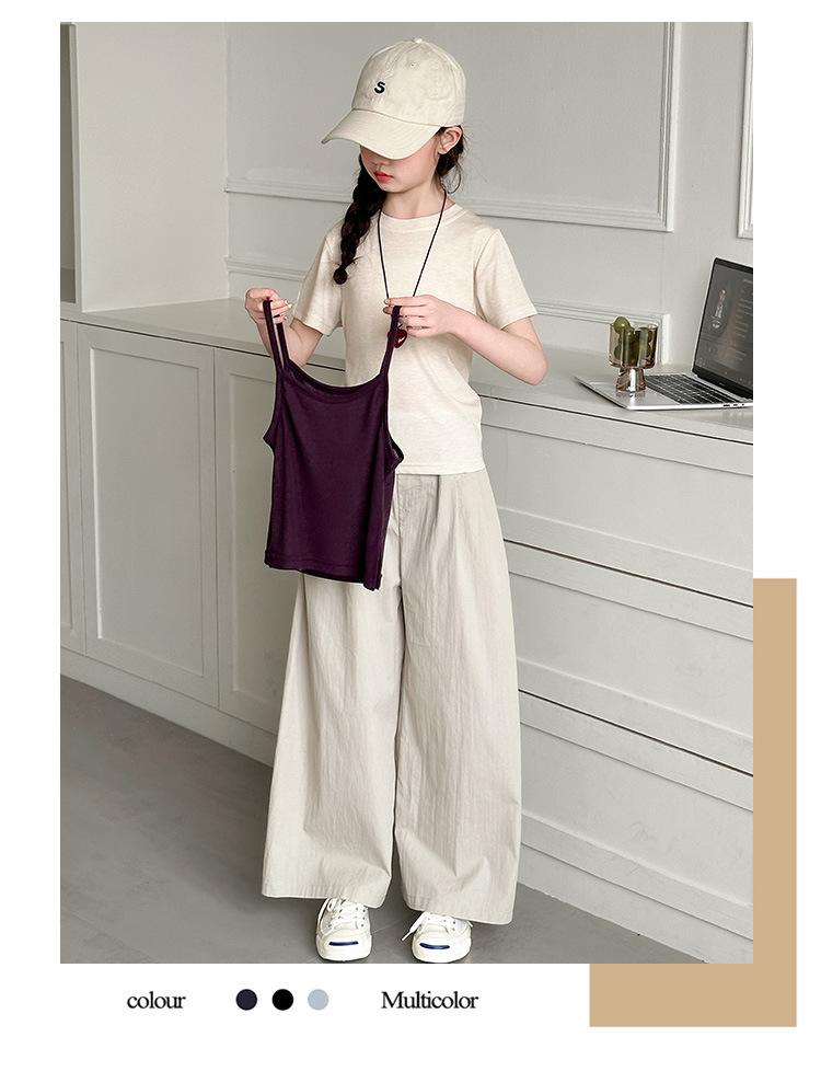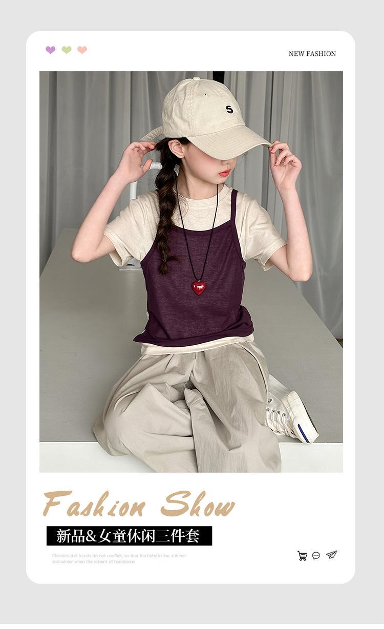 Traje de Verano para Niñas 2025 Nuevo Traje de Verano para Niños Moda para Niñas Estilo Coreano Moderno Camiseta de Manga Corta con Tirantes Moda para Niños Grandes