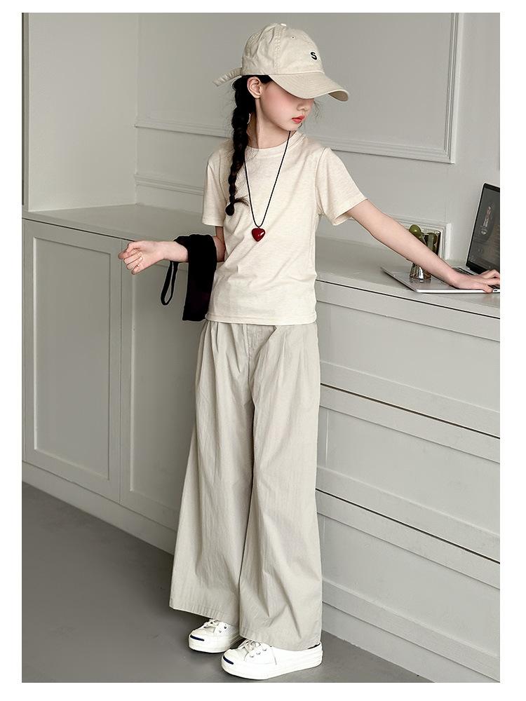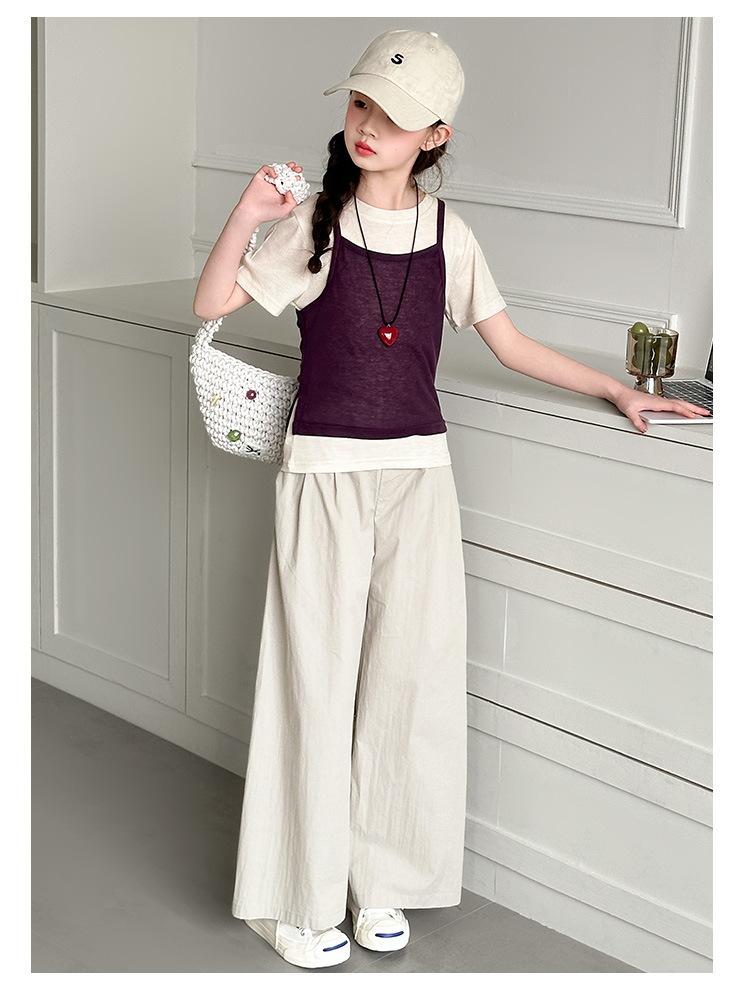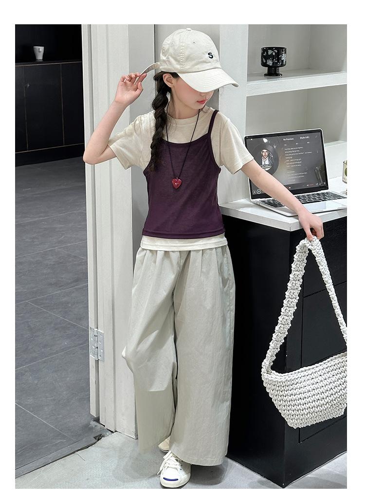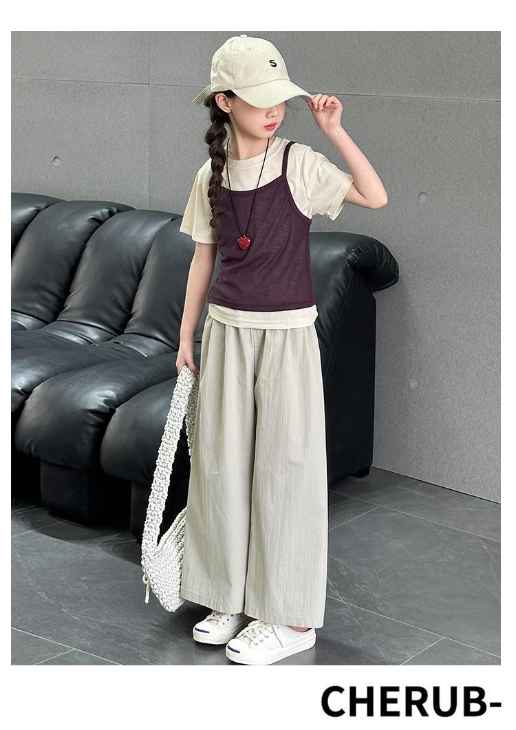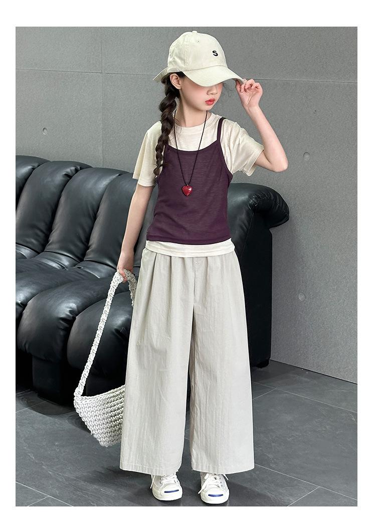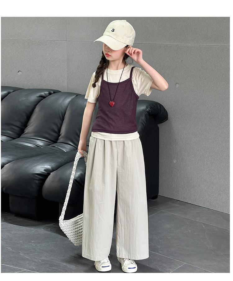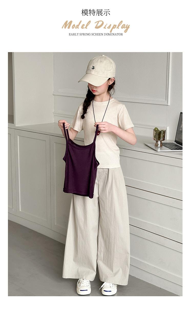 Traje de Verano para Niñas 2025 Nuevo Traje de Verano para Niños Moda para Niñas Estilo Coreano Moderno Camiseta de Manga Corta con Tirantes Moda para Niños Grandes