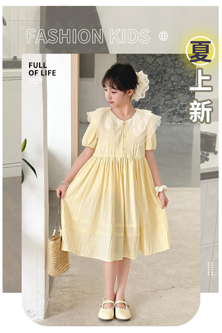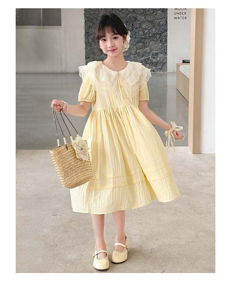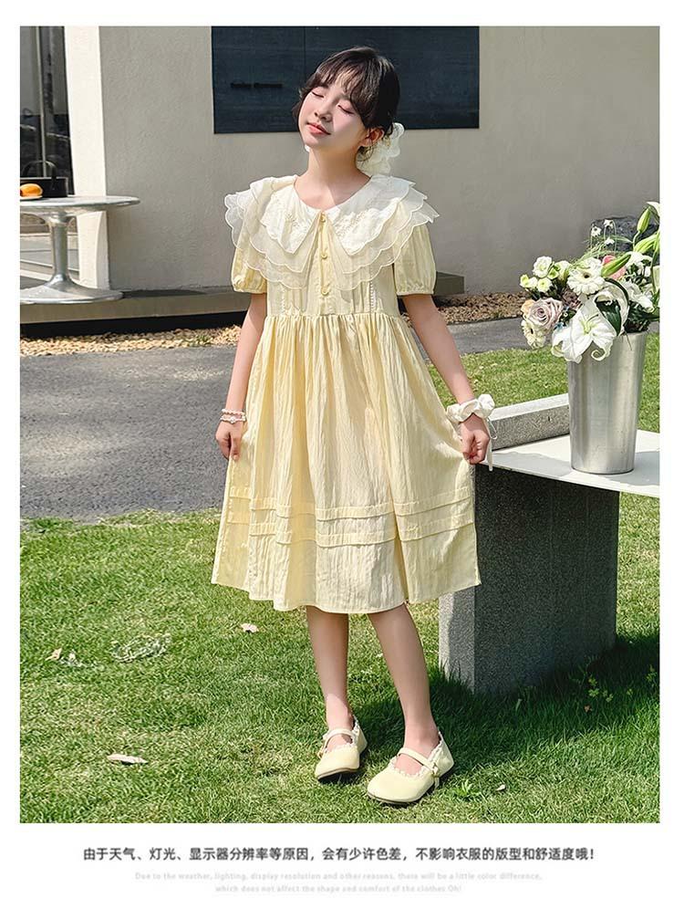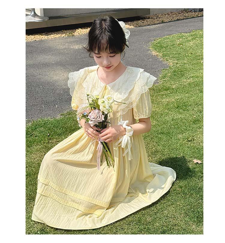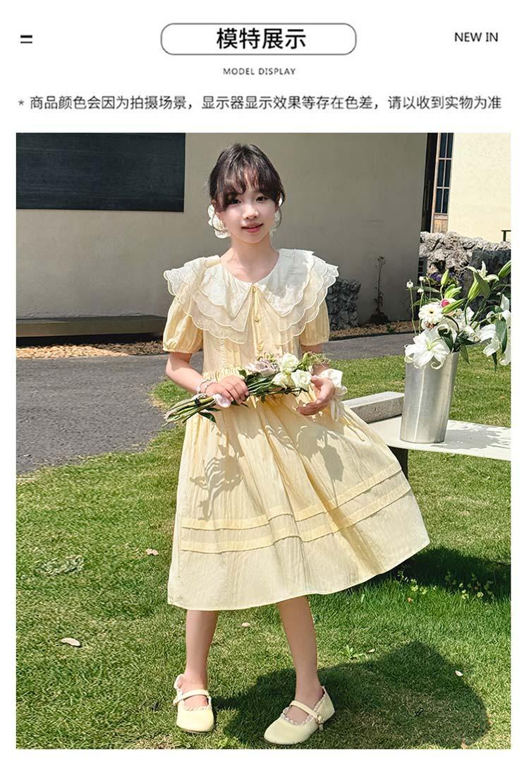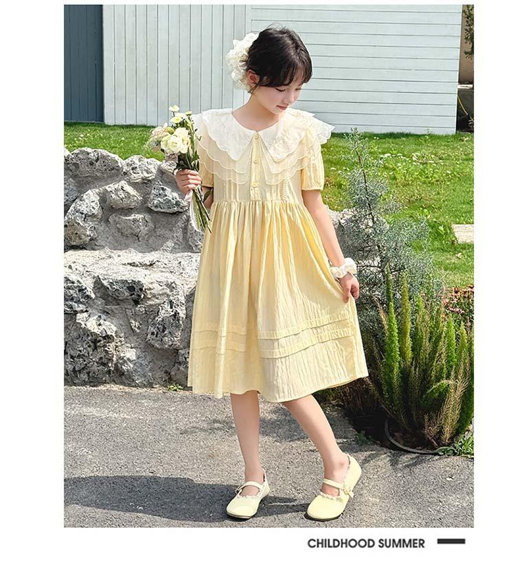 Vestido de Verano para Niñas 2025 Nuevo Vestido de Princesa Dulce y Elegante para Estudiante de Secundaria Vestido con Cuello de Encaje para Niña