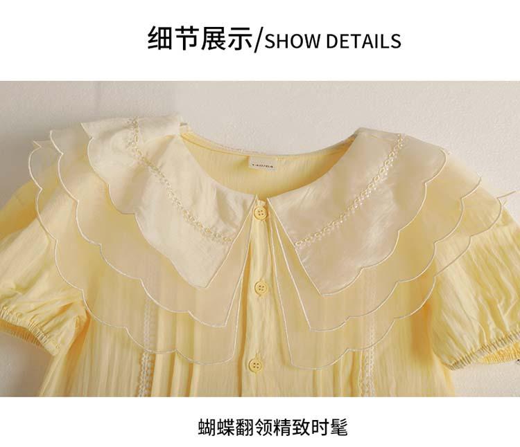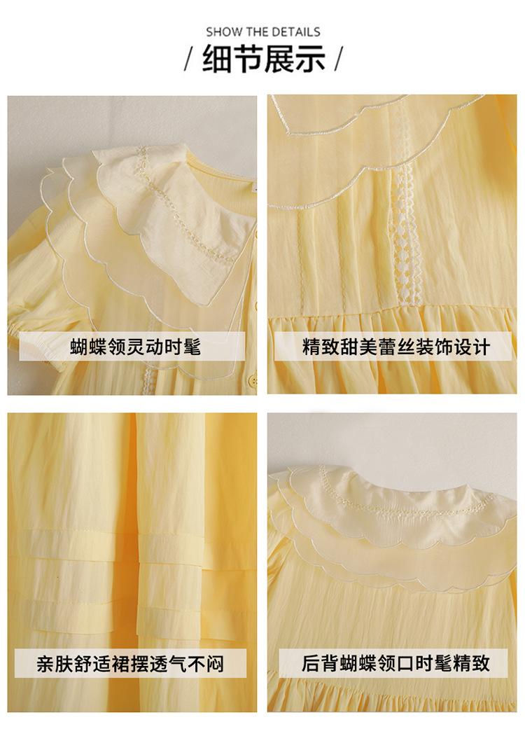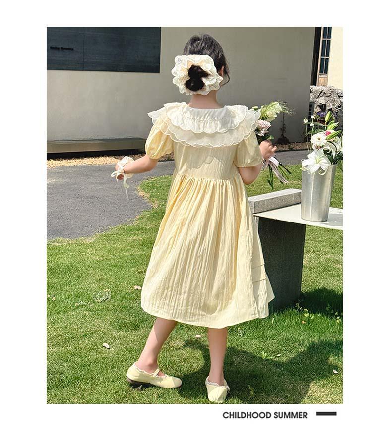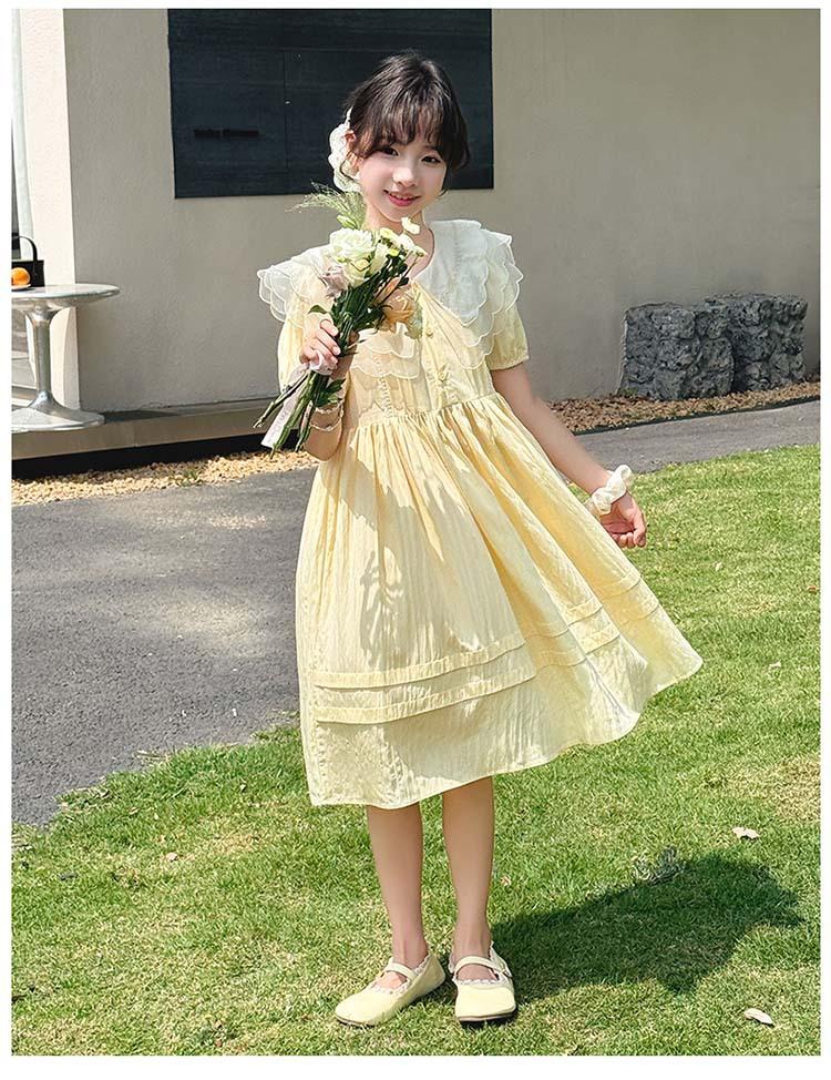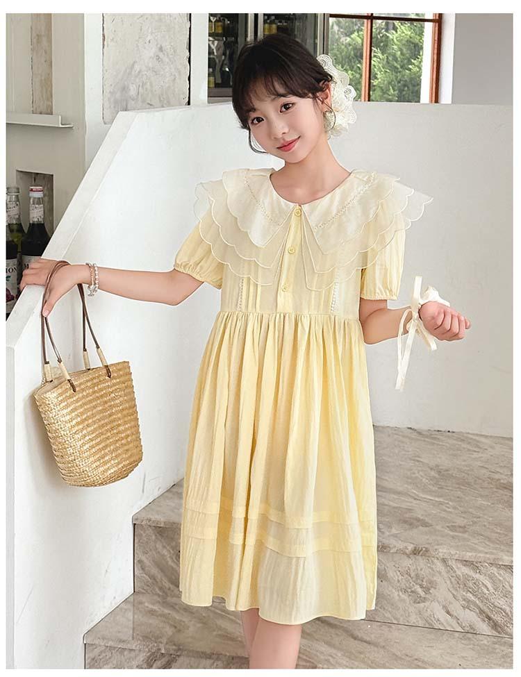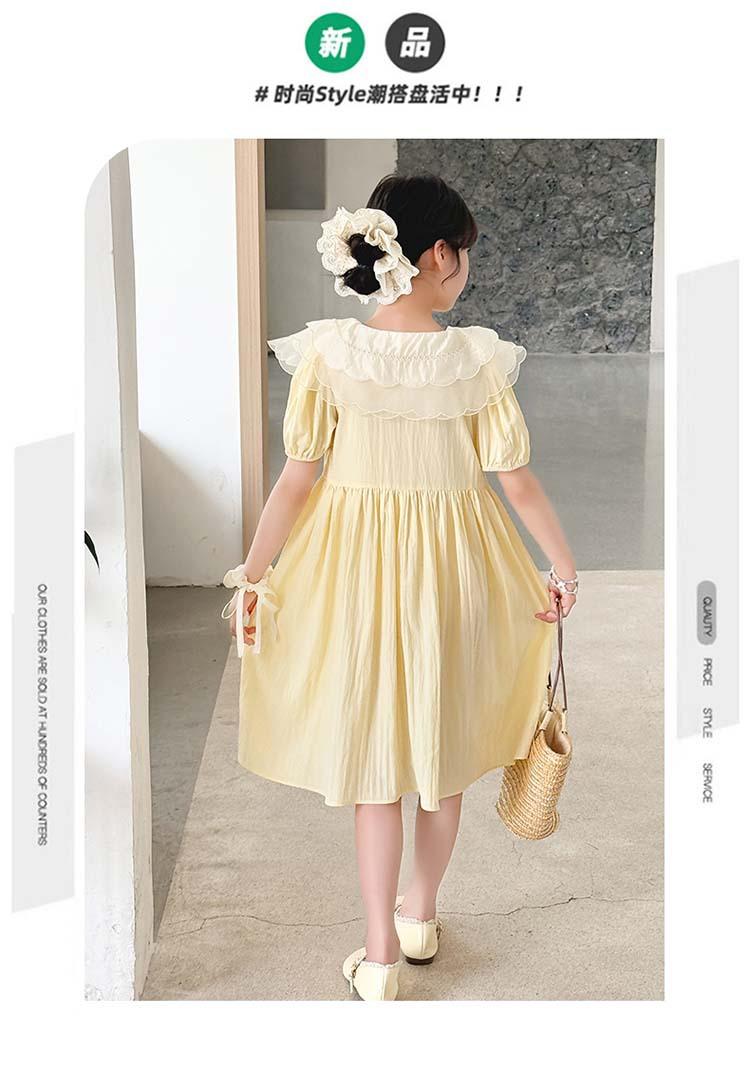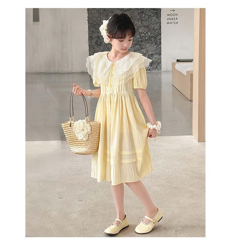 Vestido de Verano para Niñas 2025 Nuevo Vestido de Princesa Dulce y Elegante para Estudiante de Secundaria Vestido con Cuello de Encaje para Niña
