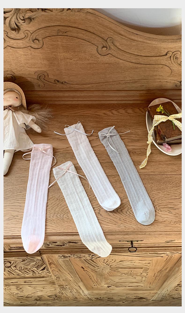 Calcetines para niños Verano Delgados Calcetines hasta la rodilla para bebé Calcetines de media pantorrilla para niña Calcetines de princesa con lazo lindo para bebé