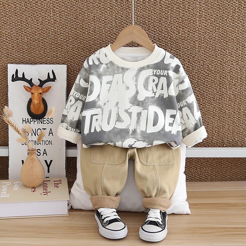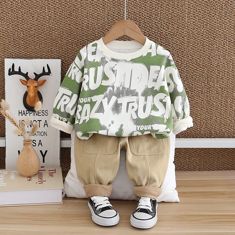 Traje de Primavera y Otoño para Niño 2025 Nuevo Bebé Casual Estilo Occidental Sudadera Ropa de Primavera y Otoño para Niños Conjunto de Dos Piezas