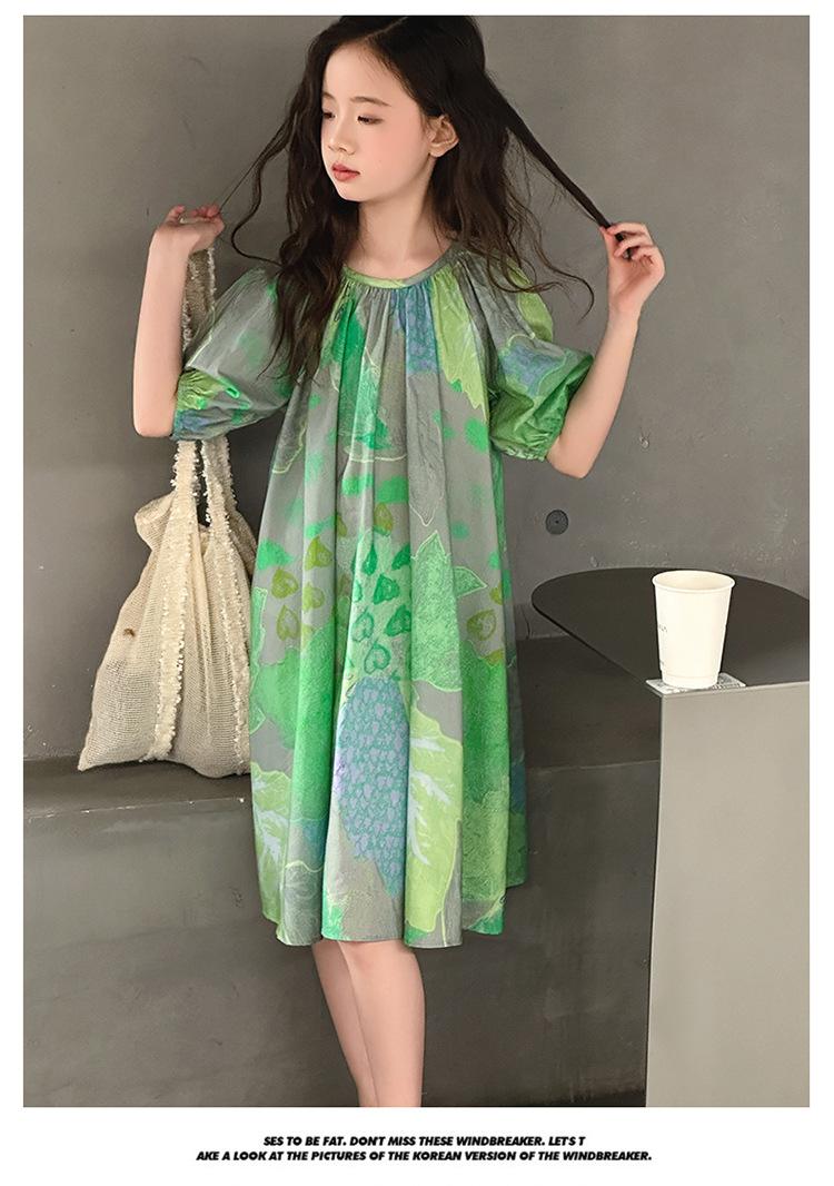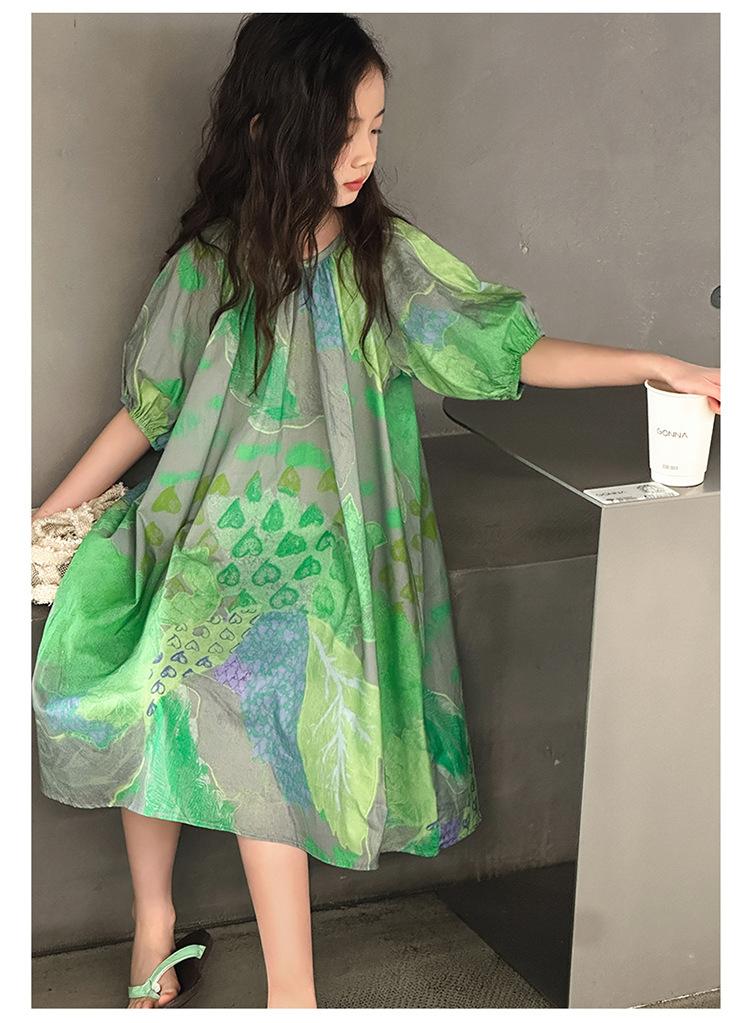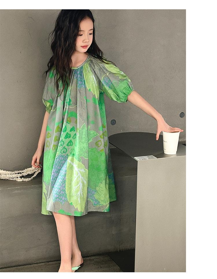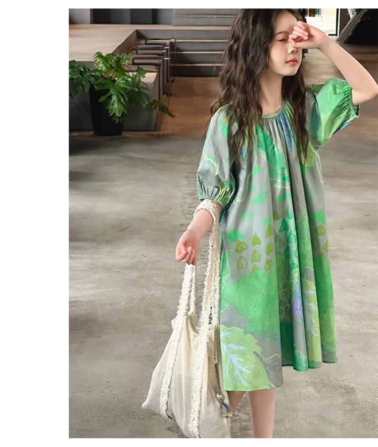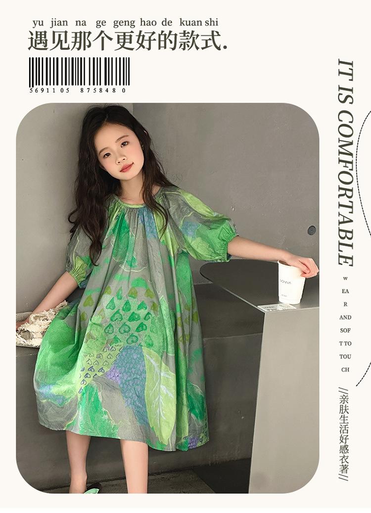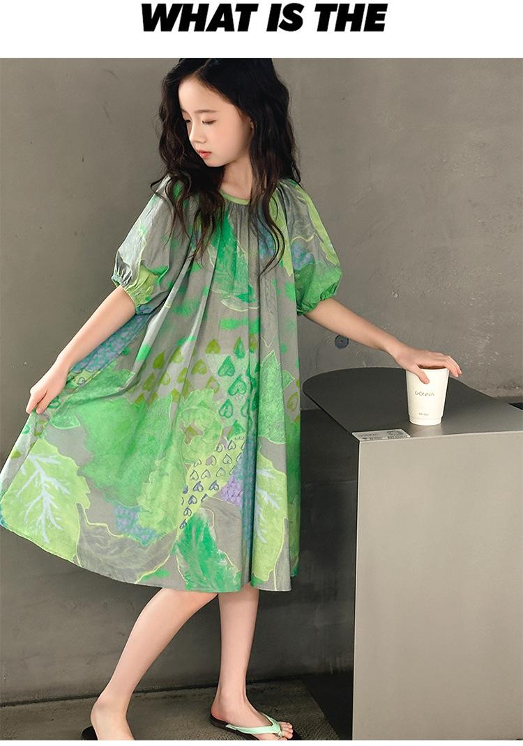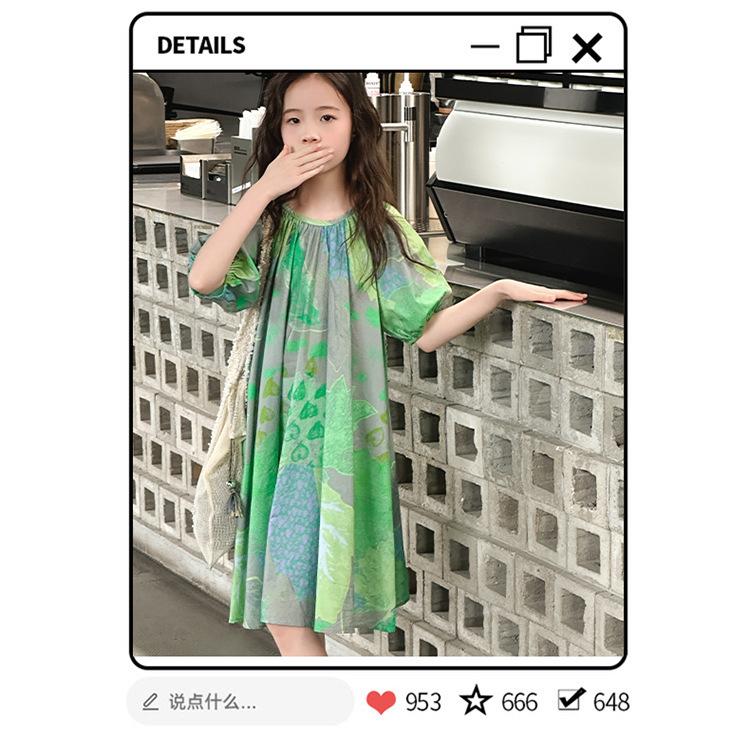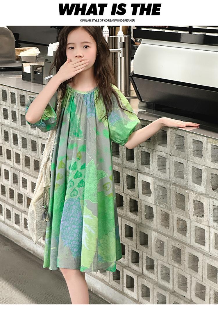 Vestido de Verano para Niñas 2025 Nuevo Vestido Largo de Manga Corta Estilo Coreano para Niños Vestido Casual de Moda de Verano para Niñas