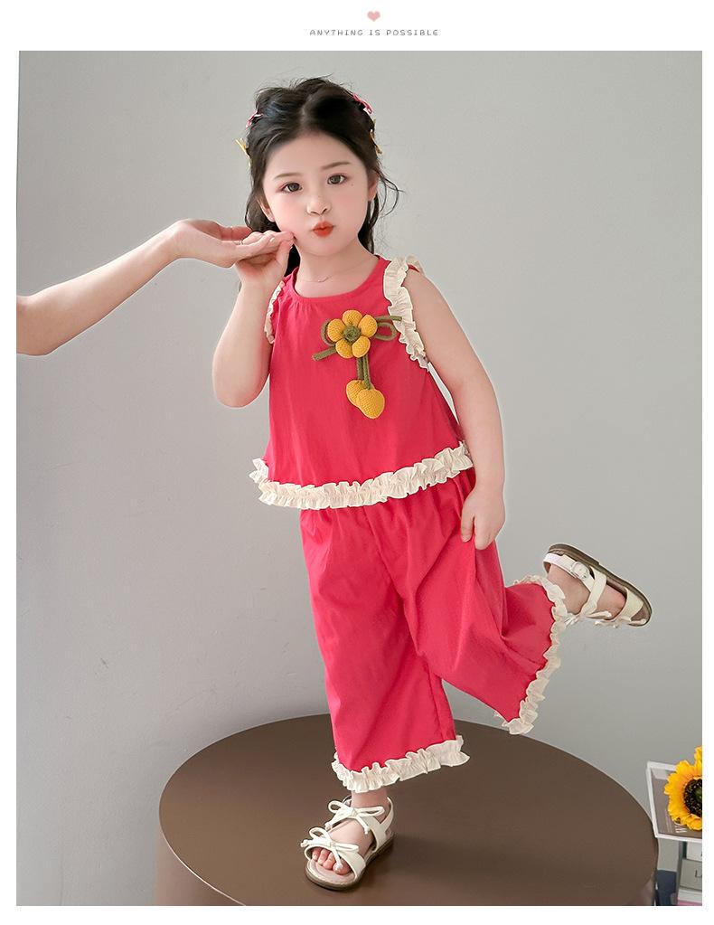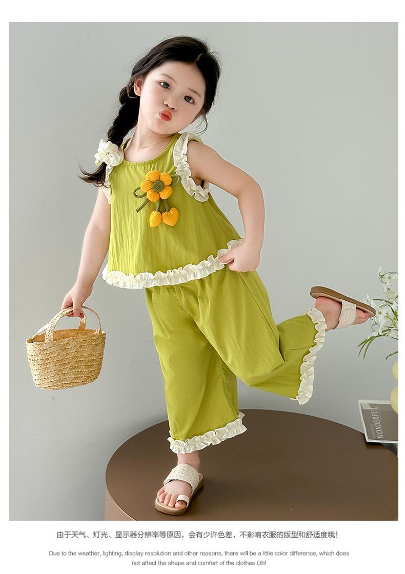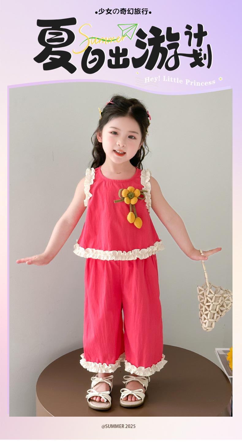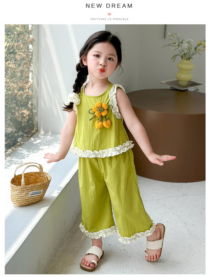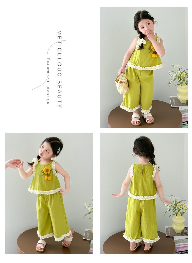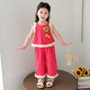 Traje de Verano para Niñas 2025 Nuevo Estilo Chaleco sin Mangas para Niños Pantalones de Pierna Ancha Conjunto de Dos Piezas de Verano Moderno para Bebé