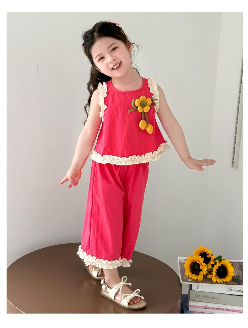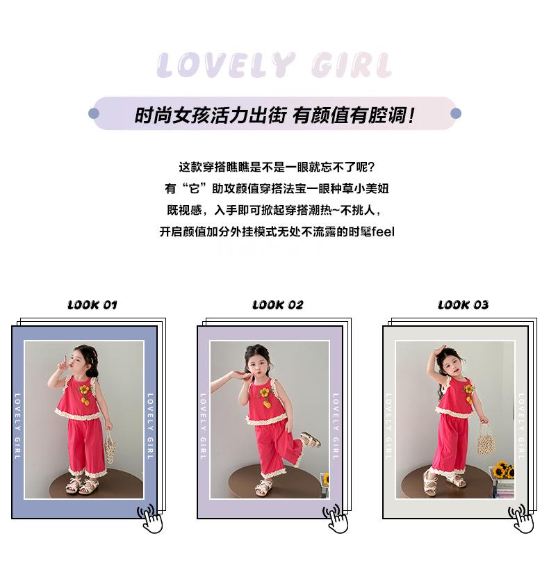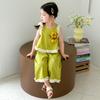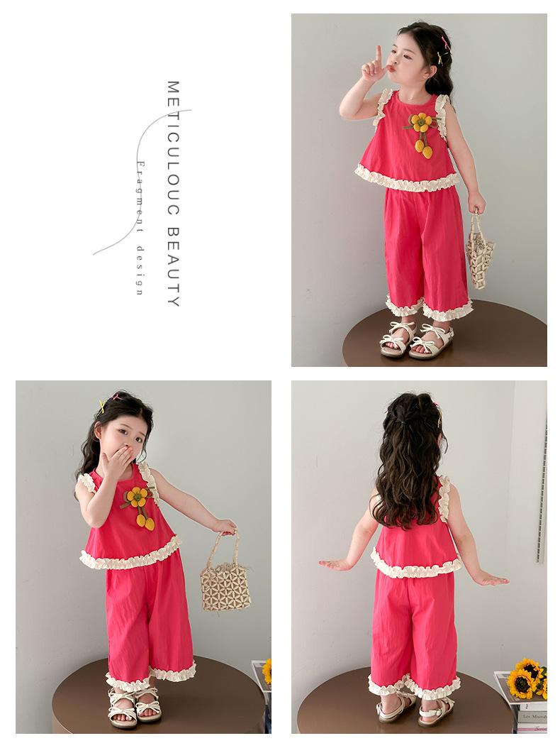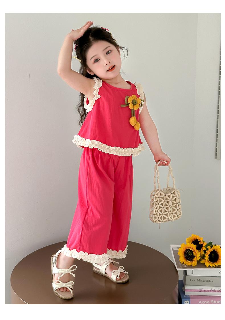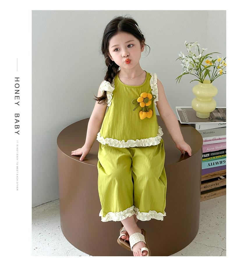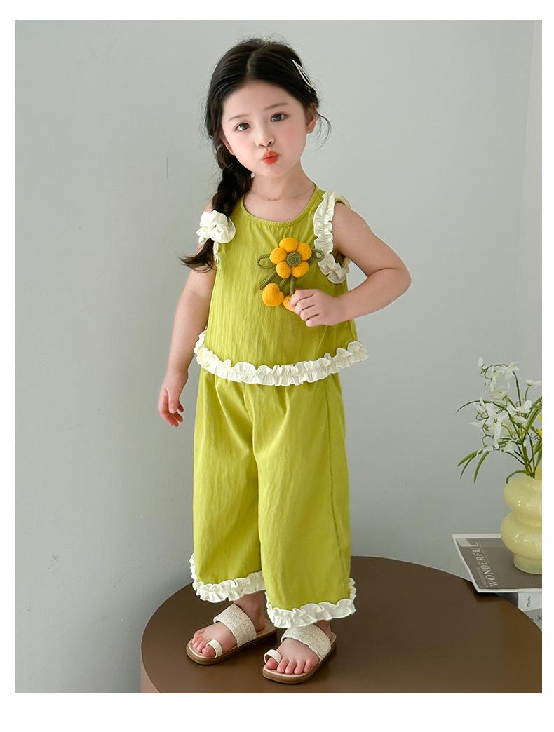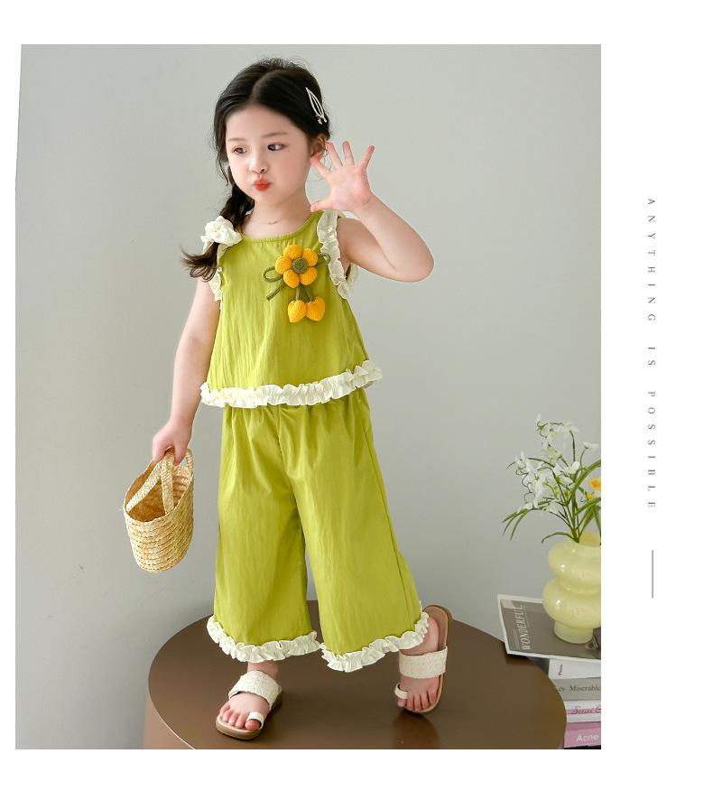 Traje de Verano para Niñas 2025 Nuevo Estilo Chaleco sin Mangas para Niños Pantalones de Pierna Ancha Conjunto de Dos Piezas de Verano Moderno para Bebé