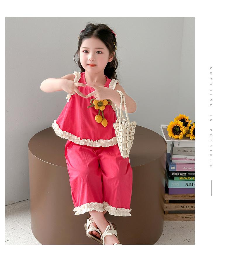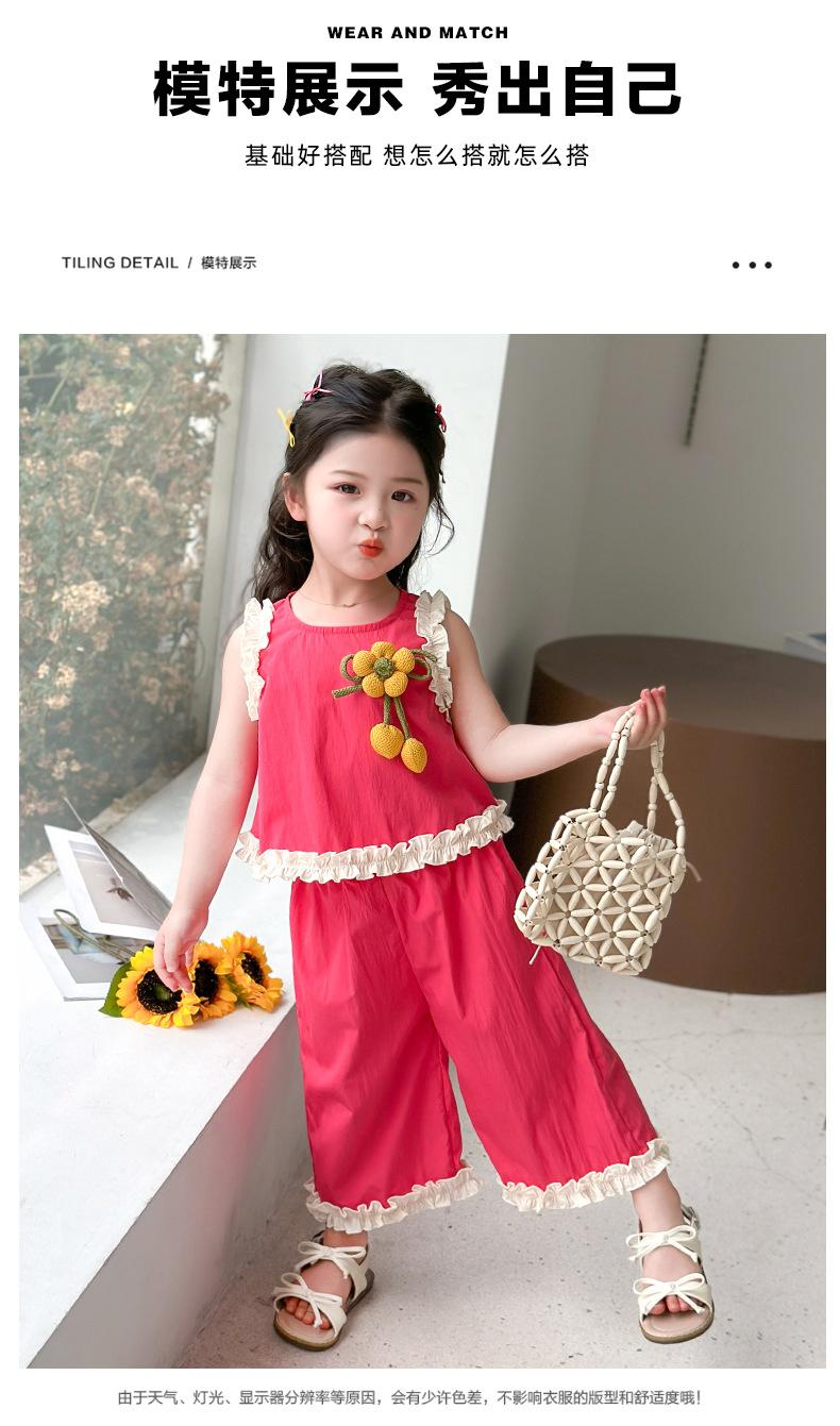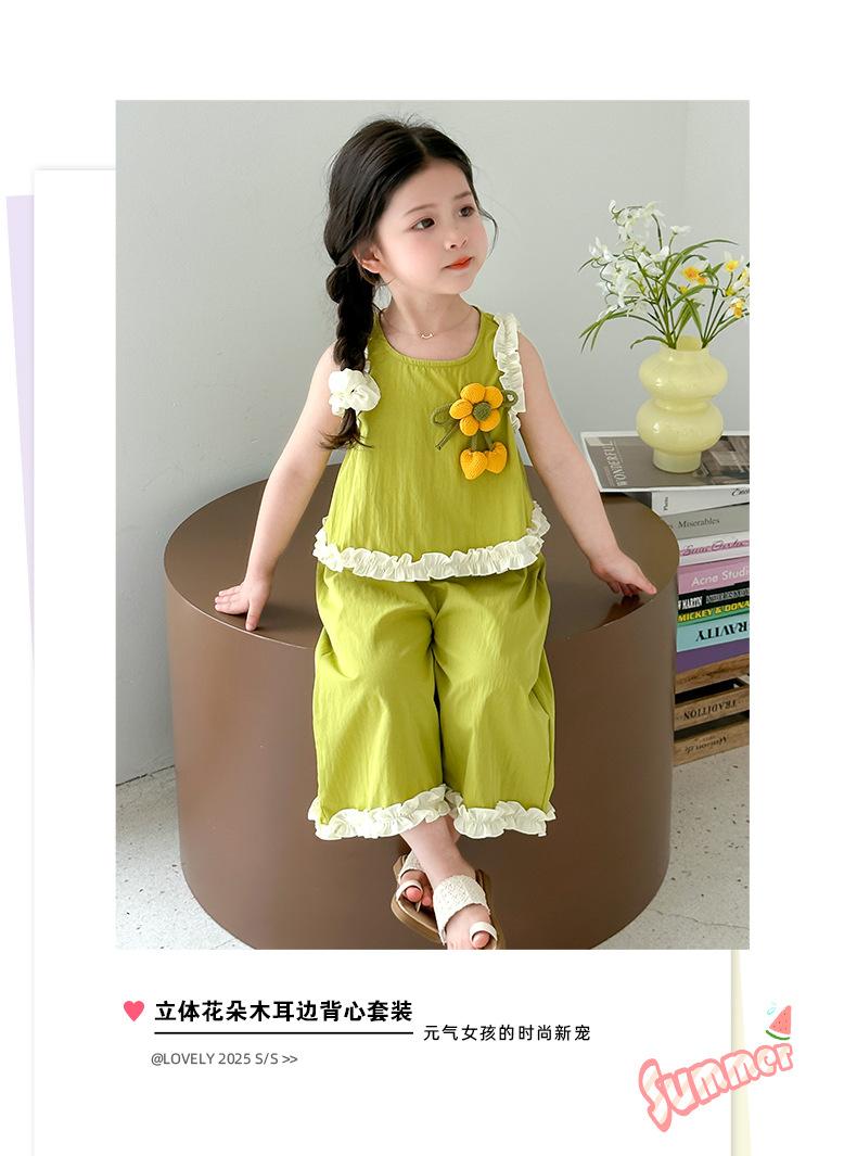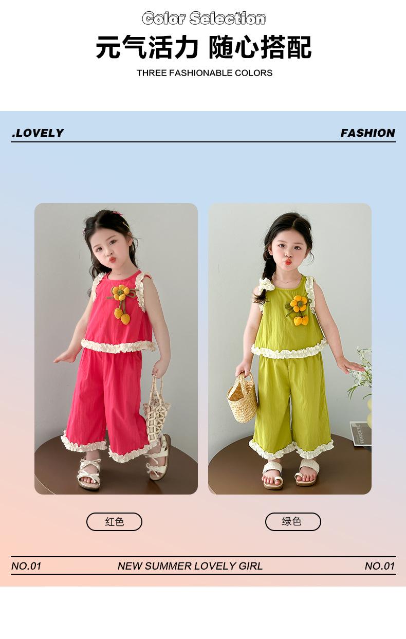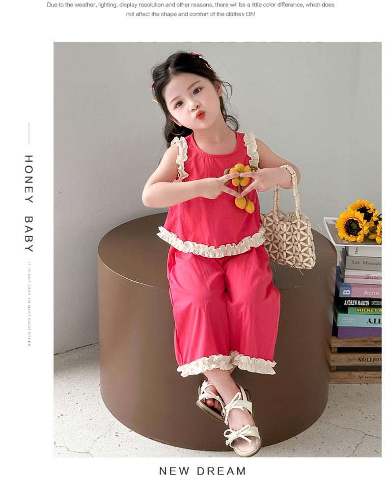Traje de Verano para Niñas 2025 Nuevo Estilo Chaleco sin Mangas para Niños Pantalones de Pierna Ancha Conjunto de Dos Piezas de Verano Moderno para Bebé
