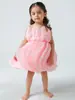 Vestido de un año para el cumpleaños de niña, Vestido de princesa para boda de niña de las flores rosa de verano, Pequeño anfitrión infantil