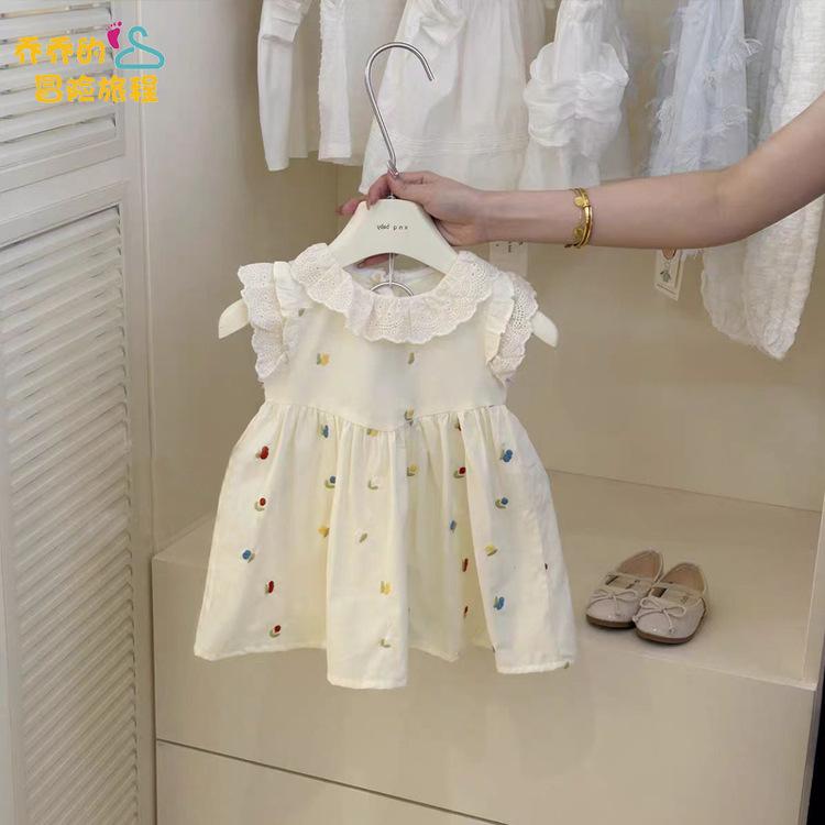 Vestido Bordado de Encaje para Niñas, Vestido de Princesa Delgado de Verano sin Mangas, Vestido Chaleco de Algodón para Bebé Niña Moderno y Lindo