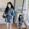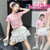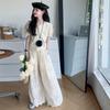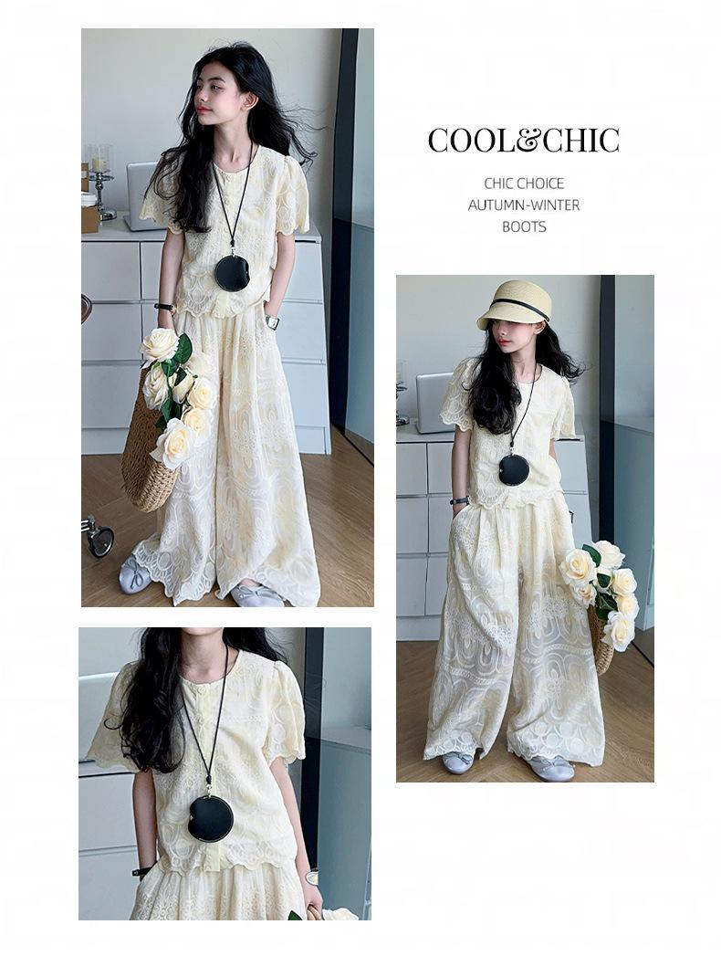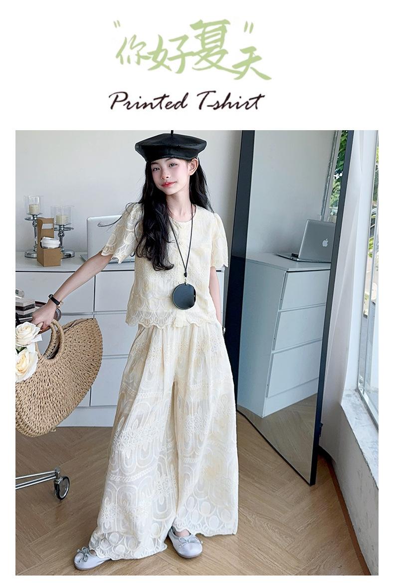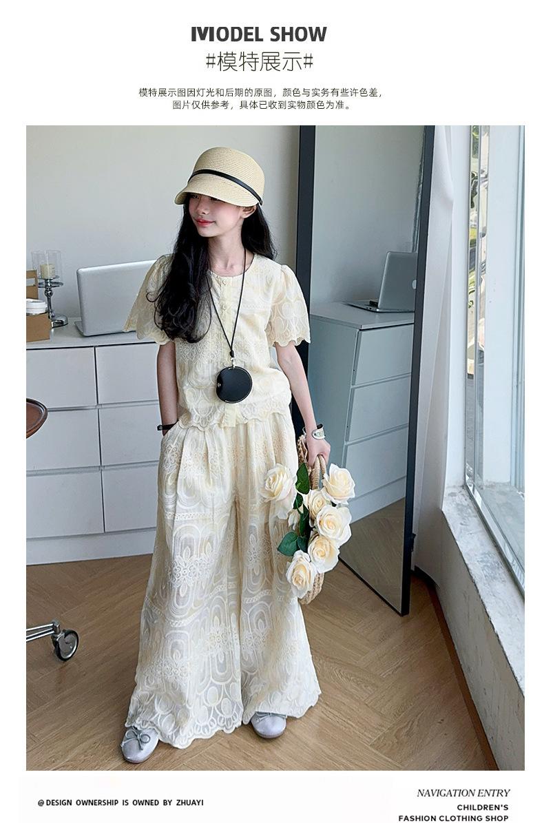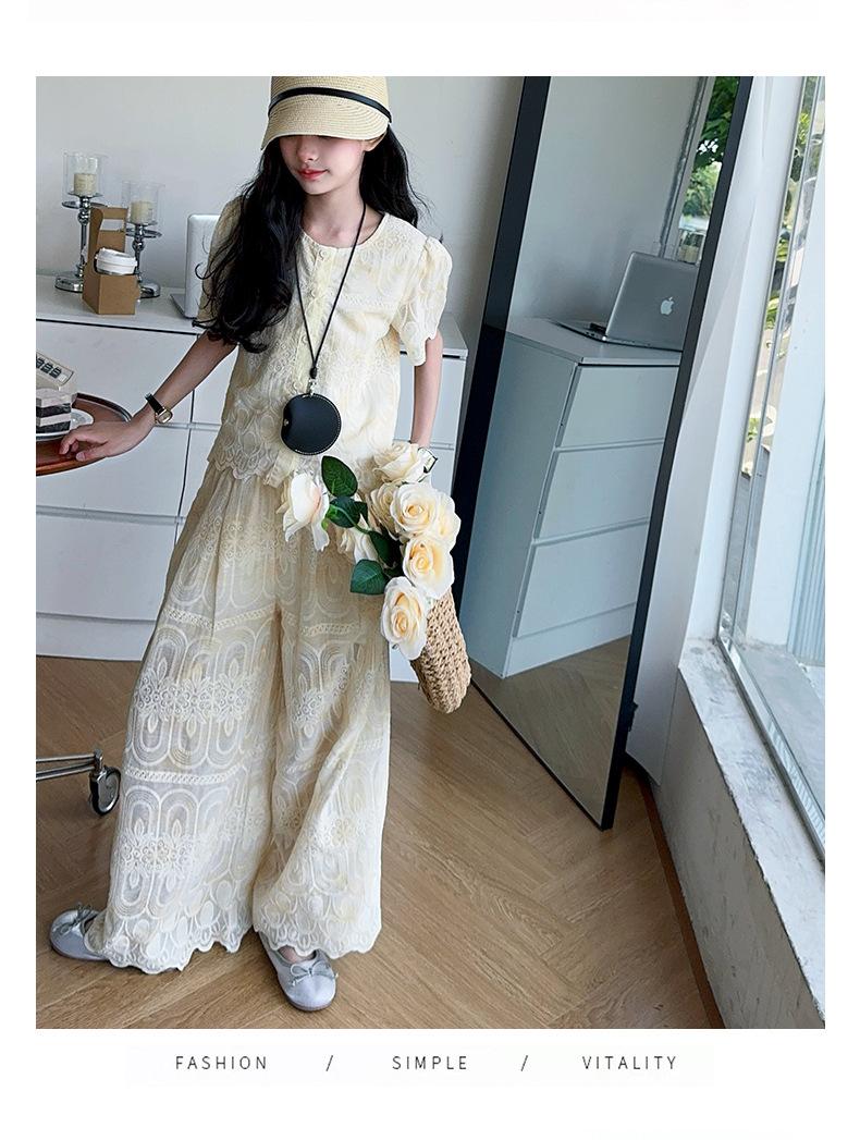 Traje de Verano para Niñas 2025 Nueva Moda Niña Estilo Coreano Estilo Infantil Mediano y Grande Traje Calado de Encaje Tendencia Transfronteriza