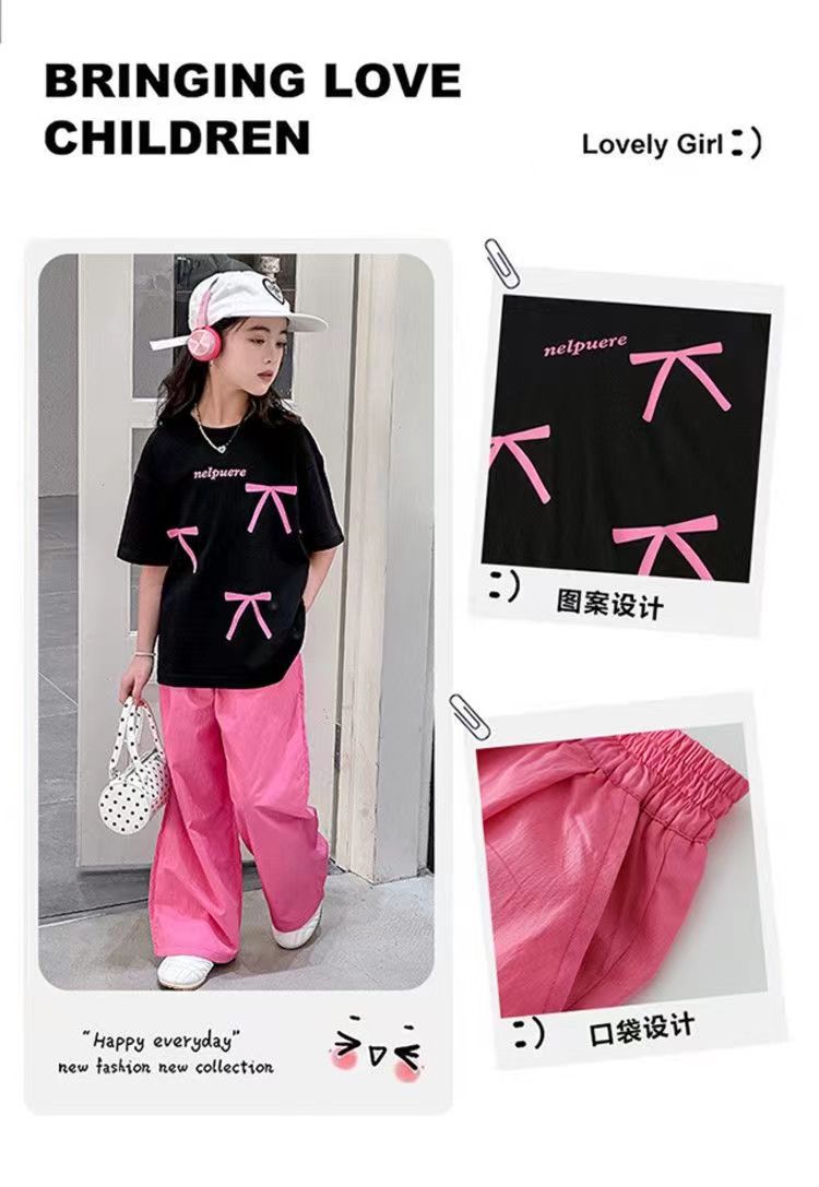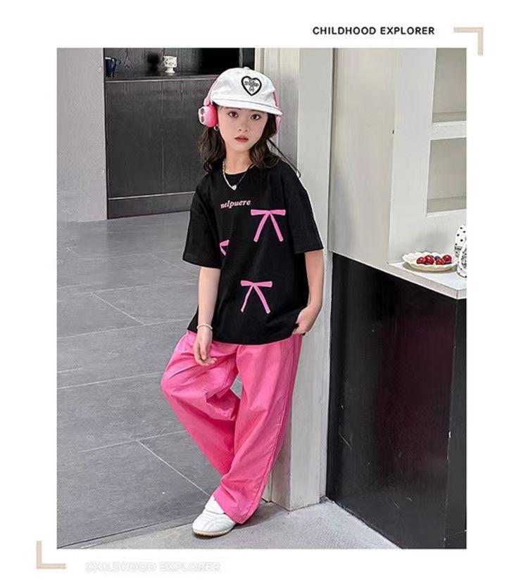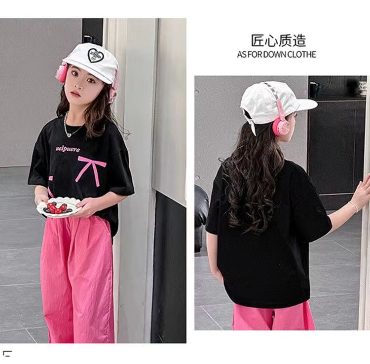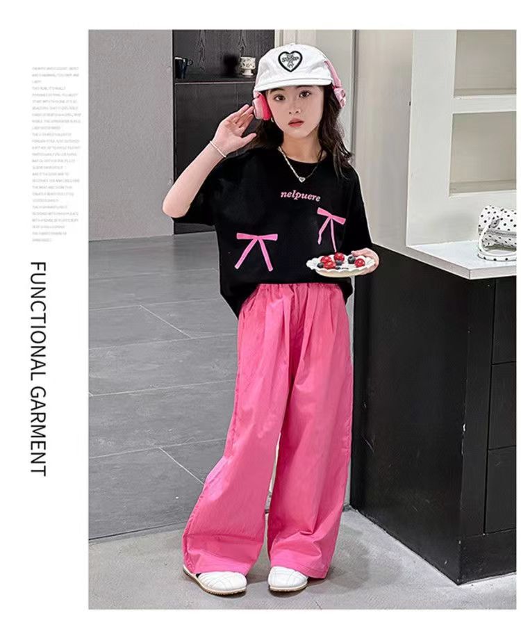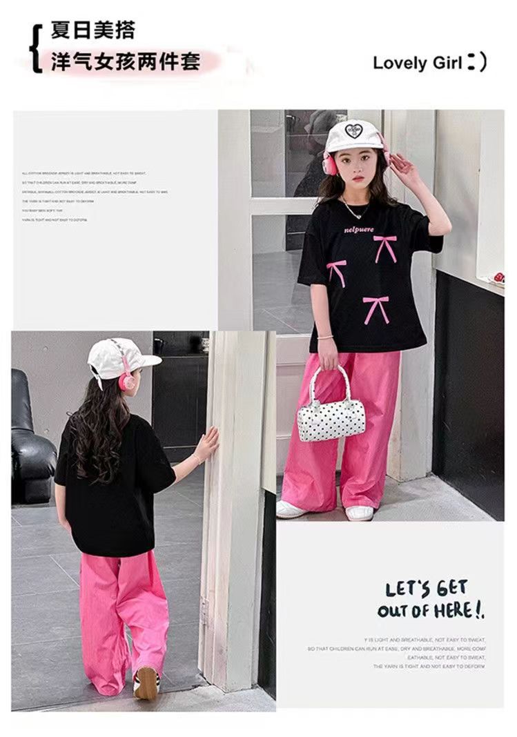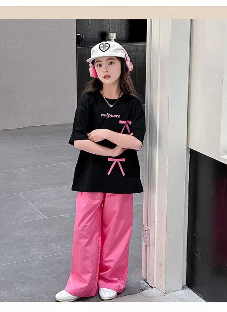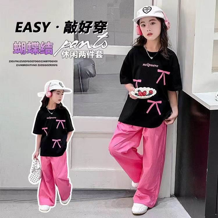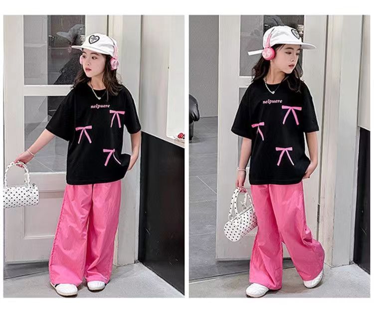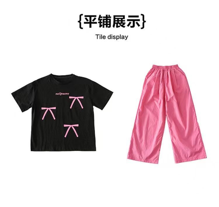 Compra Traje de Verano para Niñas 2025 Nuevo Ropa de Verano para Niñas con Lazo Pantalones de Pierna Ancha Conjunto de Dos Piezas Transpirable al por mayor en Joom.pro
