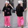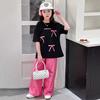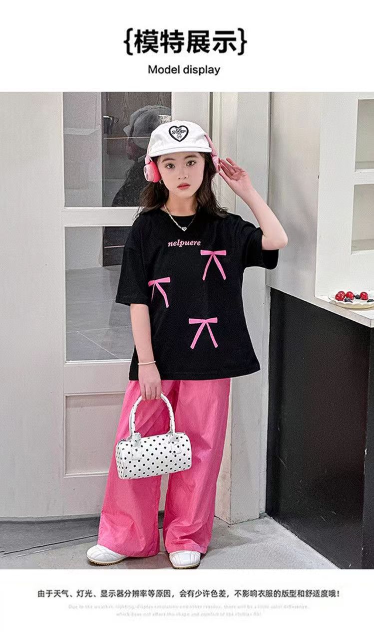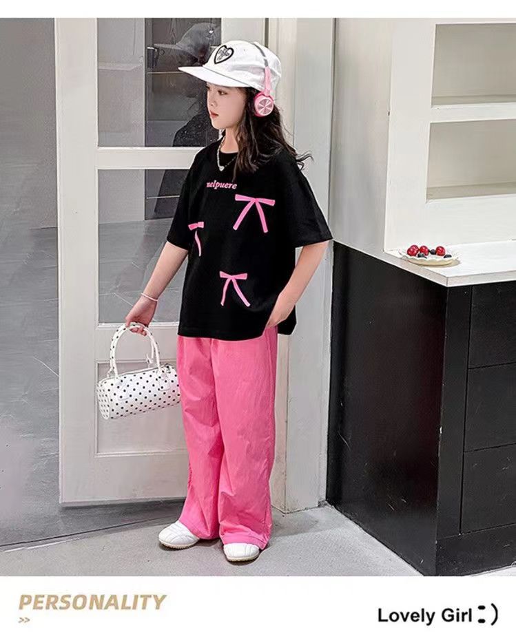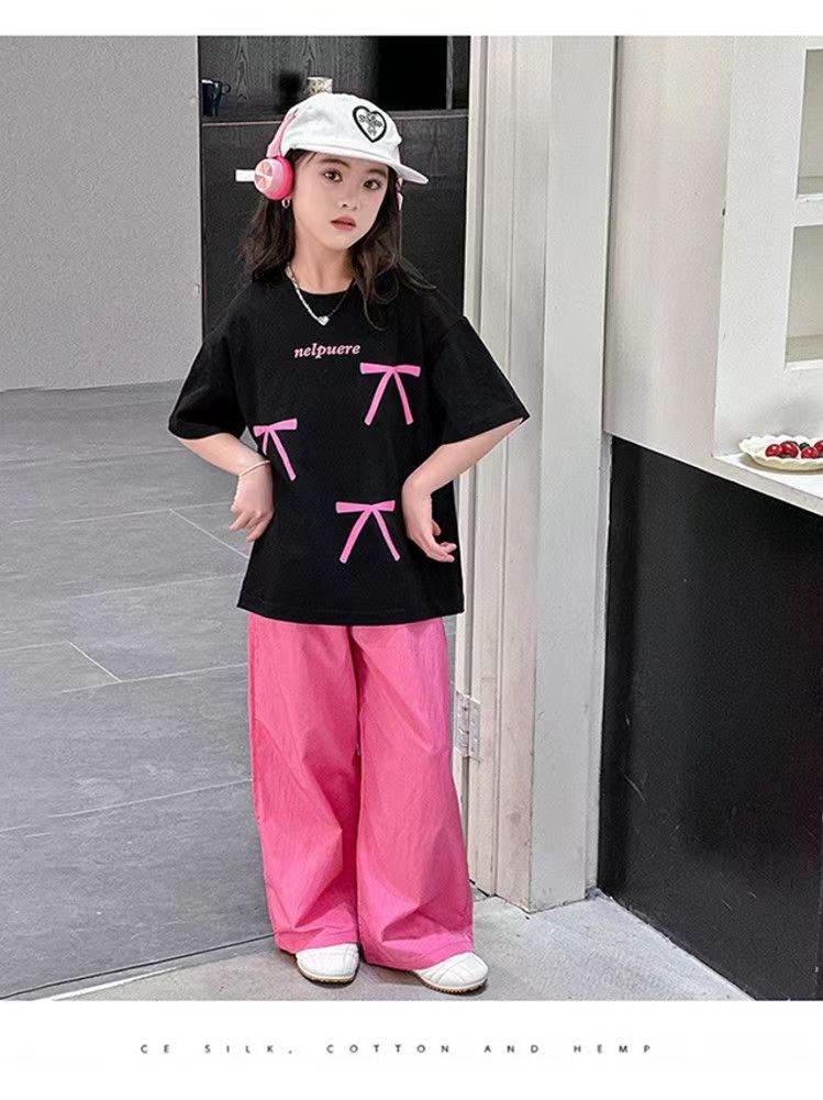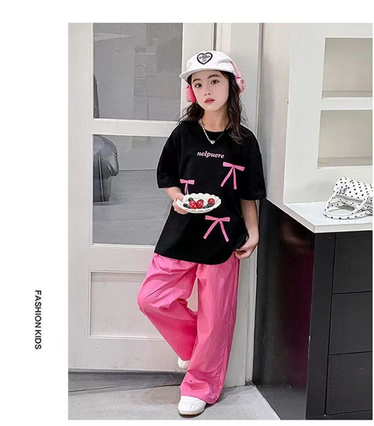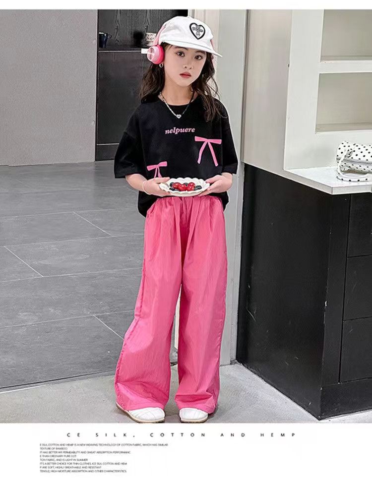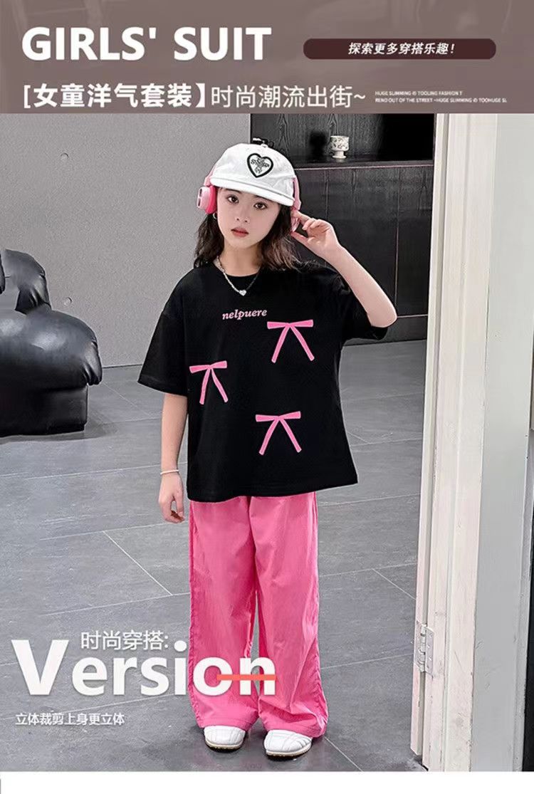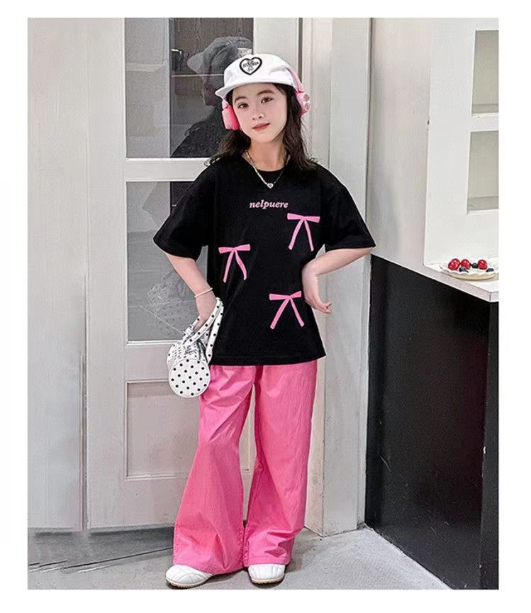 Compra Traje de Verano para Niñas 2025 Nuevo Ropa de Verano para Niñas con Lazo Pantalones de Pierna Ancha Conjunto de Dos Piezas Transpirable al por mayor en Joom.pro