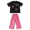 Traje de Verano para Niñas 2025 Nuevo Ropa de Verano para Niñas con Lazo Pantalones de Pierna Ancha Conjunto de Dos Piezas Transpirable