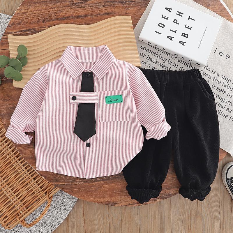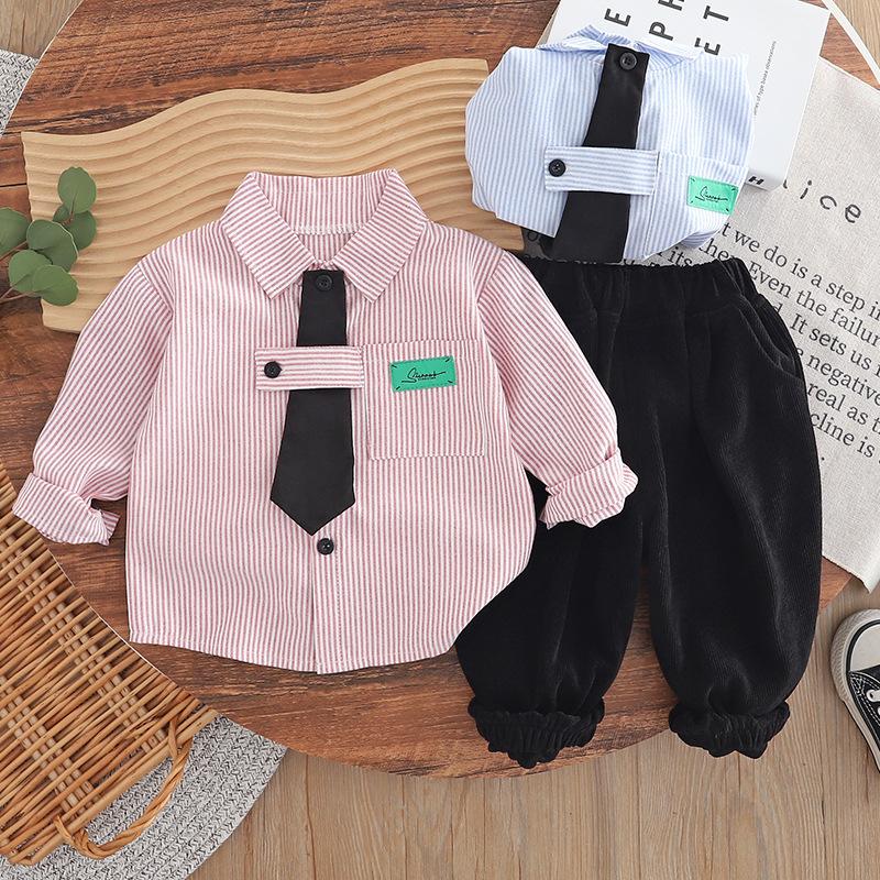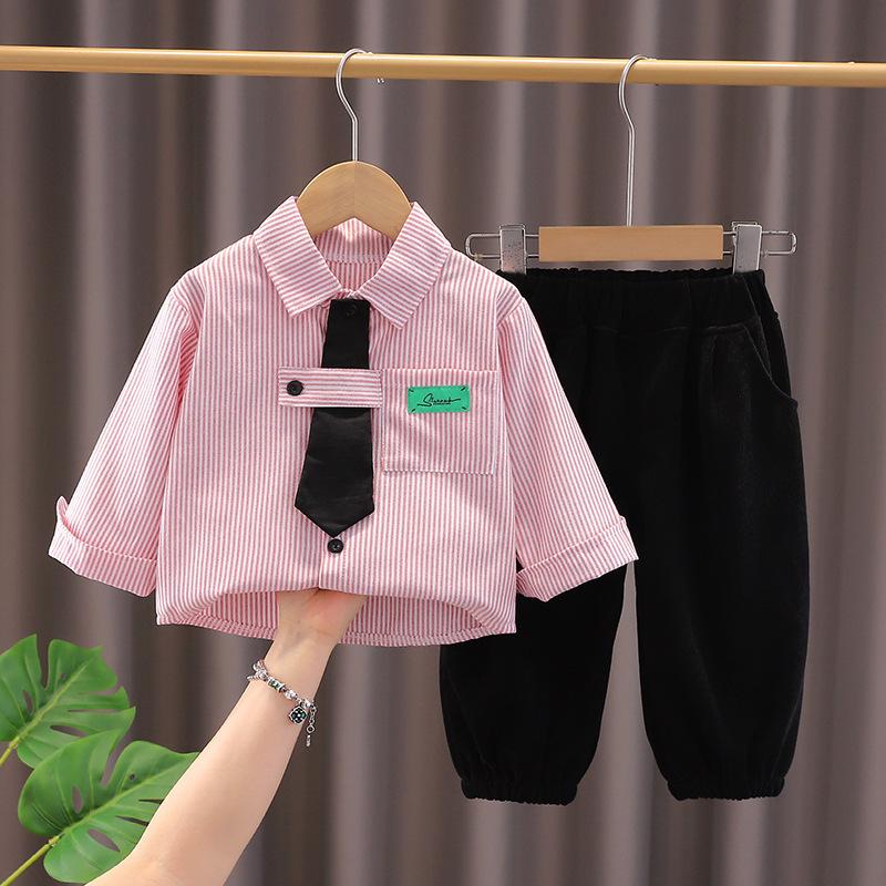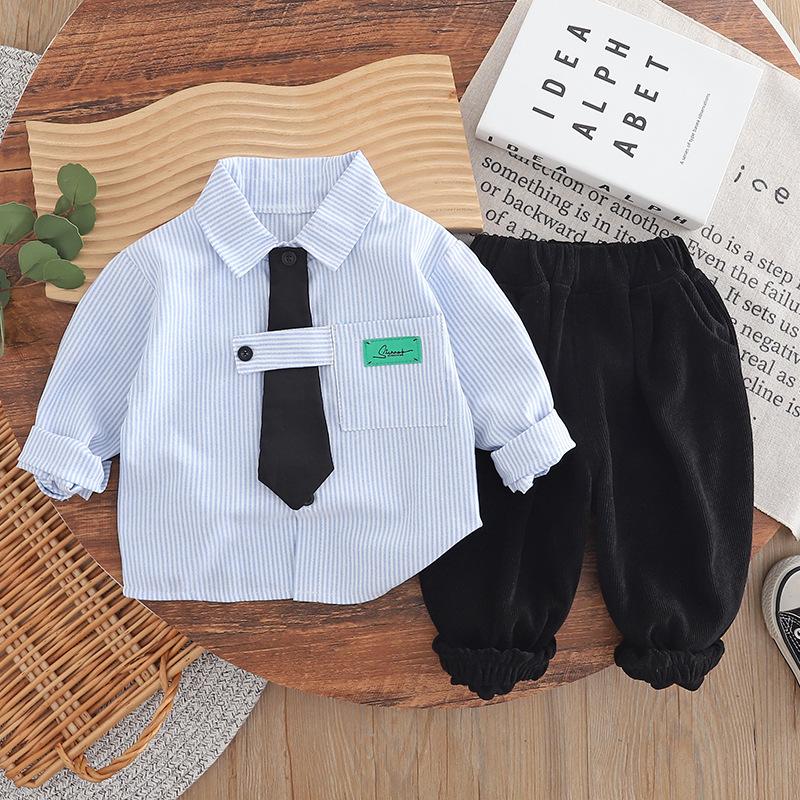 Compra Conjunto de Otoño para Niño 2025 Nuevo Elegante para Niños Primavera y Otoño Camisa de Corbata de Manga Larga de Dos Piezas Moderno al por mayor en Joom.pro