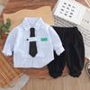 Conjunto de Otoño para Niño 2025 Nuevo Elegante para Niños Primavera y Otoño Camisa de Corbata de Manga Larga de Dos Piezas Moderno