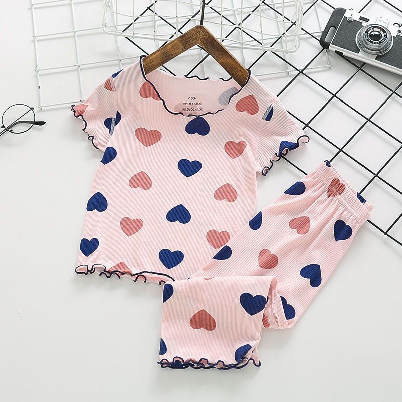 Verano para Niños Nuevo Ropa de Abrigo de Manga Corta para Niñas Pijama para Bebé Conjunto de Moda de Dos Piezas para Niñas Verano Estilo Coreano de Moda
