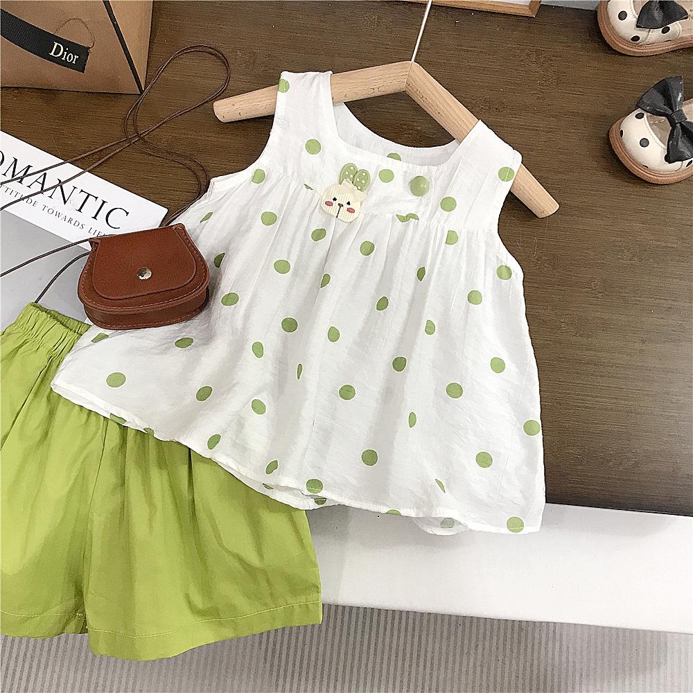 Traje de Verano para Niñas Nuevo Dulce y Lindo Niña Bebé Shorts Ropa Casual Set de Dos Piezas Chaleco para Niños Comercio Exterior