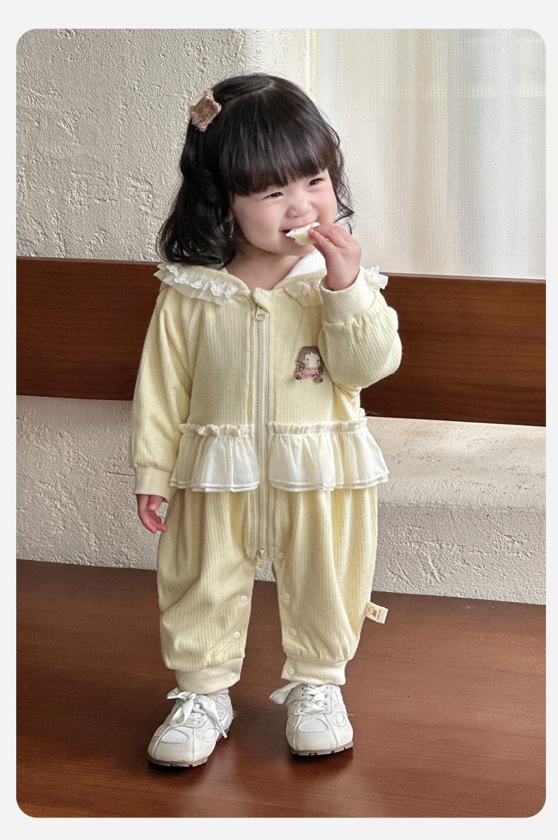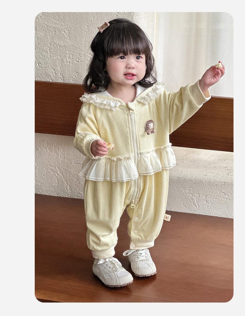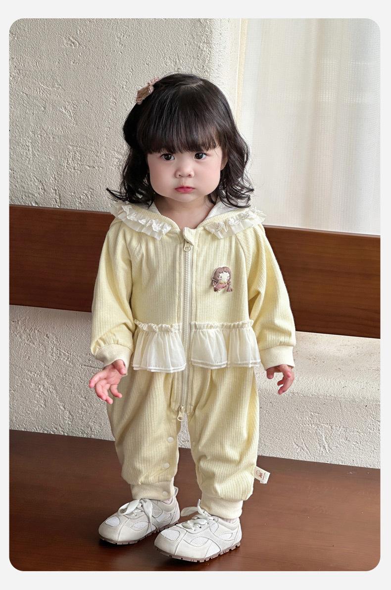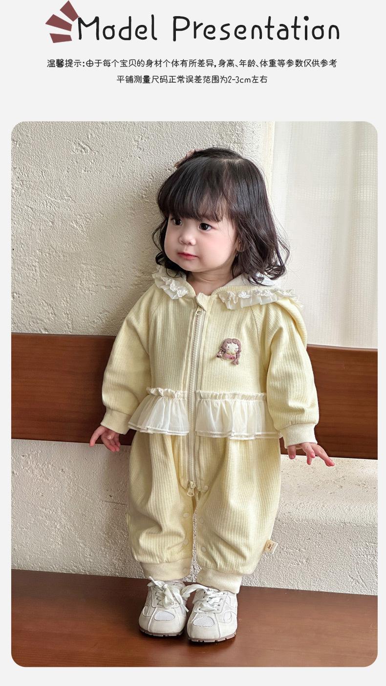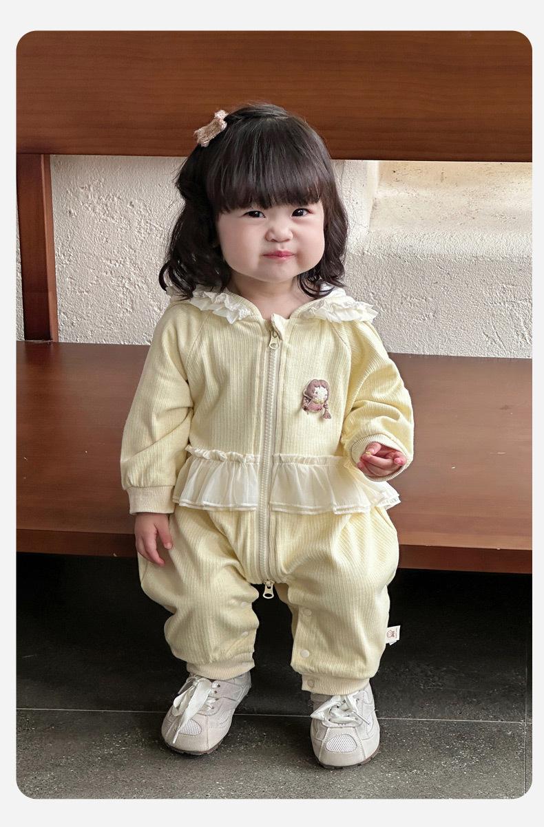 Bebé e Infantil Otoño 2025 Nuevo Mono Estilo Coreano Traje para Gatear con Capucha para Bebé Niña Ropa de Encaje a la Moda