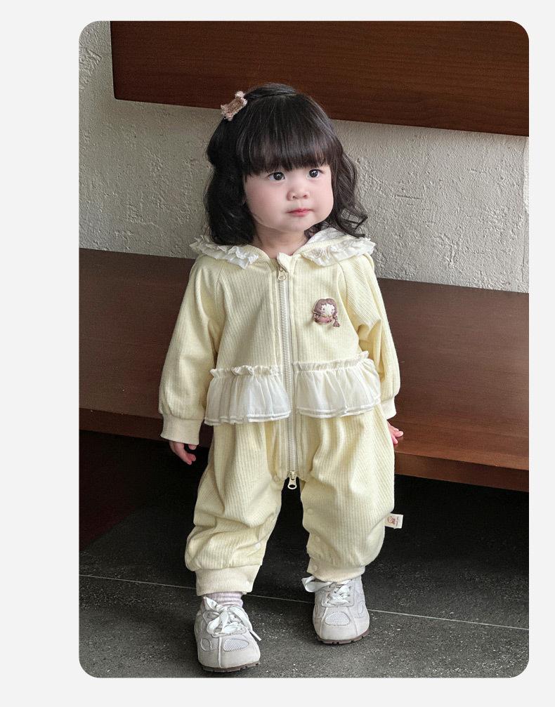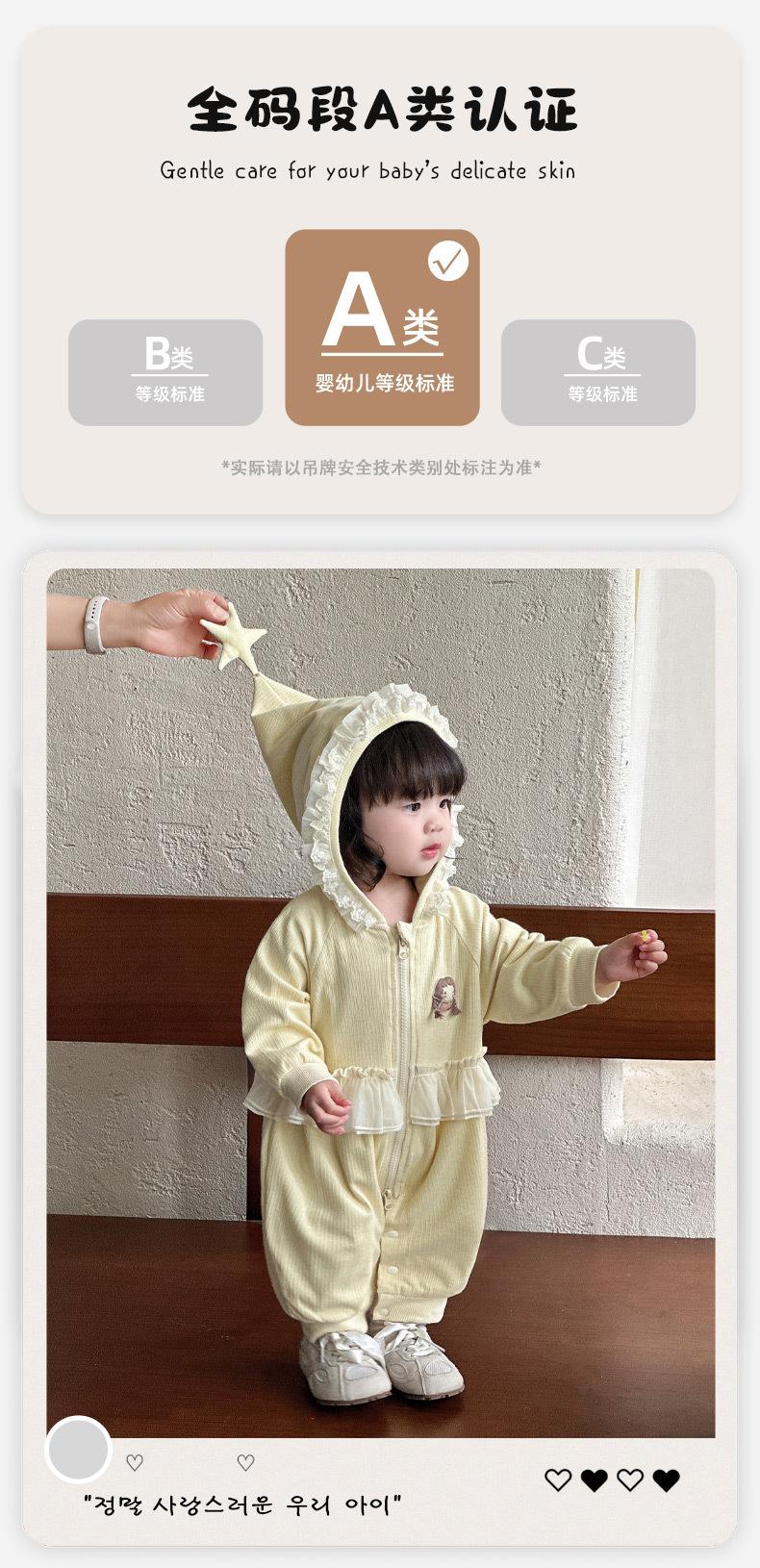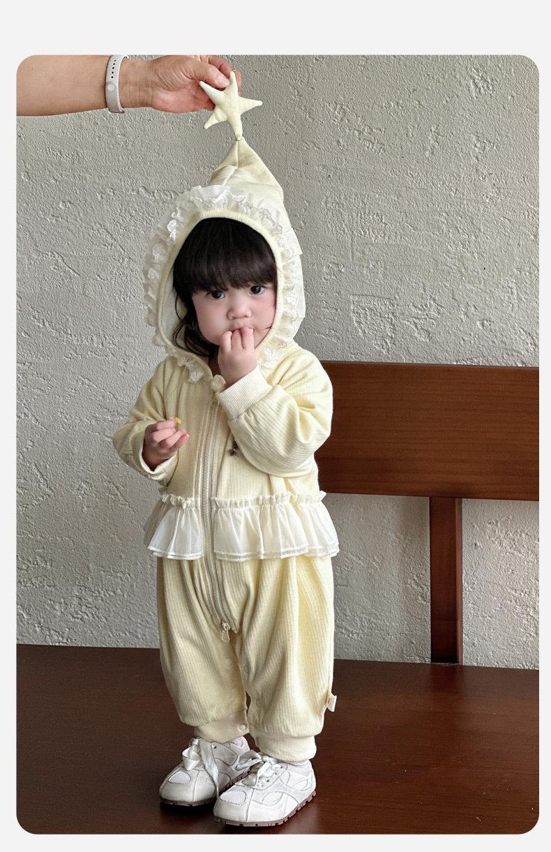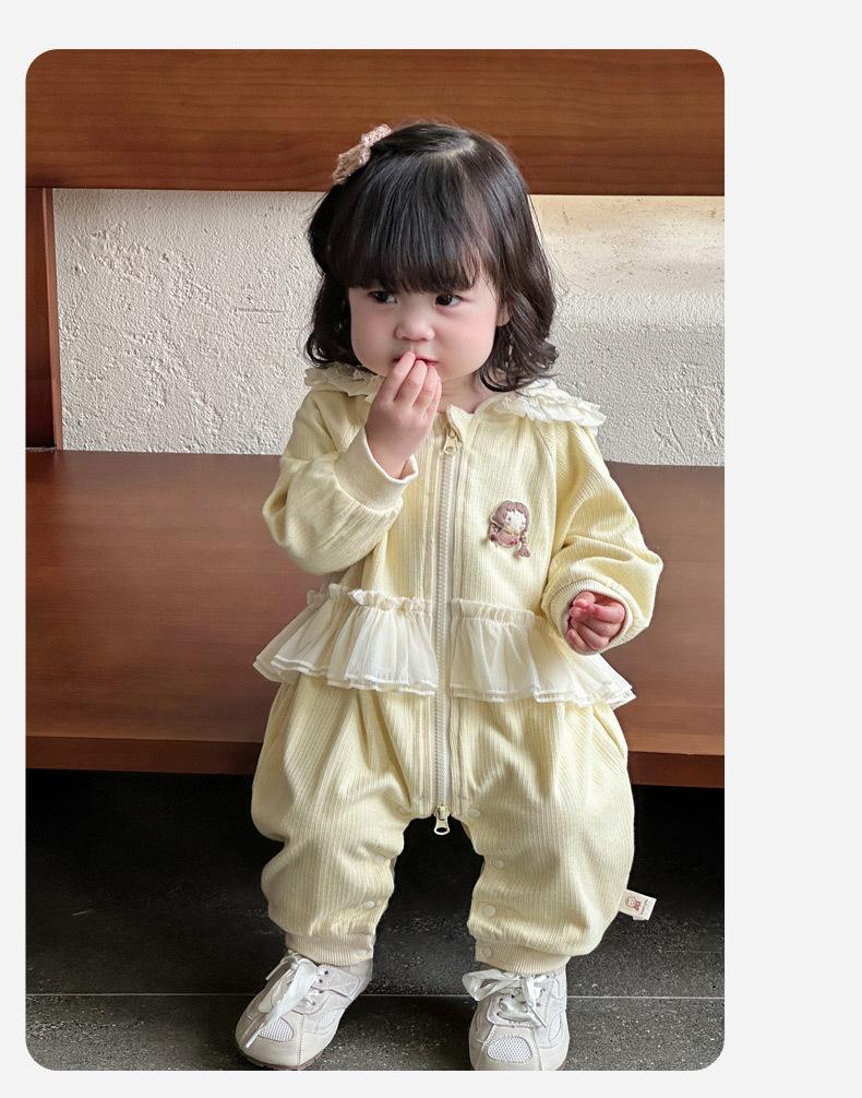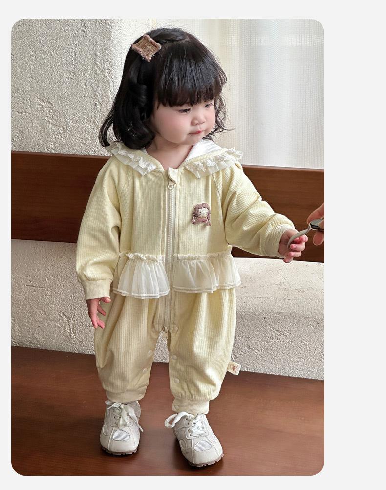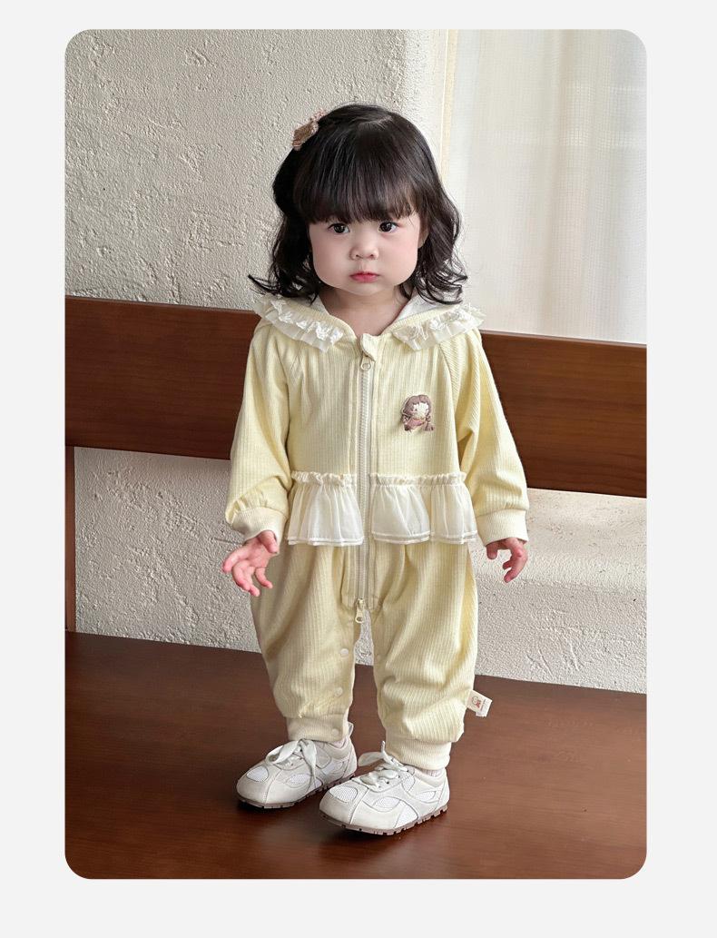 Bebé e Infantil Otoño 2025 Nuevo Mono Estilo Coreano Traje para Gatear con Capucha para Bebé Niña Ropa de Encaje a la Moda
