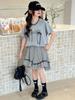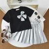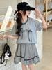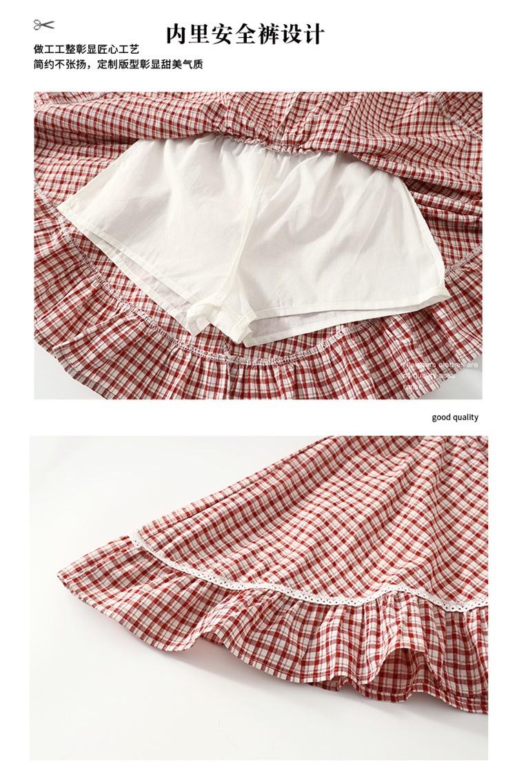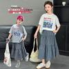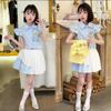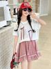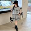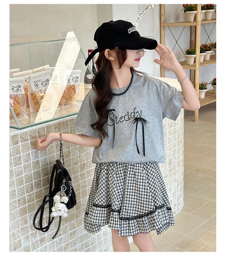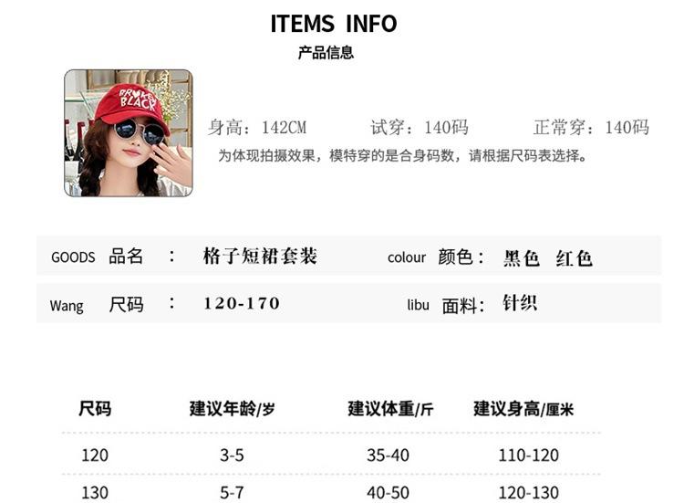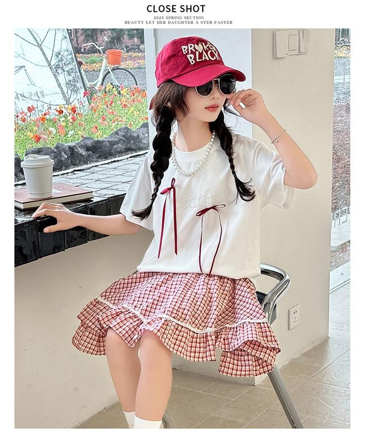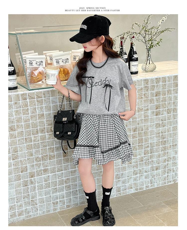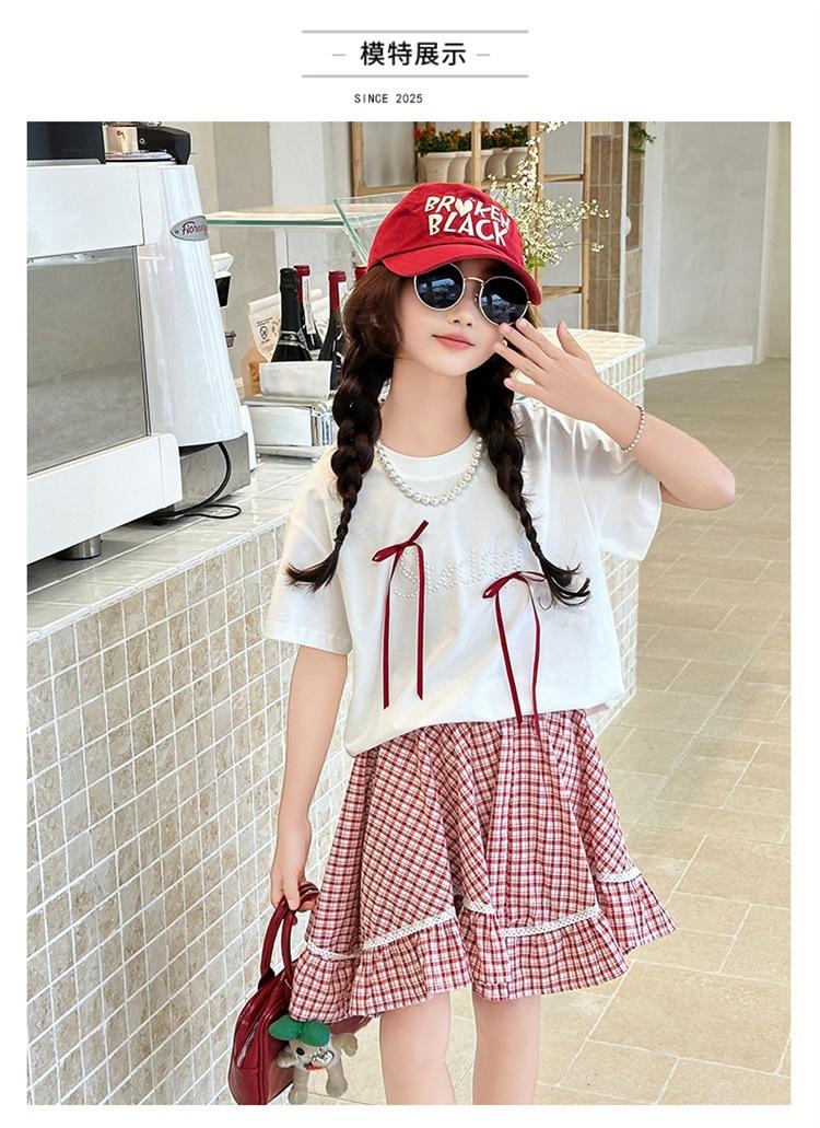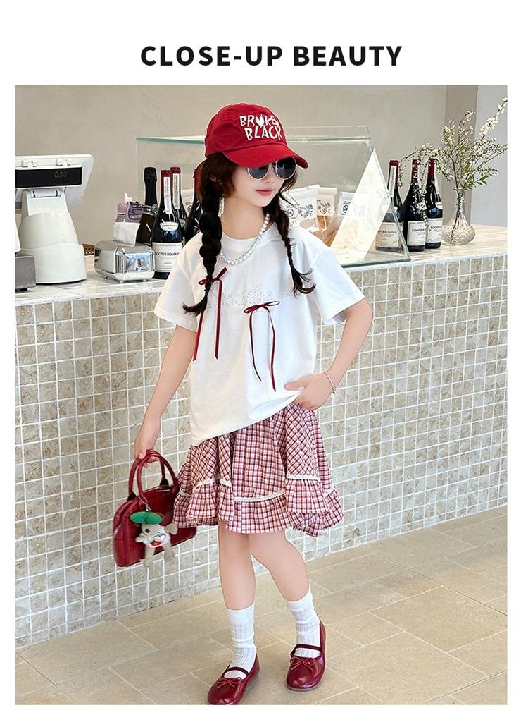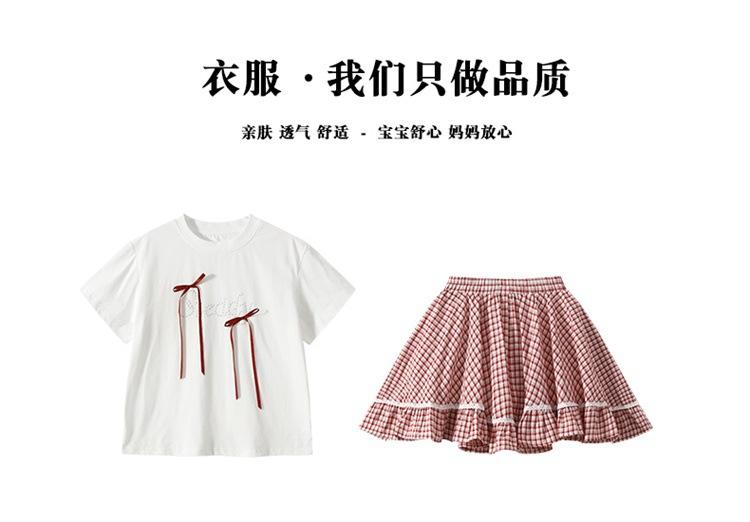 Traje de manga corta para niña 2025 Nuevo estilo Estilo occidental Ropa de verano para niños grandes Verano para niños Falda a cuadros Conjunto de dos piezas