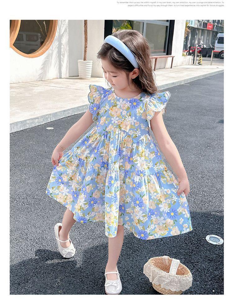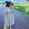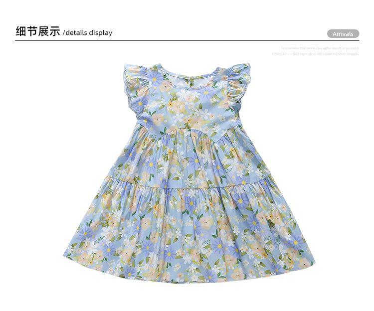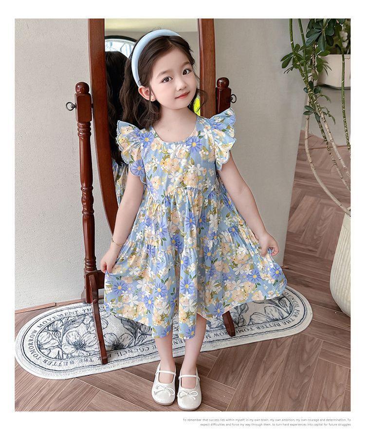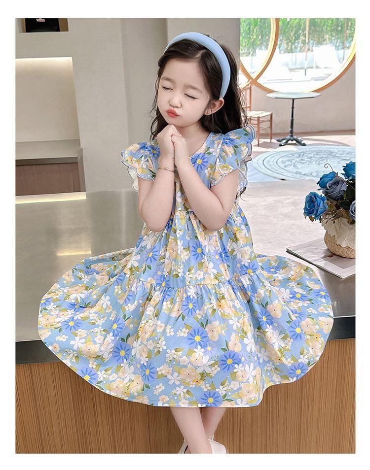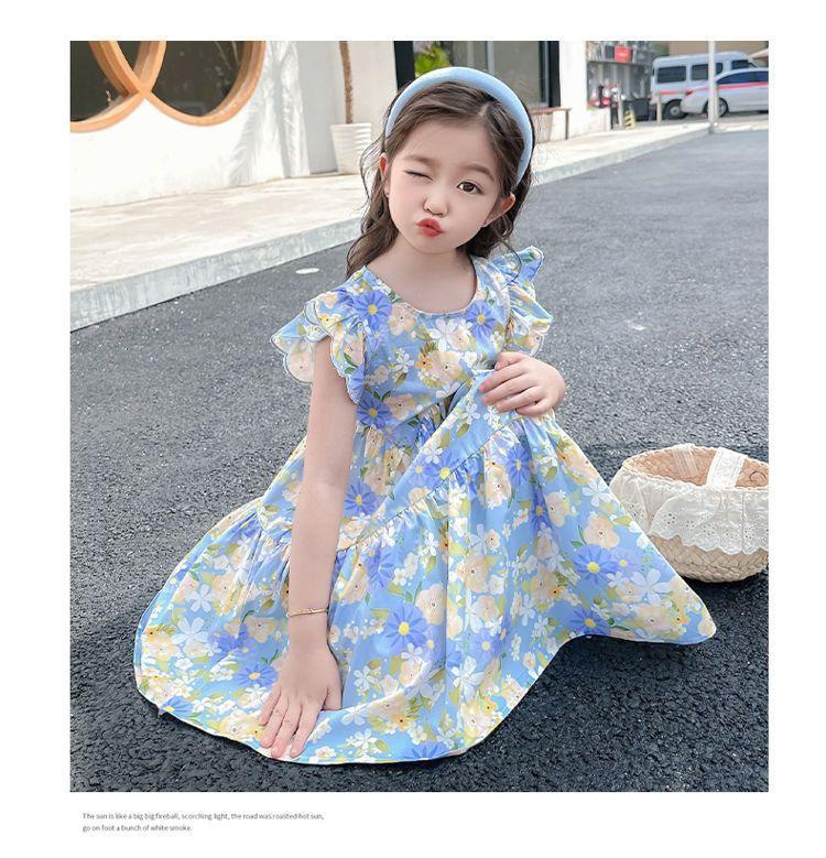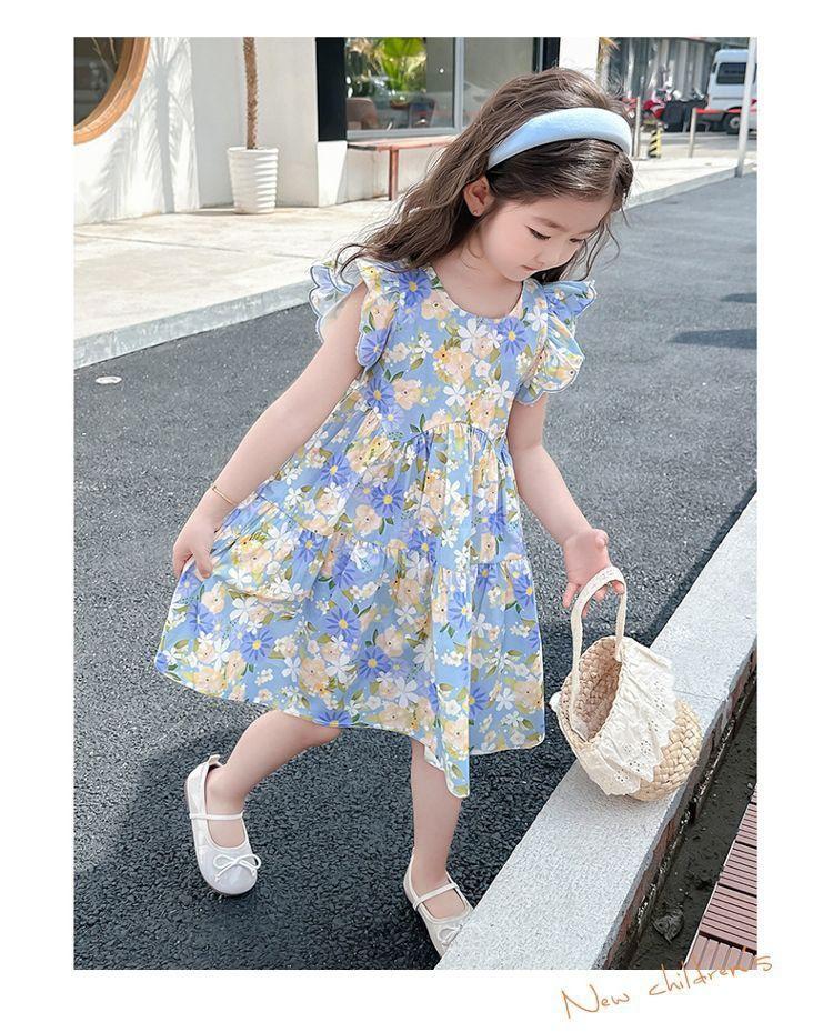 Vestido de Verano para Niñas Moda para Bebés Niños Elegante Moderno Marca Estilo Coreano Floral Pastoral Mangas Volantes Dulce Vestido de Princesa