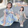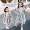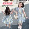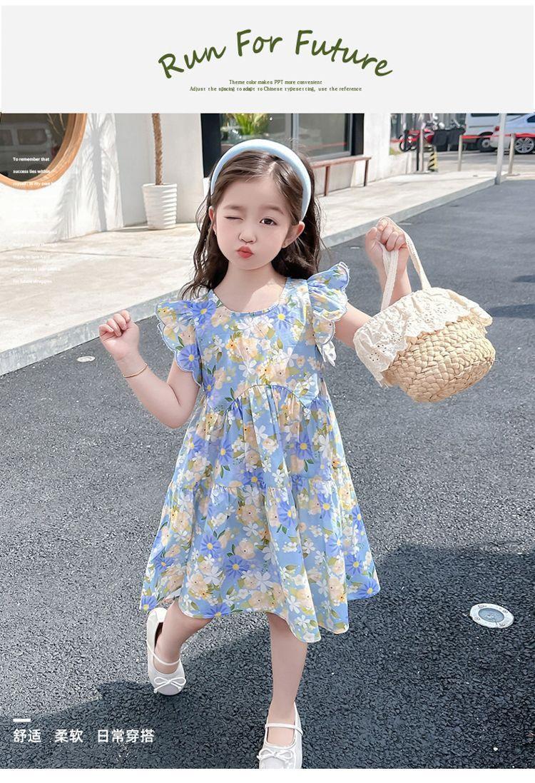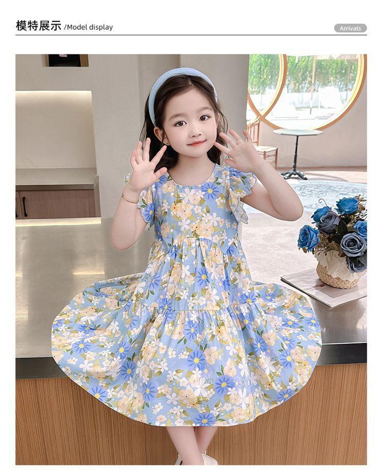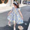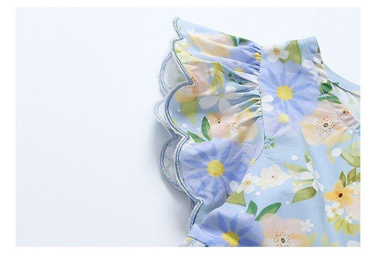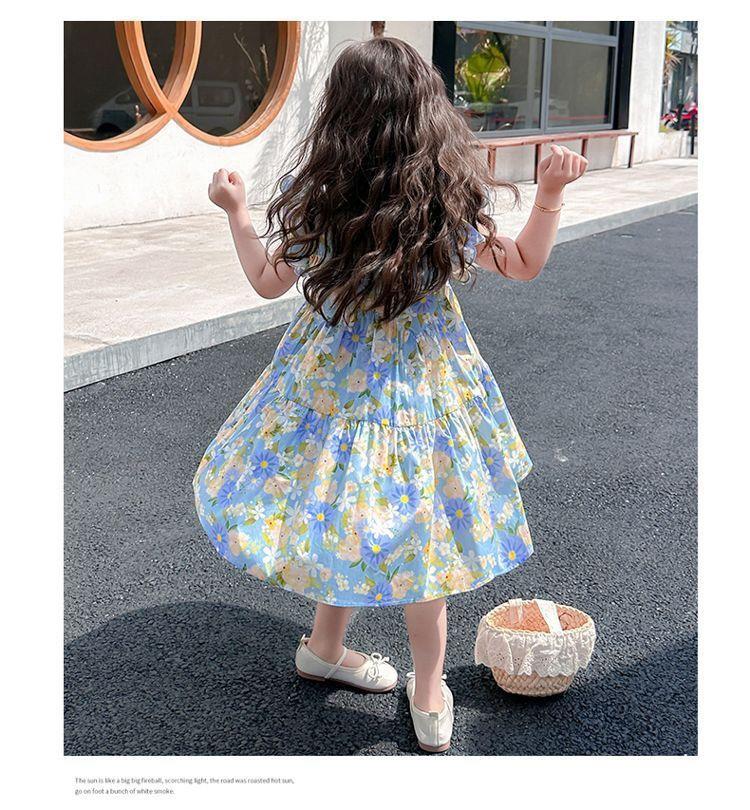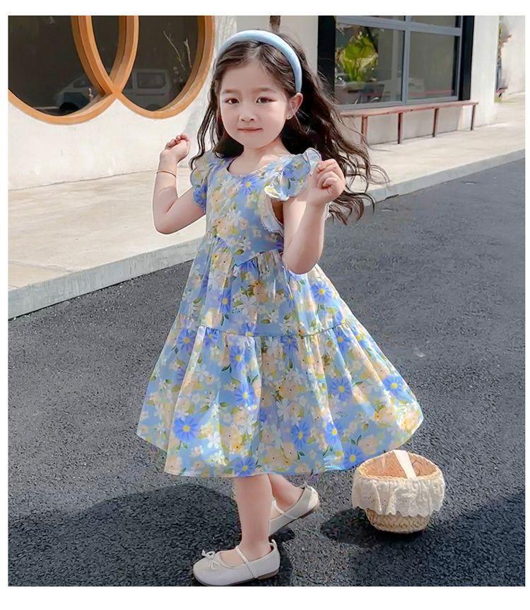 Vestido de Verano para Niñas Moda para Bebés Niños Elegante Moderno Marca Estilo Coreano Floral Pastoral Mangas Volantes Dulce Vestido de Princesa