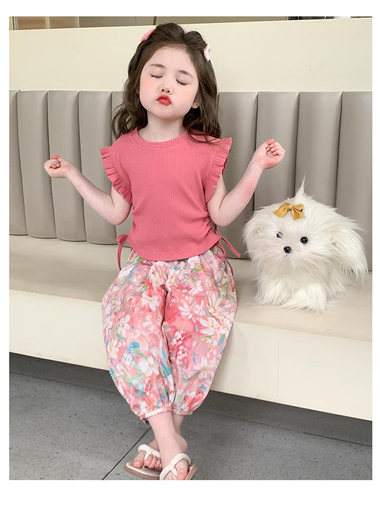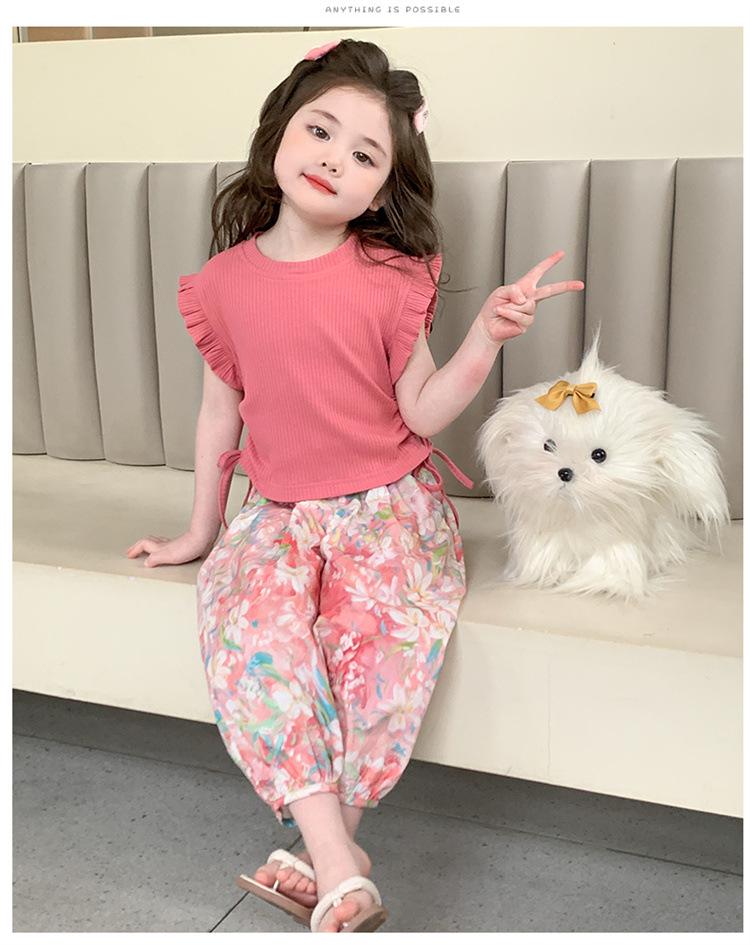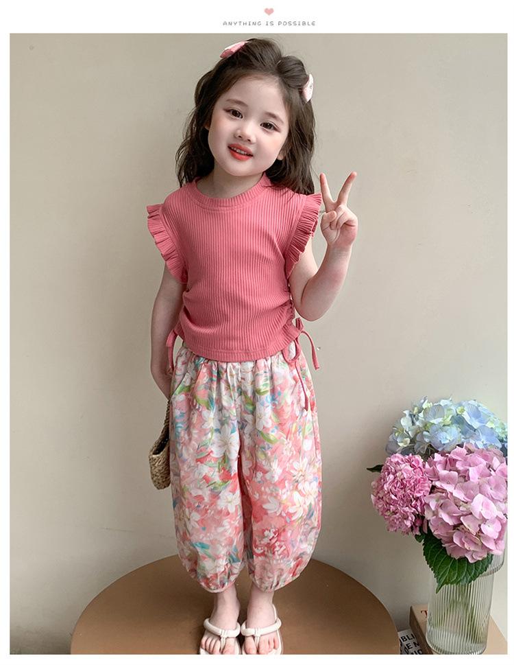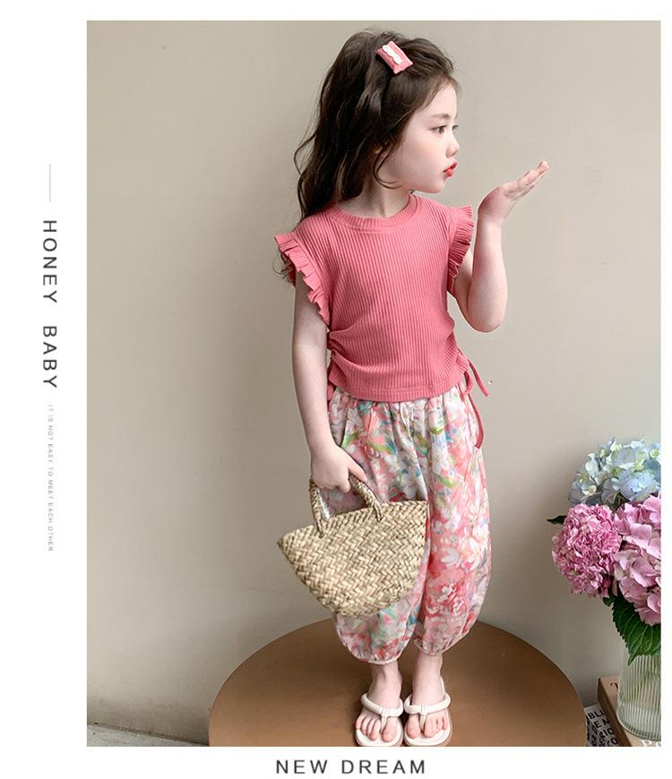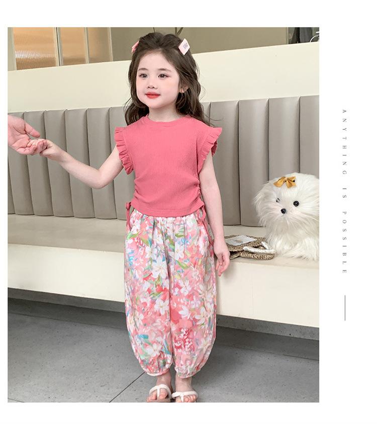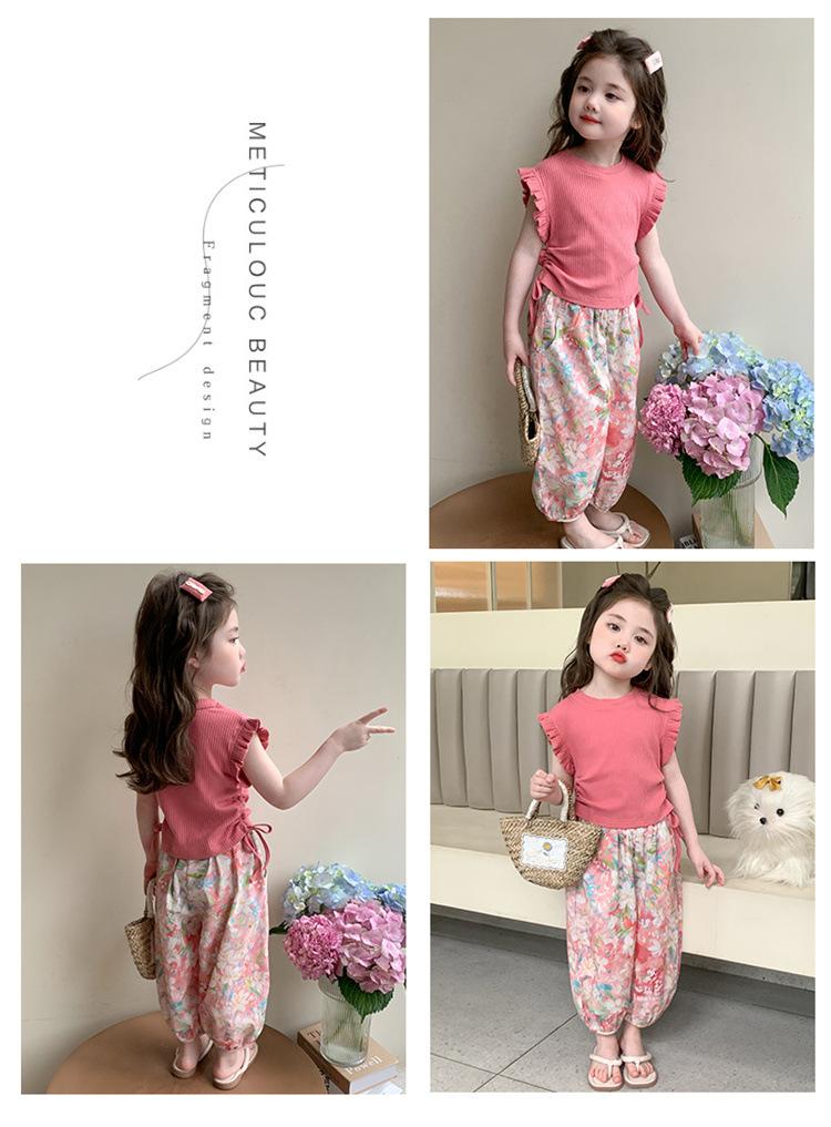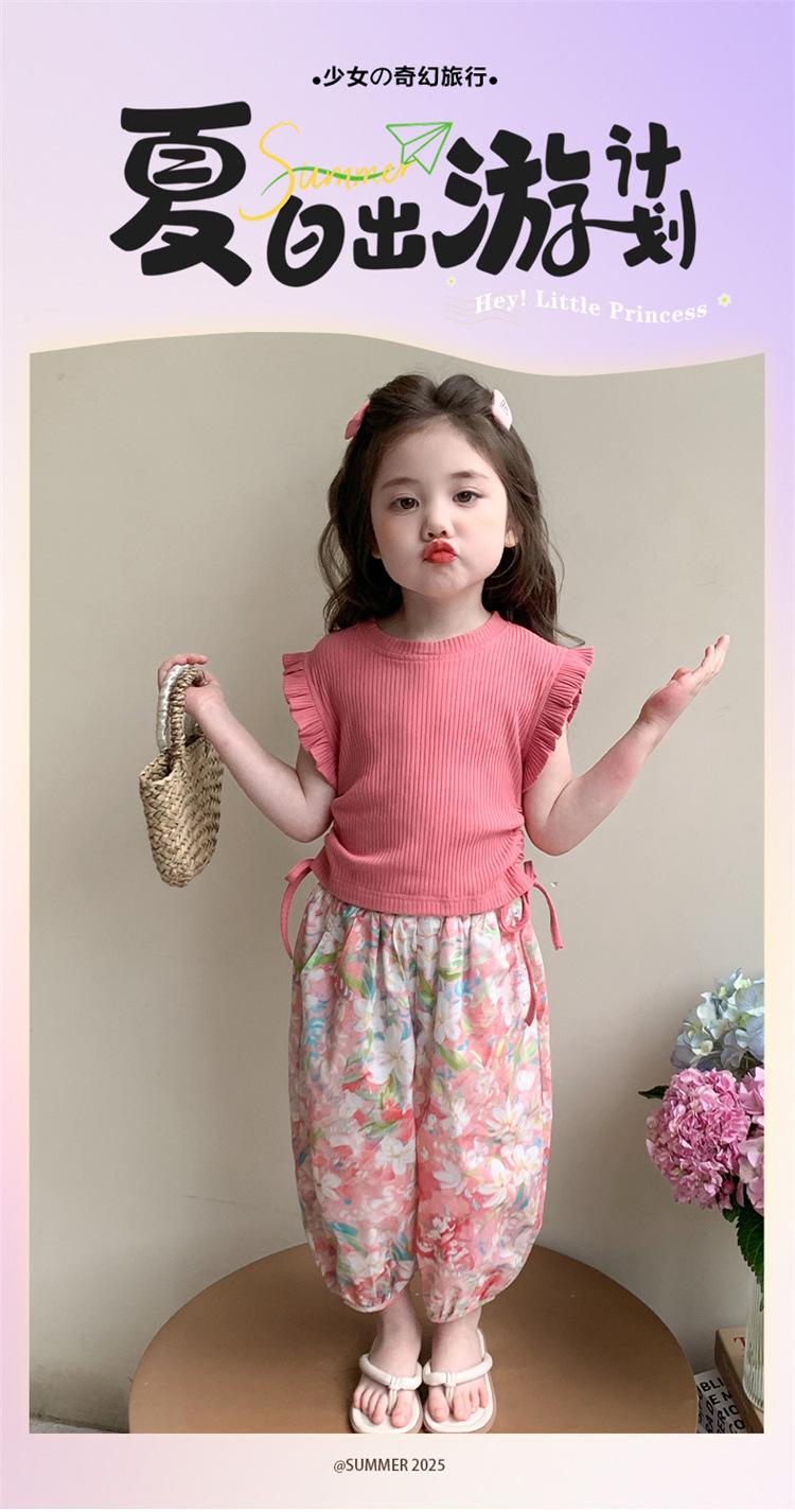 Conjunto de Pantalón Floral Antimosquitos para Niñas 2025 Verano Nueva Moda Conjunto Elegante de Dos Piezas para Niñas Pequeñas
