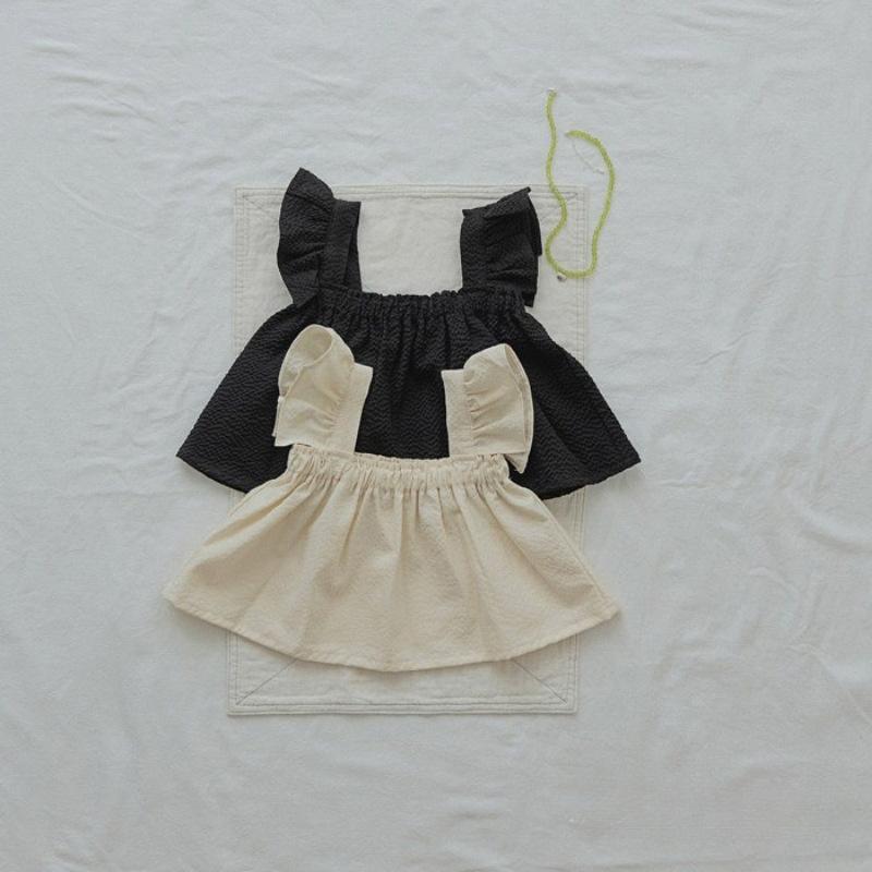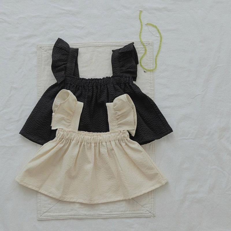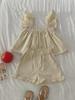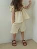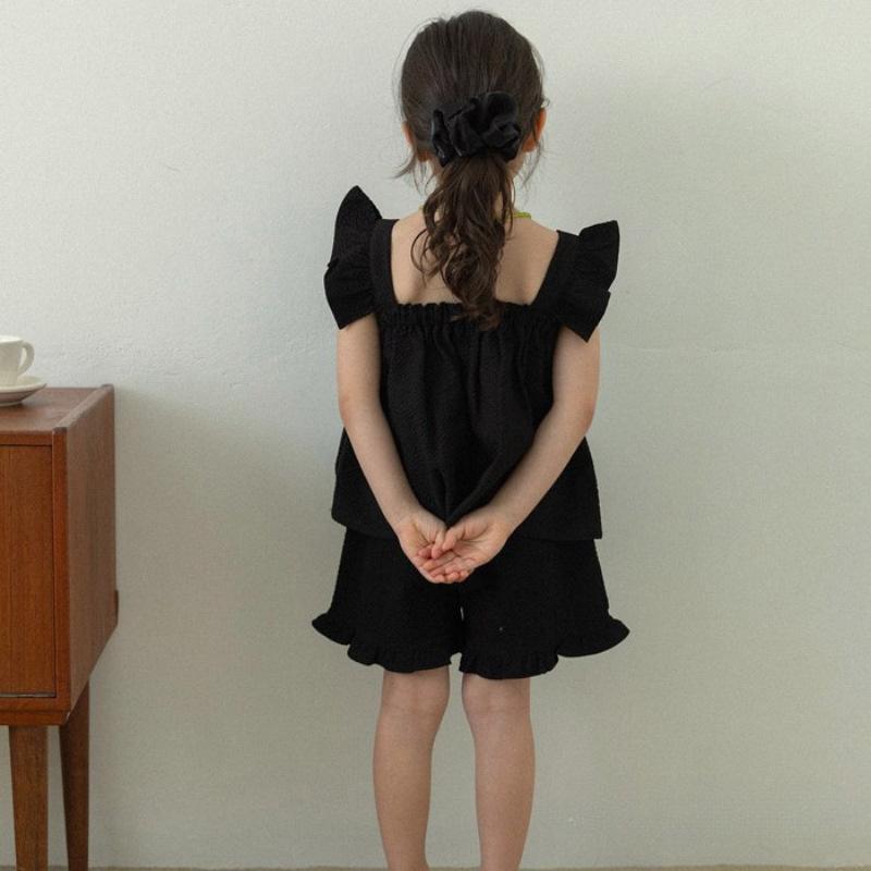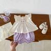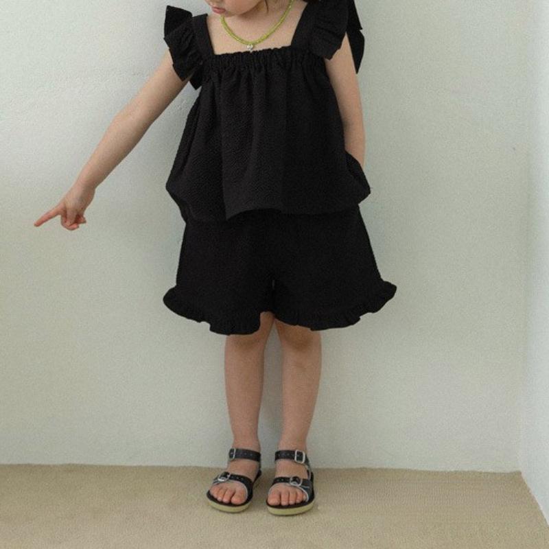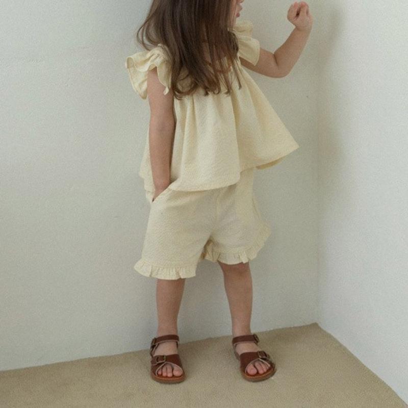 Traje de Color Puro para Niñas Verano Nuevo Estilo Bebé Niña Moda y Dulce Top de Manga Volante + Shorts Set Coreano de Dos Piezas