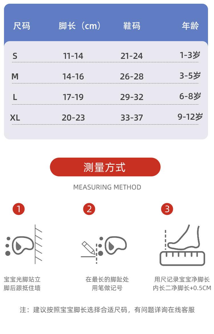 S size 1-3 years old [recommended shoe size 21-24], M size 3-5 years old [recommended shoe size 25-28], L size...