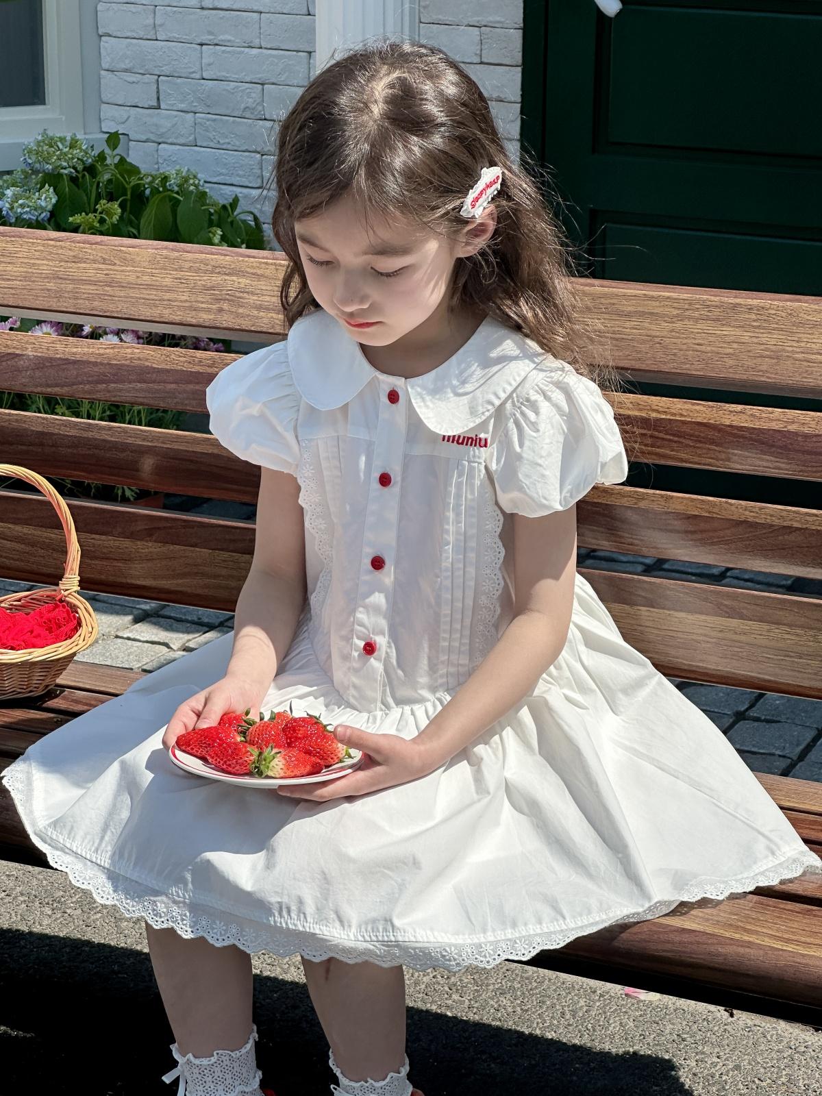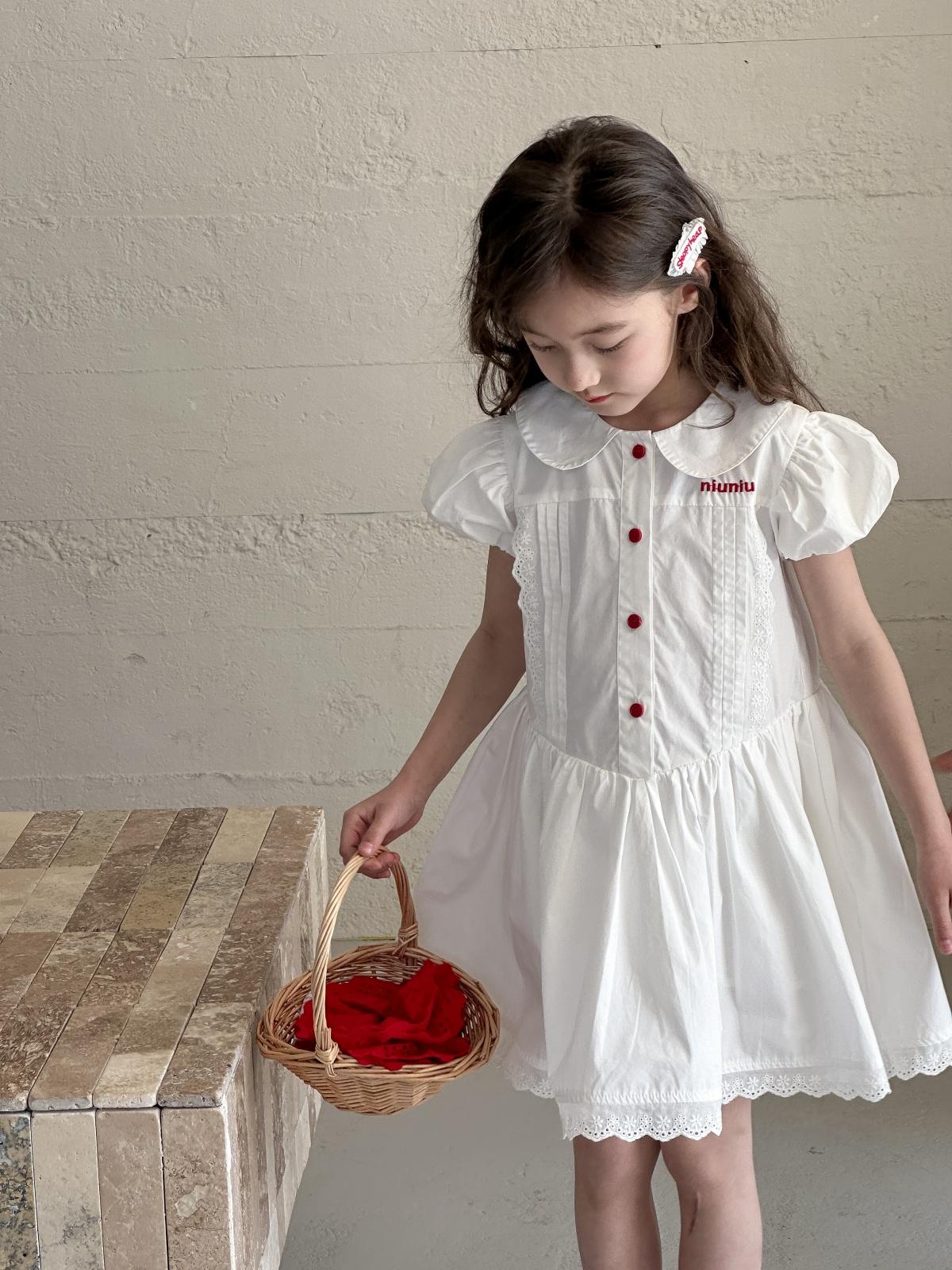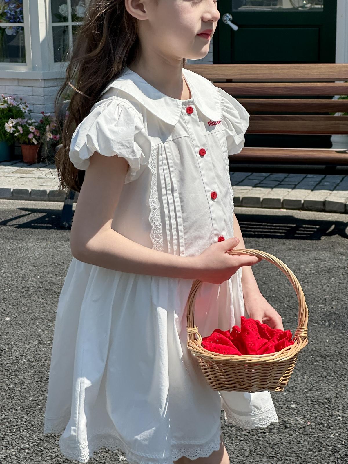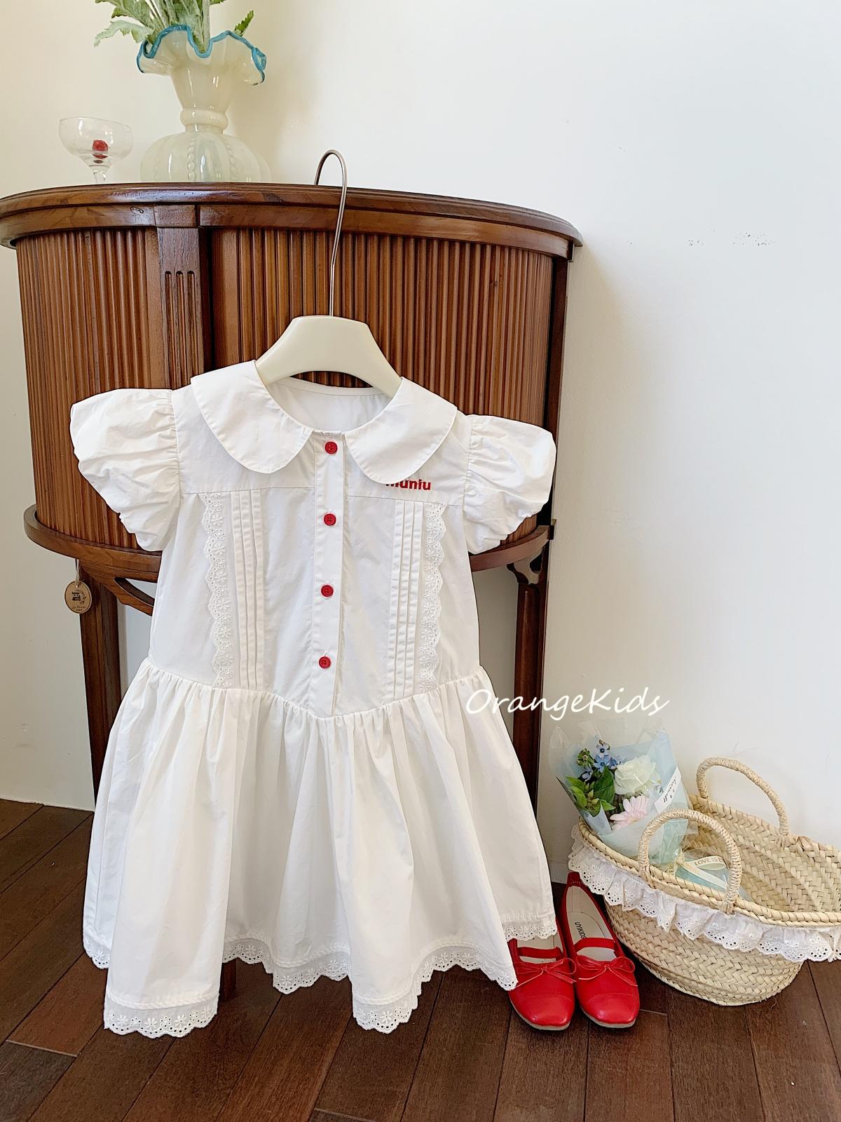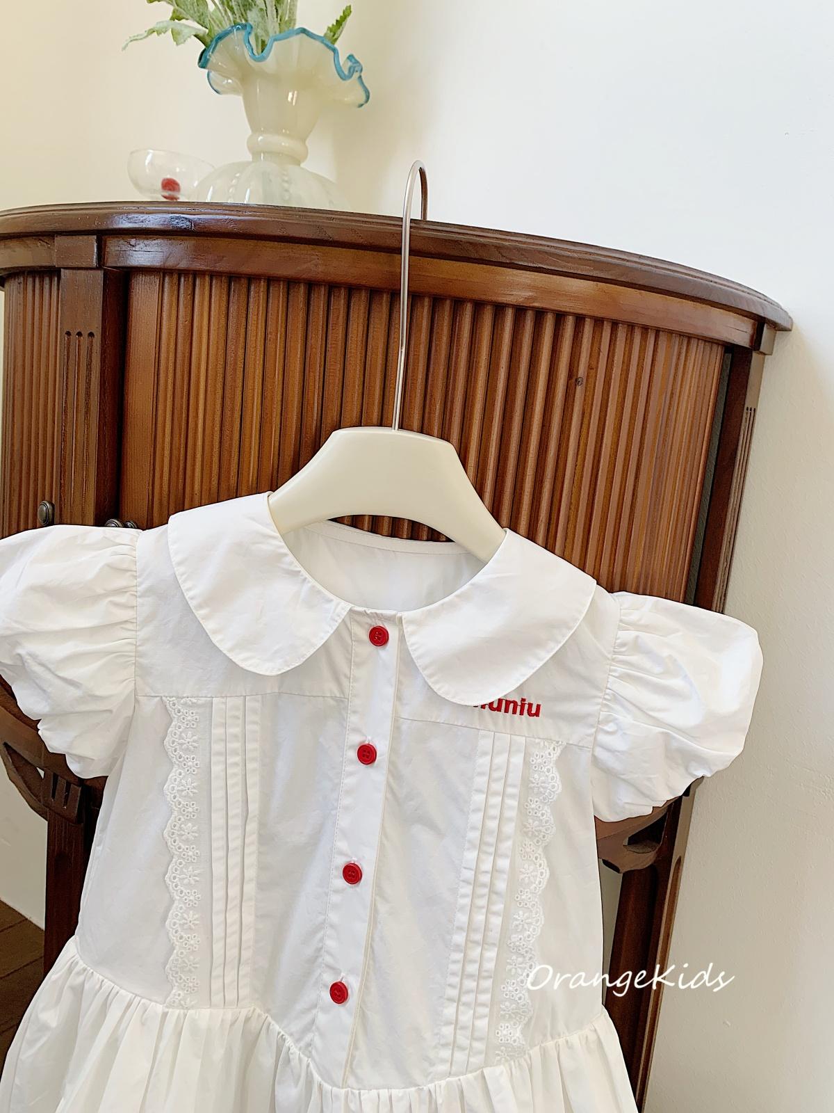 Little white dress with red buttons, [pre-sale] little white dress with red buttons