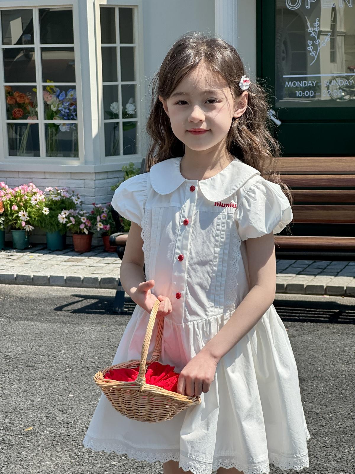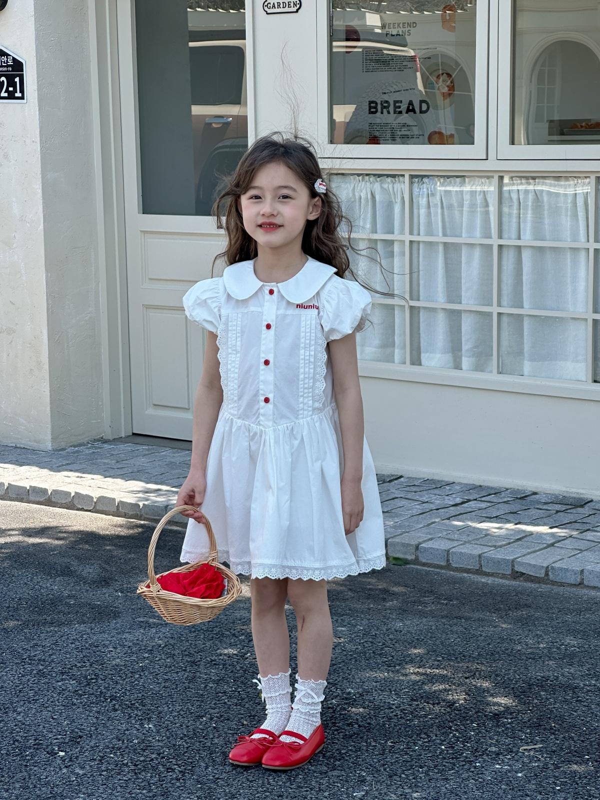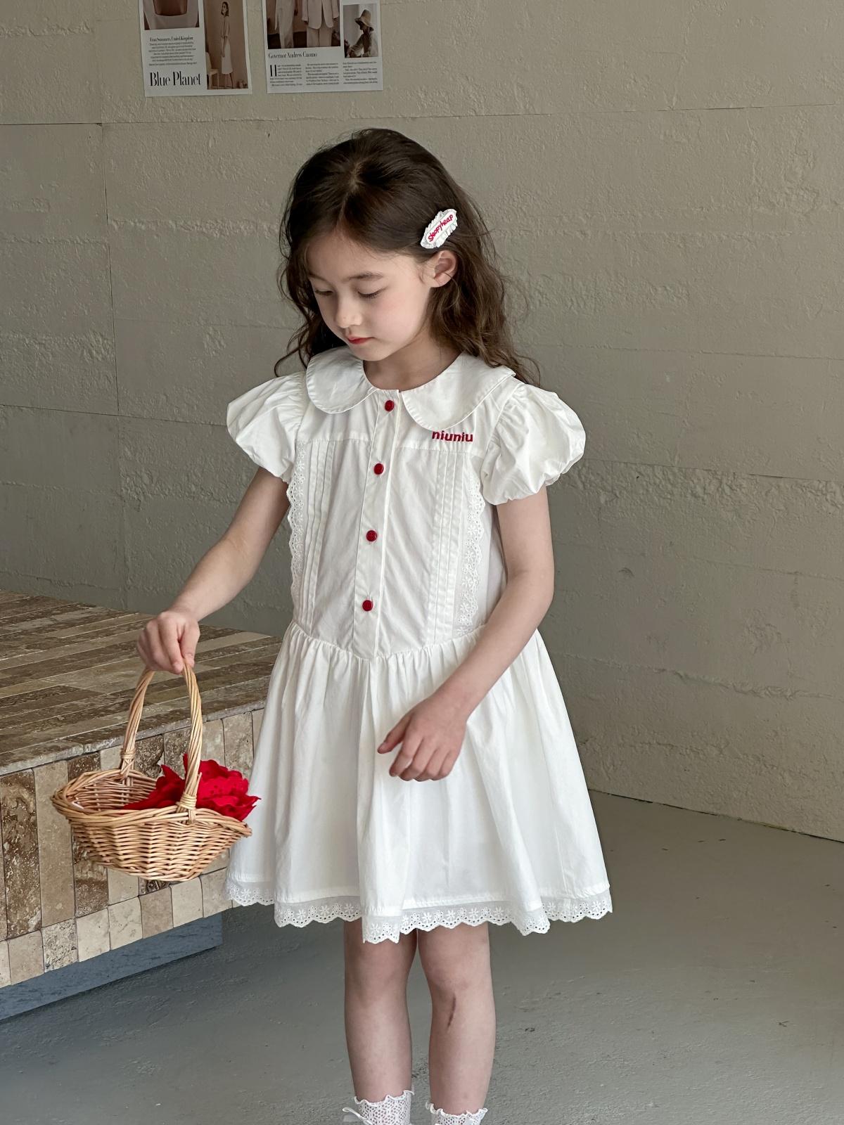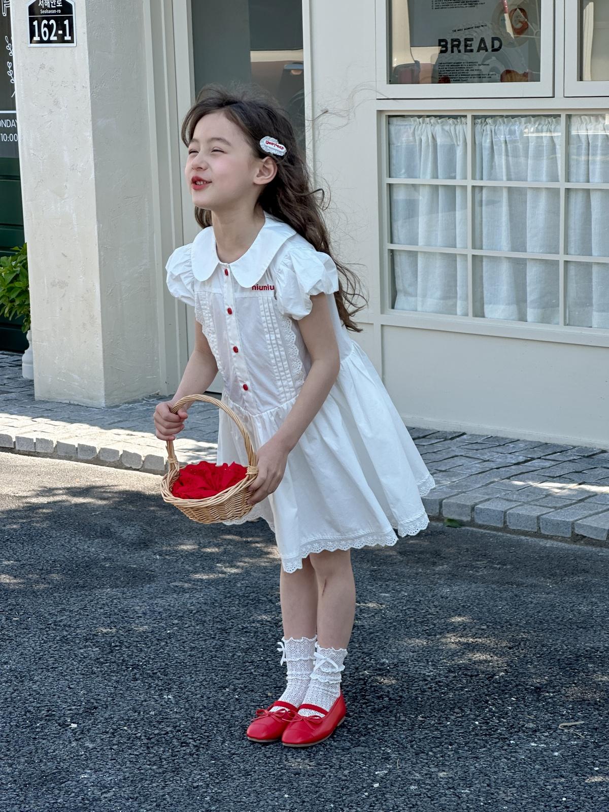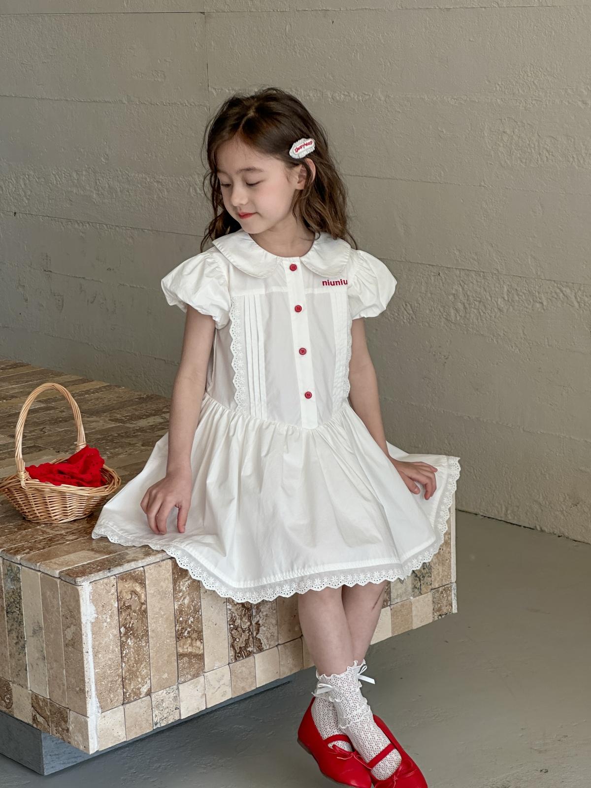 Little white dress with red buttons, [pre-sale] little white dress with red buttons