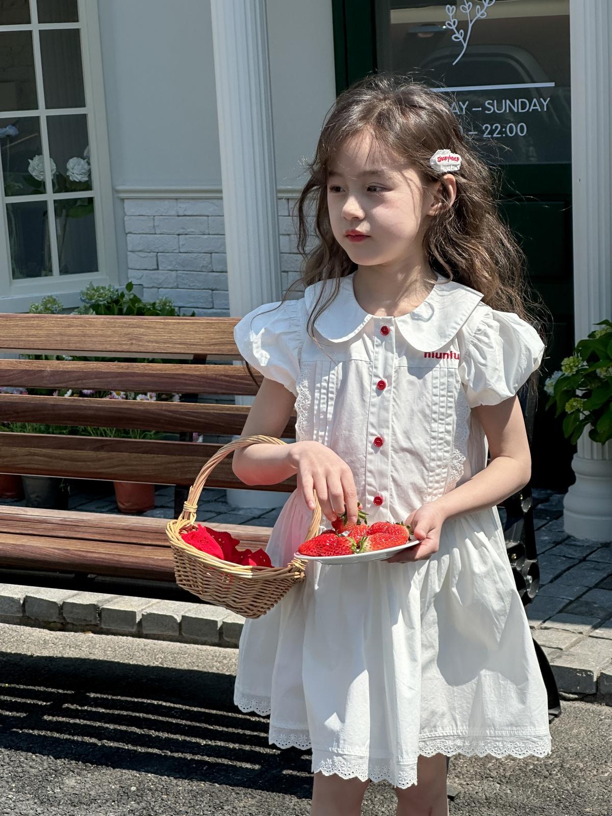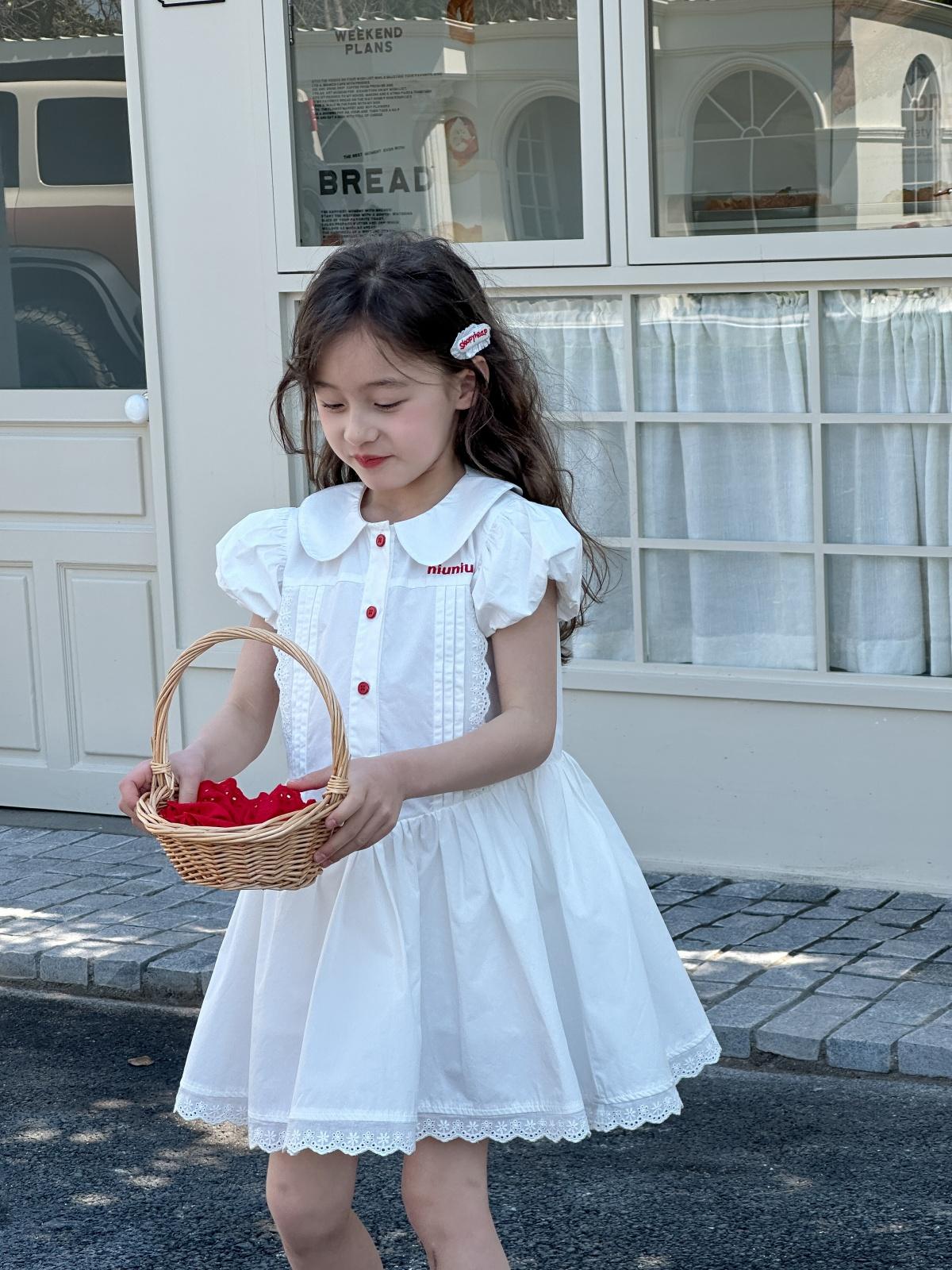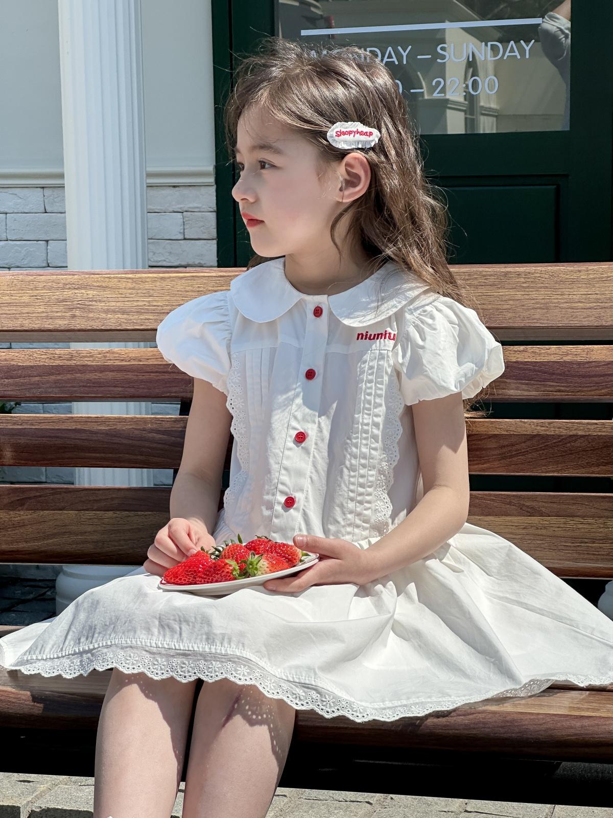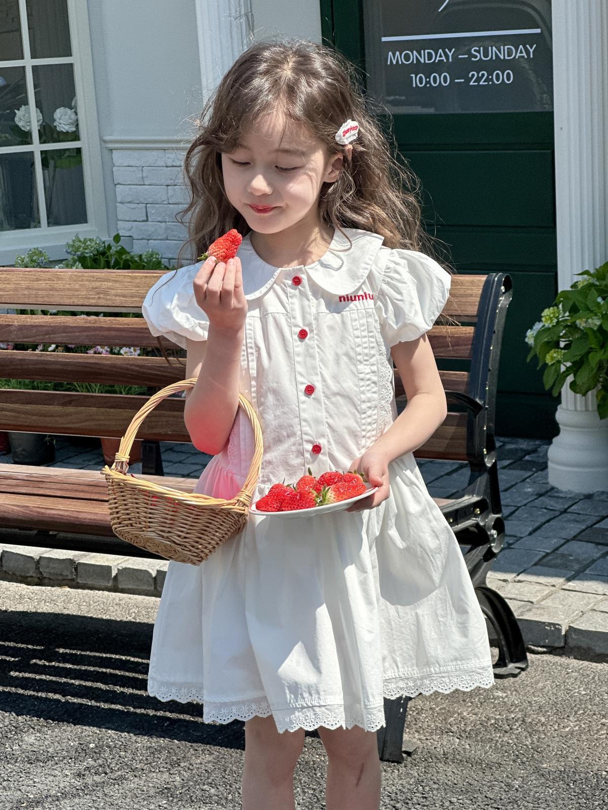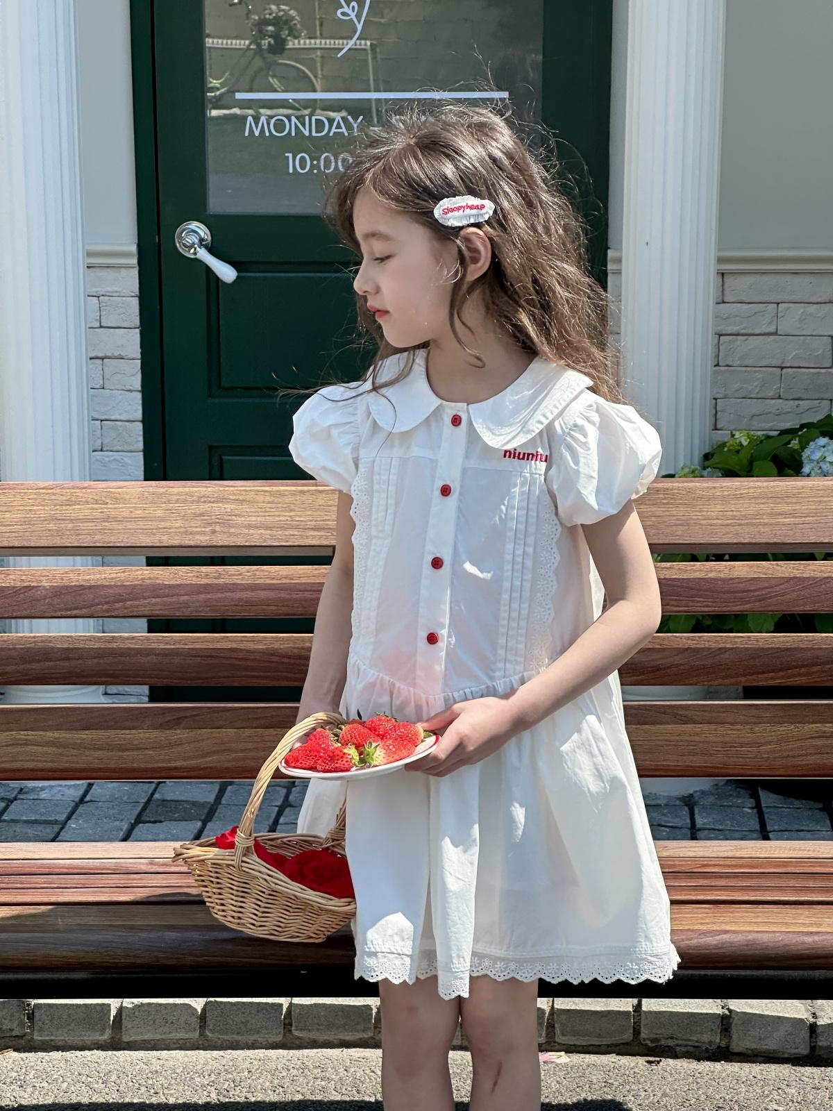 Little white dress with red buttons, [pre-sale] little white dress with red buttons