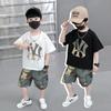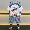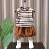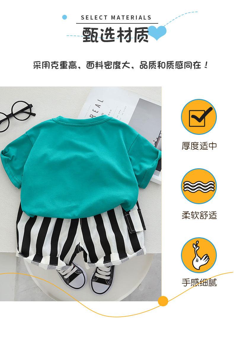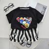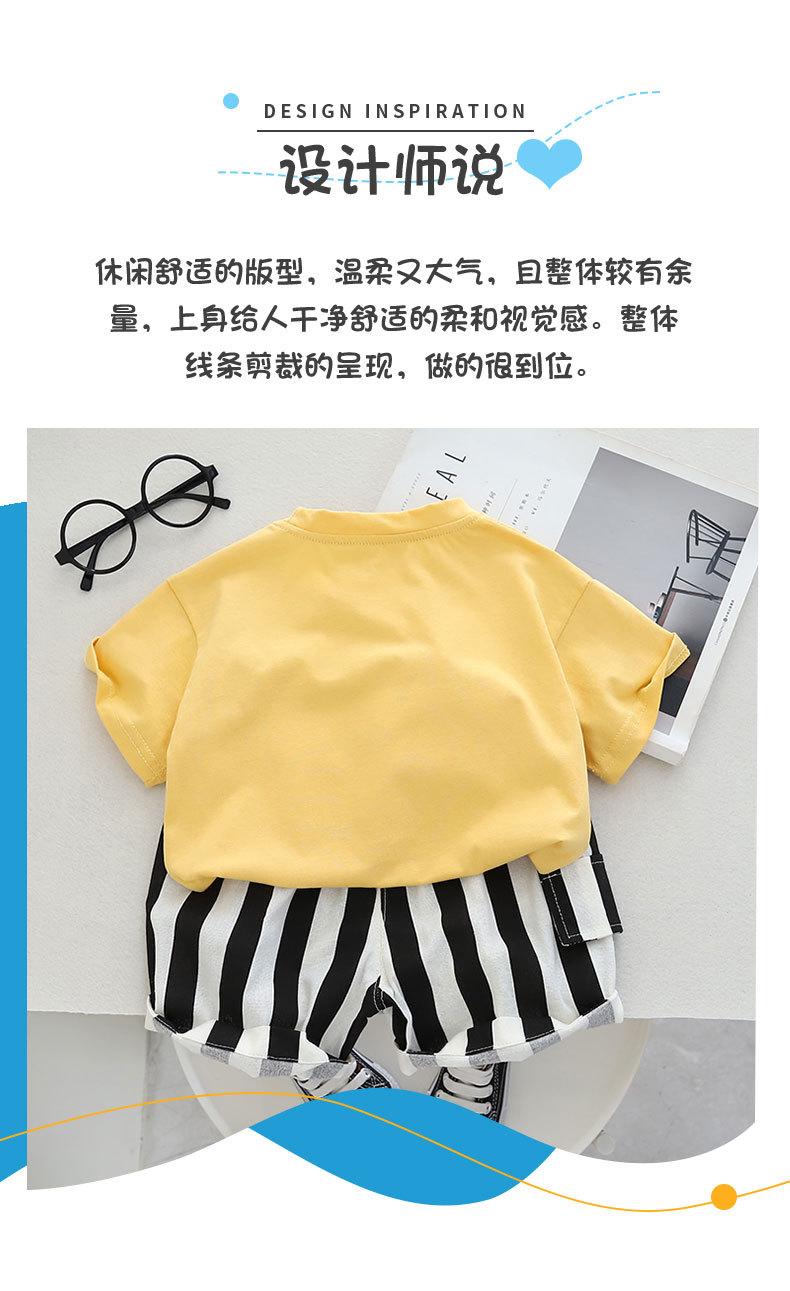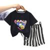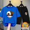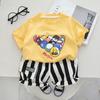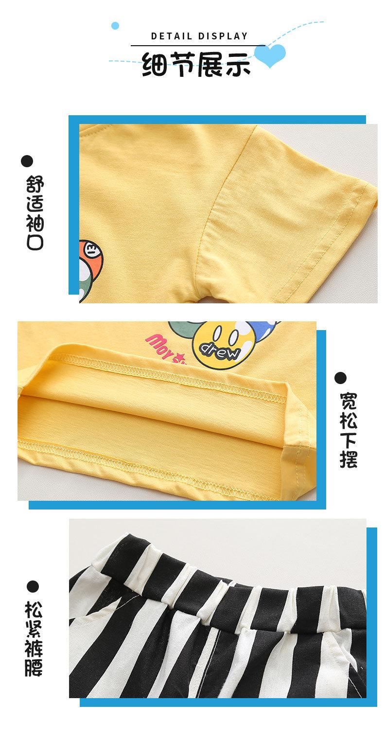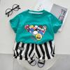 2023 Nuevo Traje de Verano para Niños Moda Infantil Cara Sonriente Dibujos Animados Billar Manga Corta Rayas Pantalones Cortos Ropa Casual