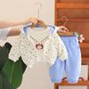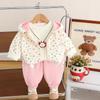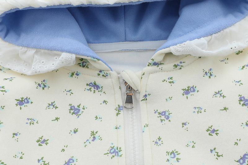 Blue x25308 floral girls' long-sleeved three-piece set, Pink x25308 floral girls' long-sleeved three-piece set