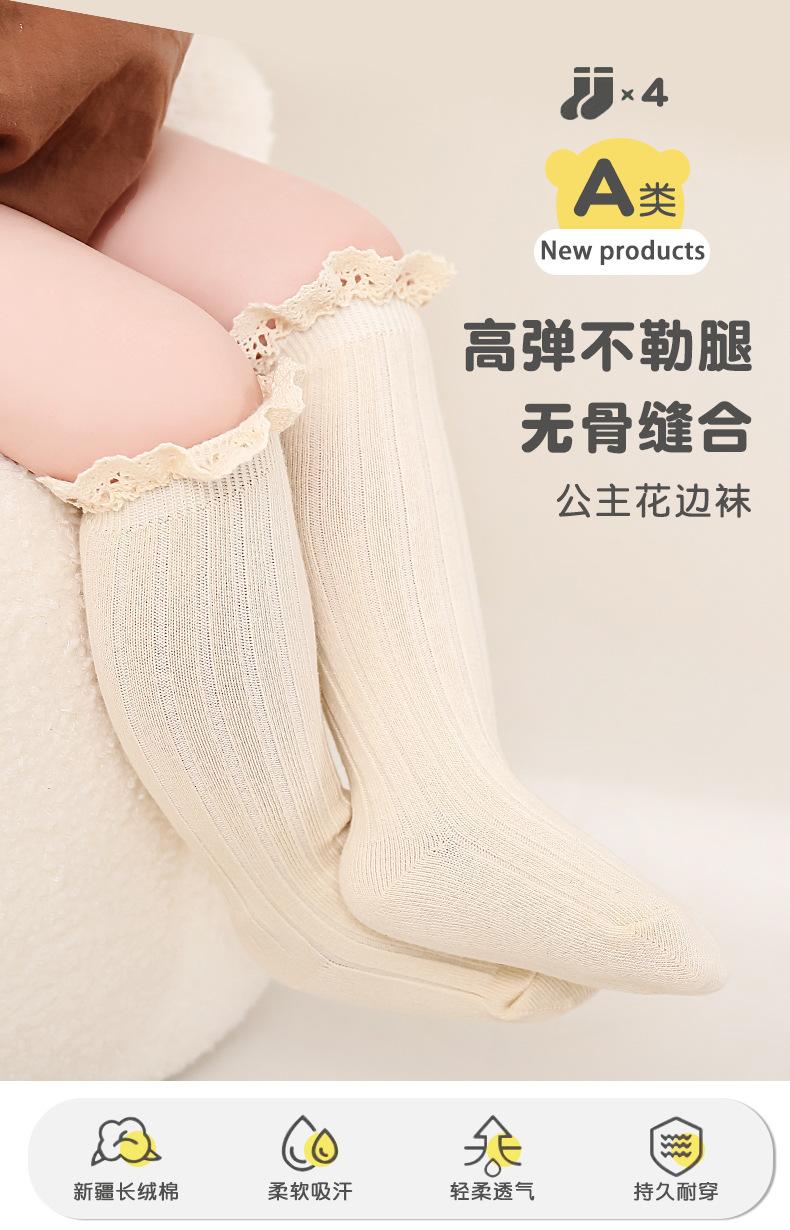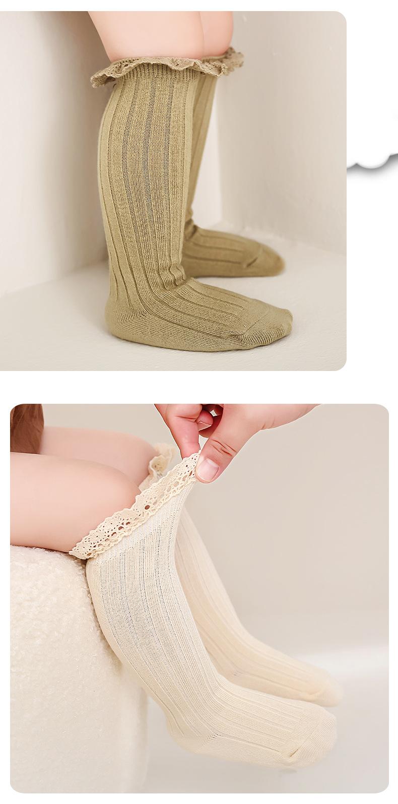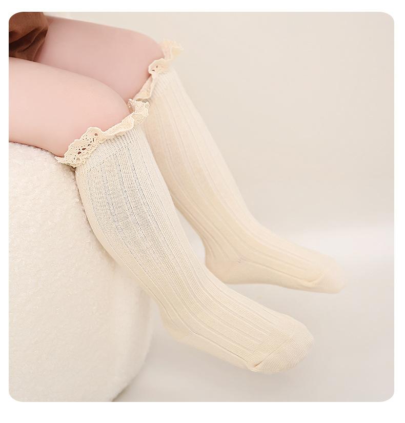 Calcetines para Niños Primavera y Otoño Calcetines de Encaje Princesa hasta la Pantorrilla sin Costuras de Pierna Suelta Calcetines de Algodón Alto para Bebé