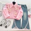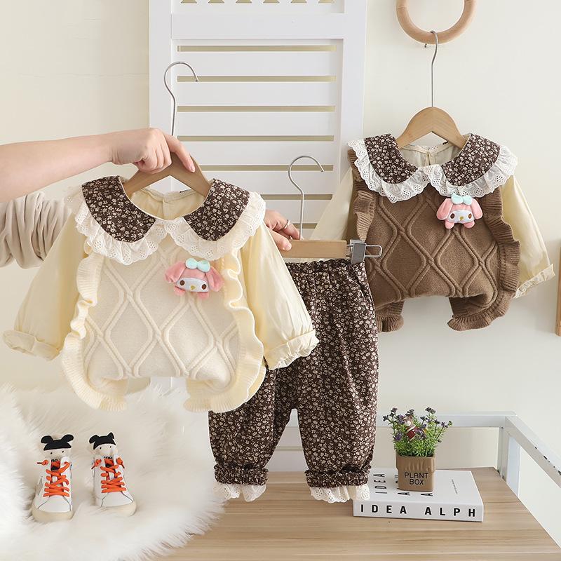 Niñas Bebé Primavera Nuevo Suéter Chaleco Camisa 2025 Dibujos Animados Dulce Manga Larga Suéter Niña Pequeña Conjunto de Tres Piezas