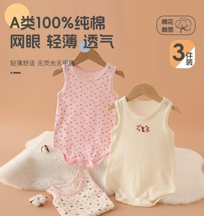 Mameluco Infantil Verano Delgado Sin Mangas Chaleco Recién Nacido Mameluco Triángulo Vestido de Verano para Bebé Niña Algodón Puro