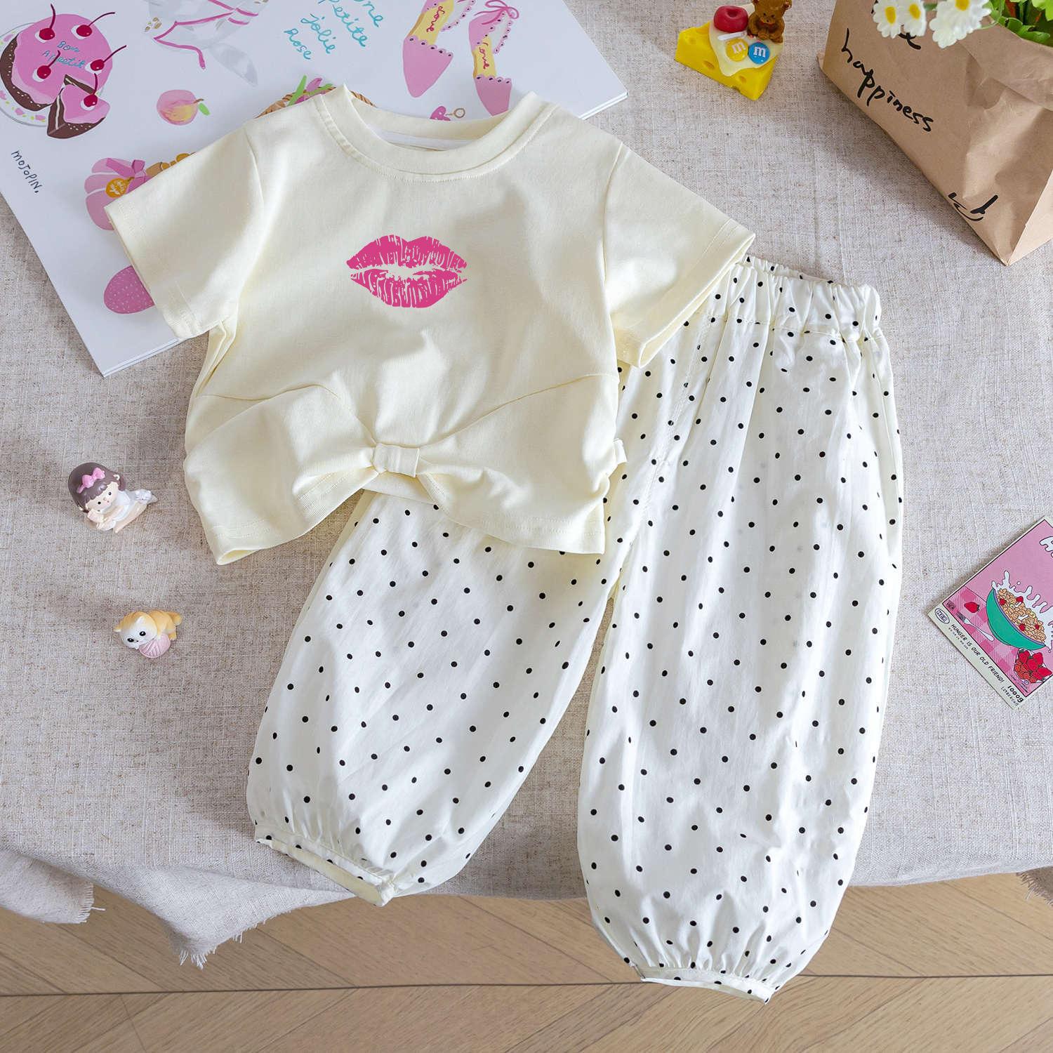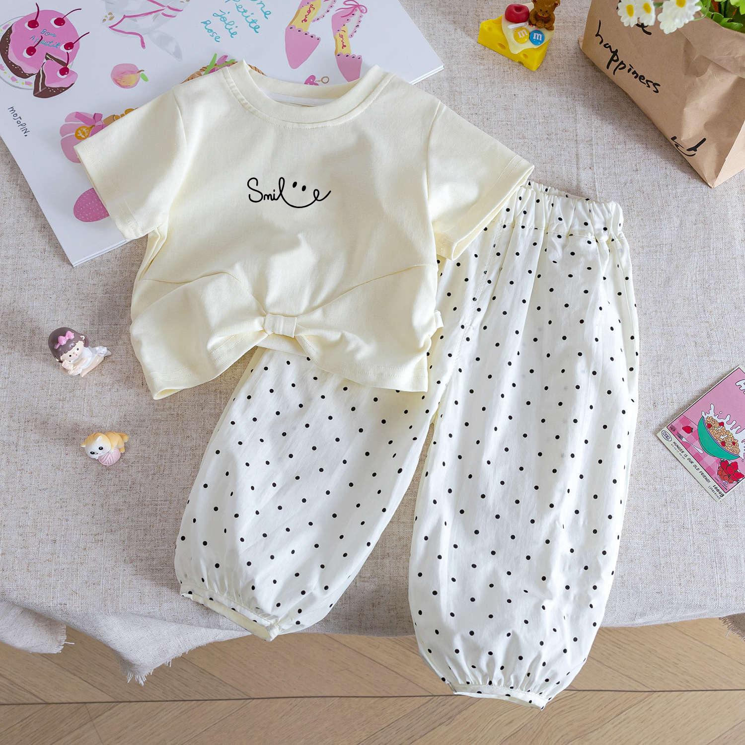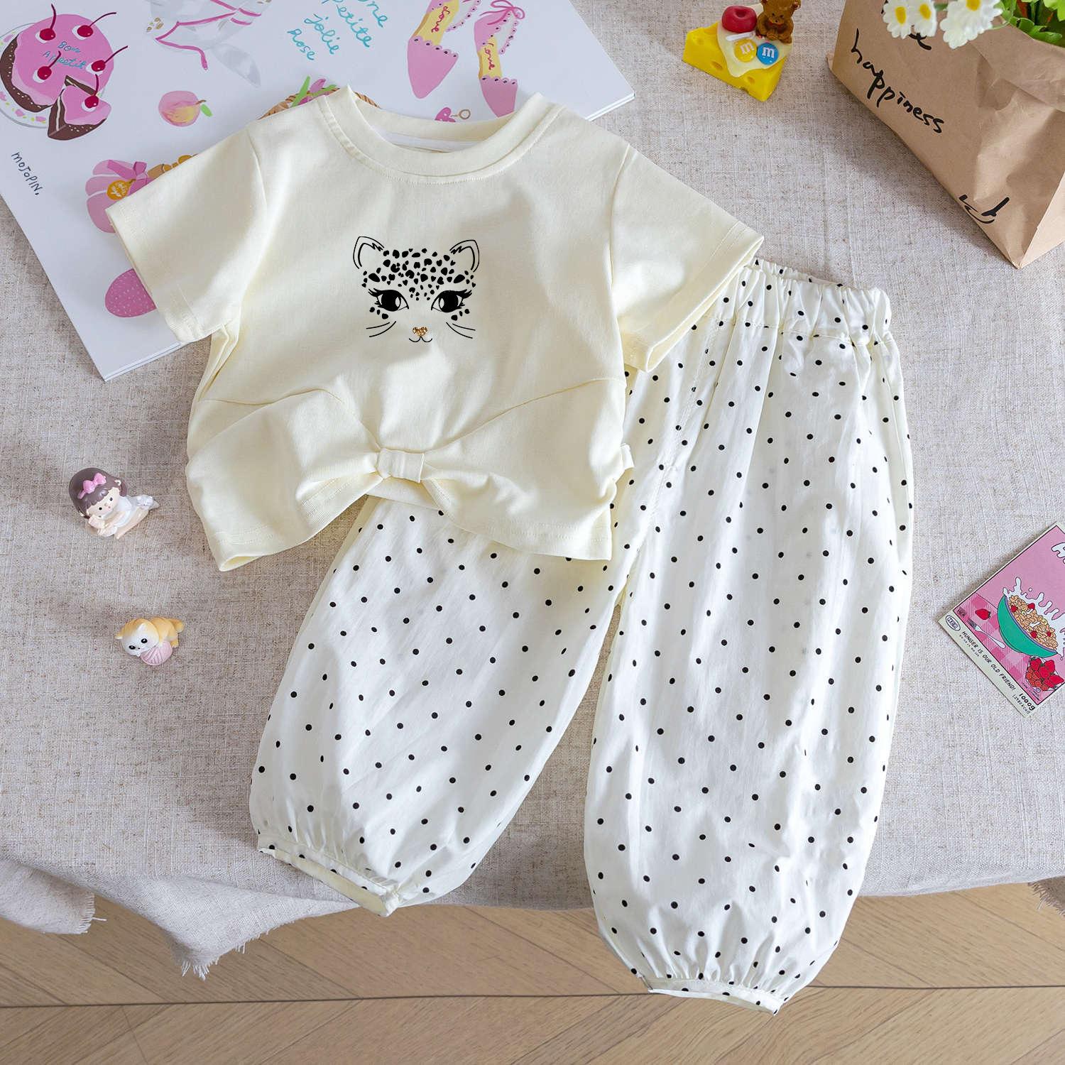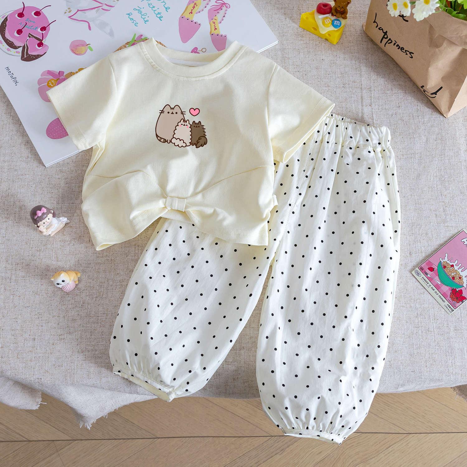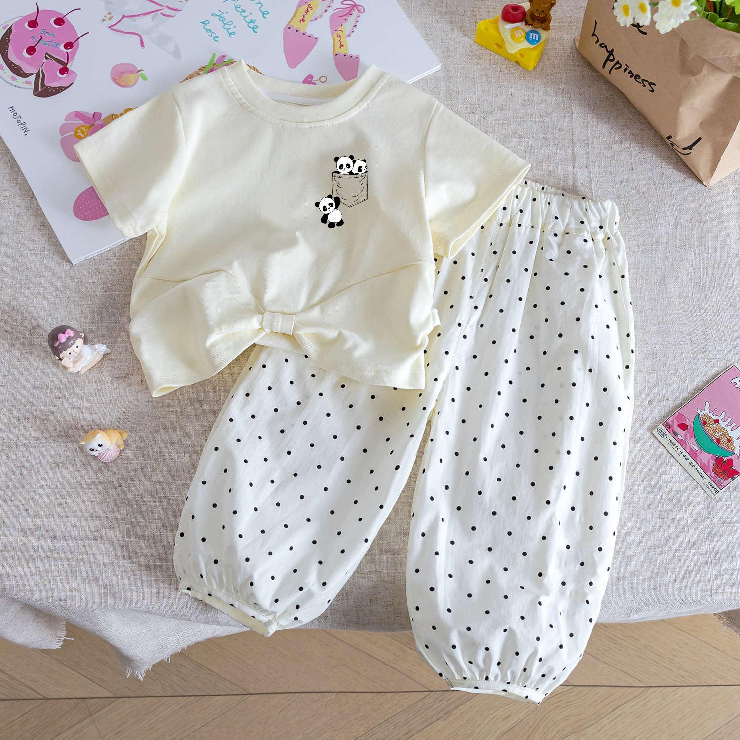 Traje para niña 2025 Verano Nuevo Tesoro de Mujer Camiseta de Manga Corta de Dibujos Animados Pantalón Delgado Antimosquitos Dos Piezas Vestido de Verano para Niños