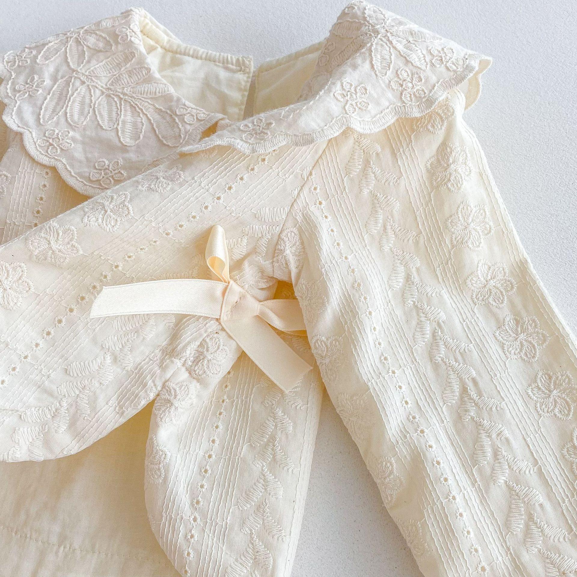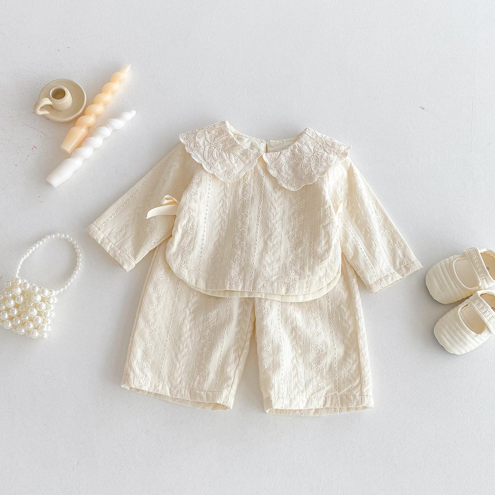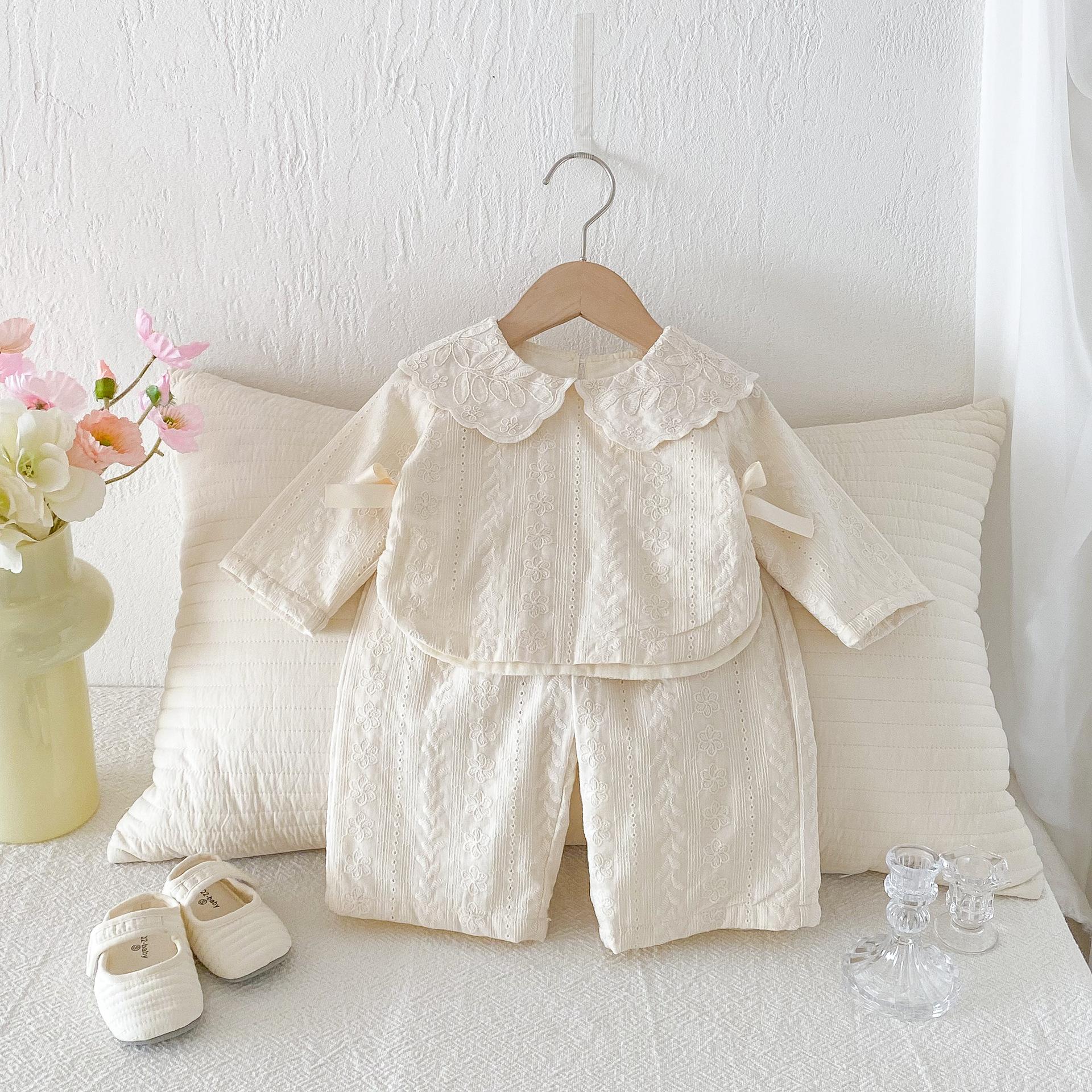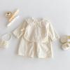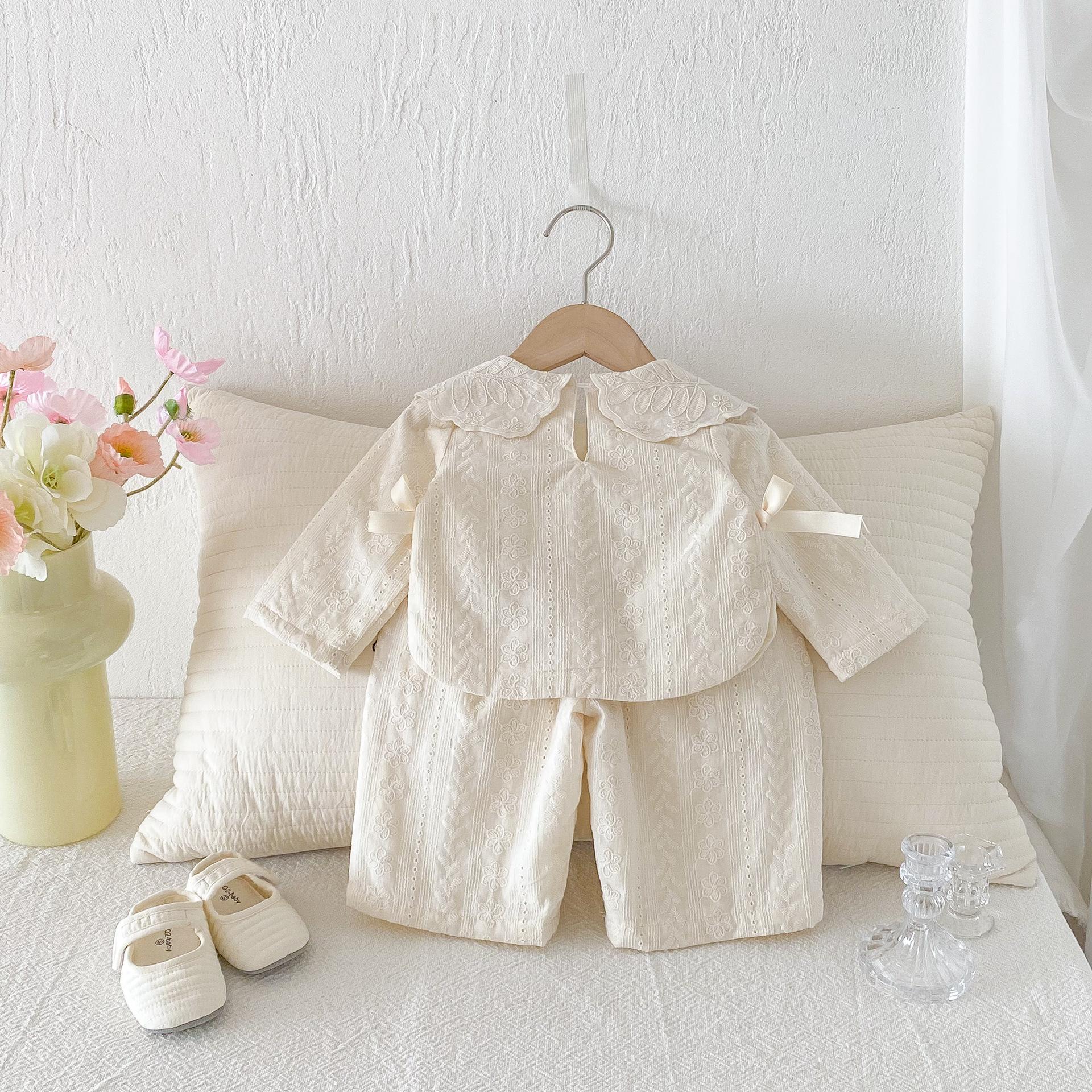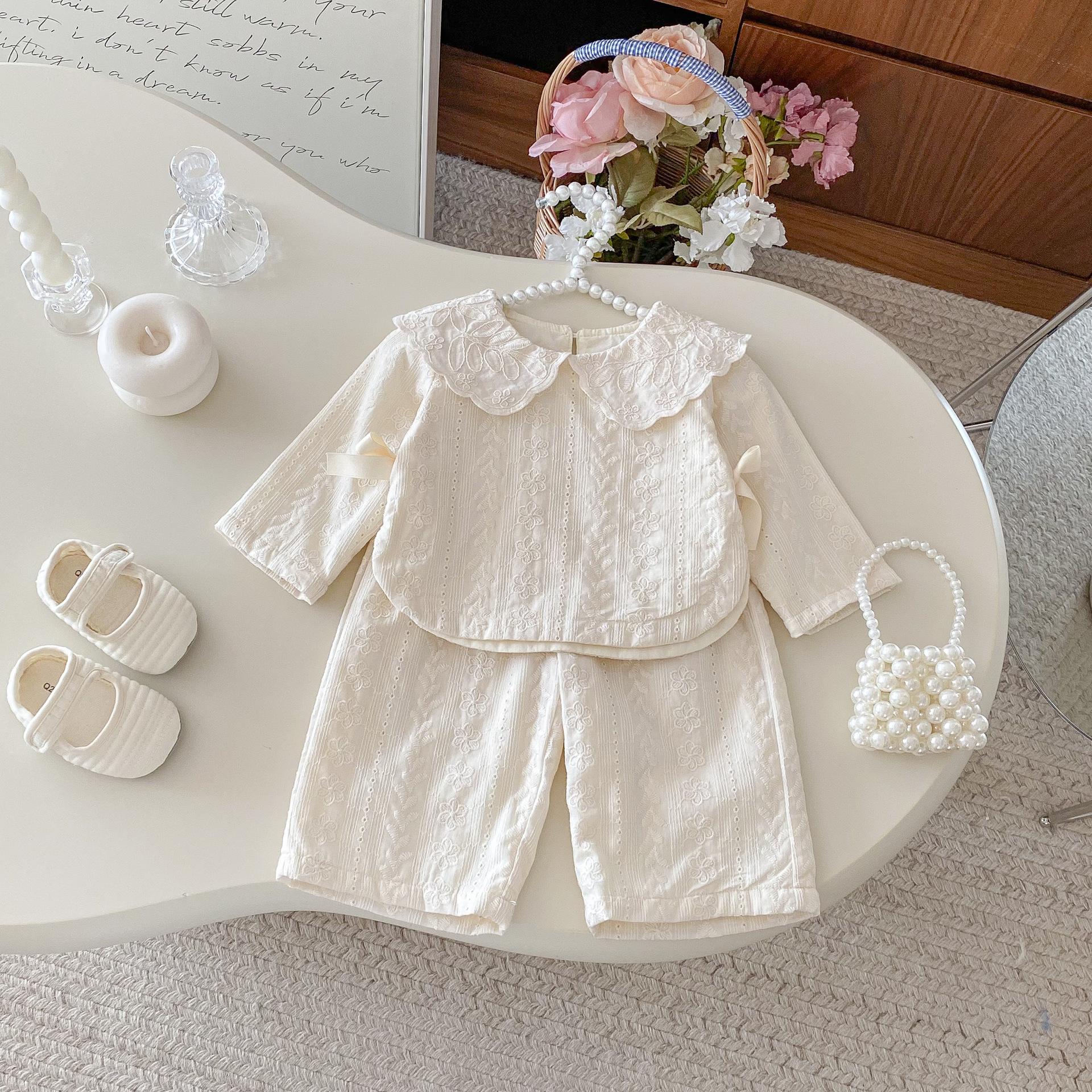 Conjunto de Top con Cuello de Encaje para Bebé Niña y Pantalones de Pierna Ancha Otoño Niñas Top con Lazo Pantalones de Tela Jacquard Conjunto de Dos Piezas