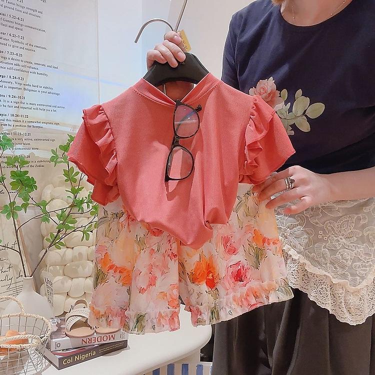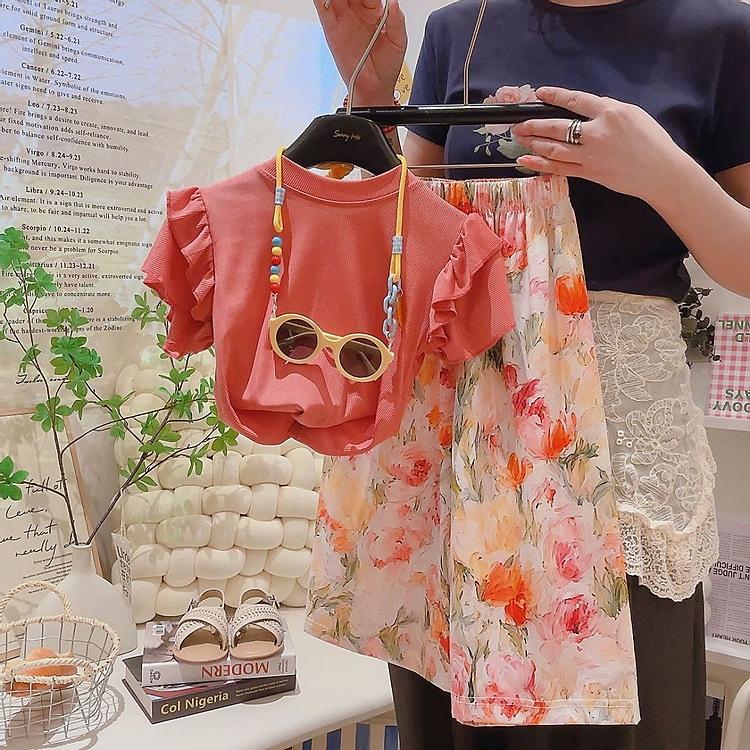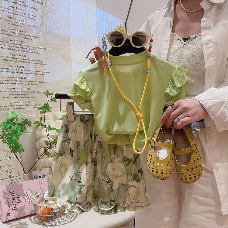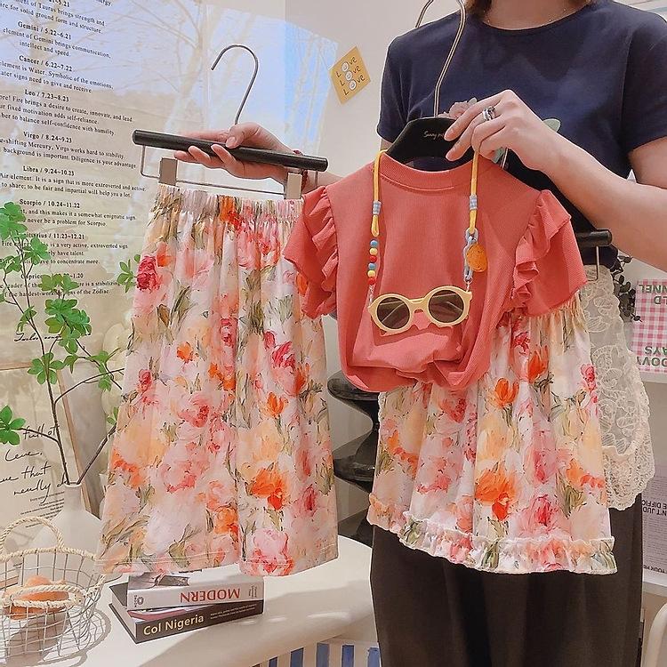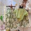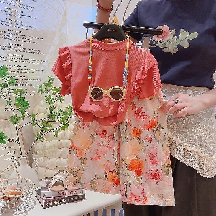 Tops de Verano de Manga Corta con Volantes Estilo Coreano para Niñas 2025 Estilo Infantil Shorts Florales Traje de Pantalones Casuales para Bebé